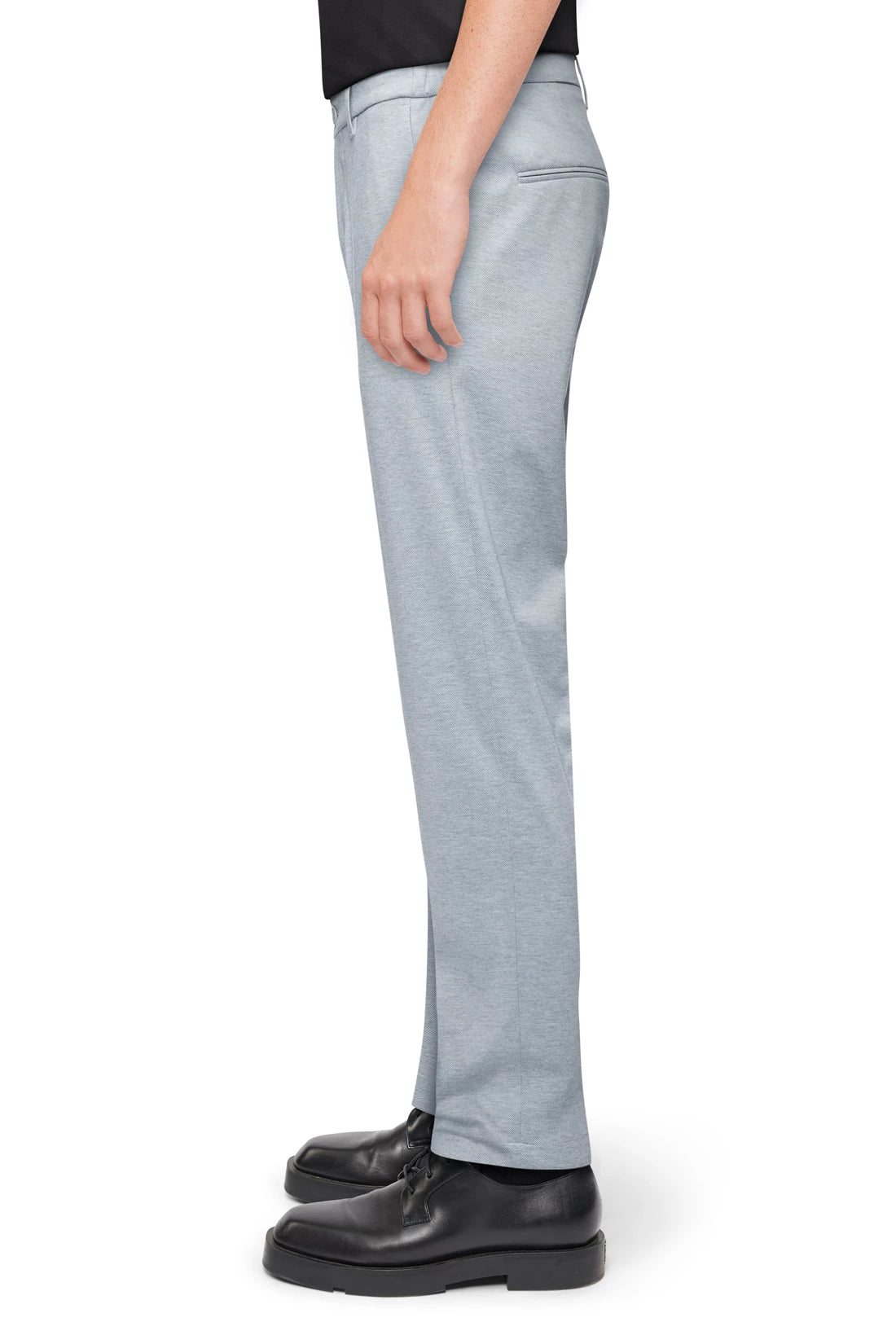 AJEND is a classic trouser with a crease and tapered leg. The elasticated insert on the side of the waistband gives it a sporty touch and makes it very comfortable to wear. It can be combined with a jacket and classic shoes for a formal look.