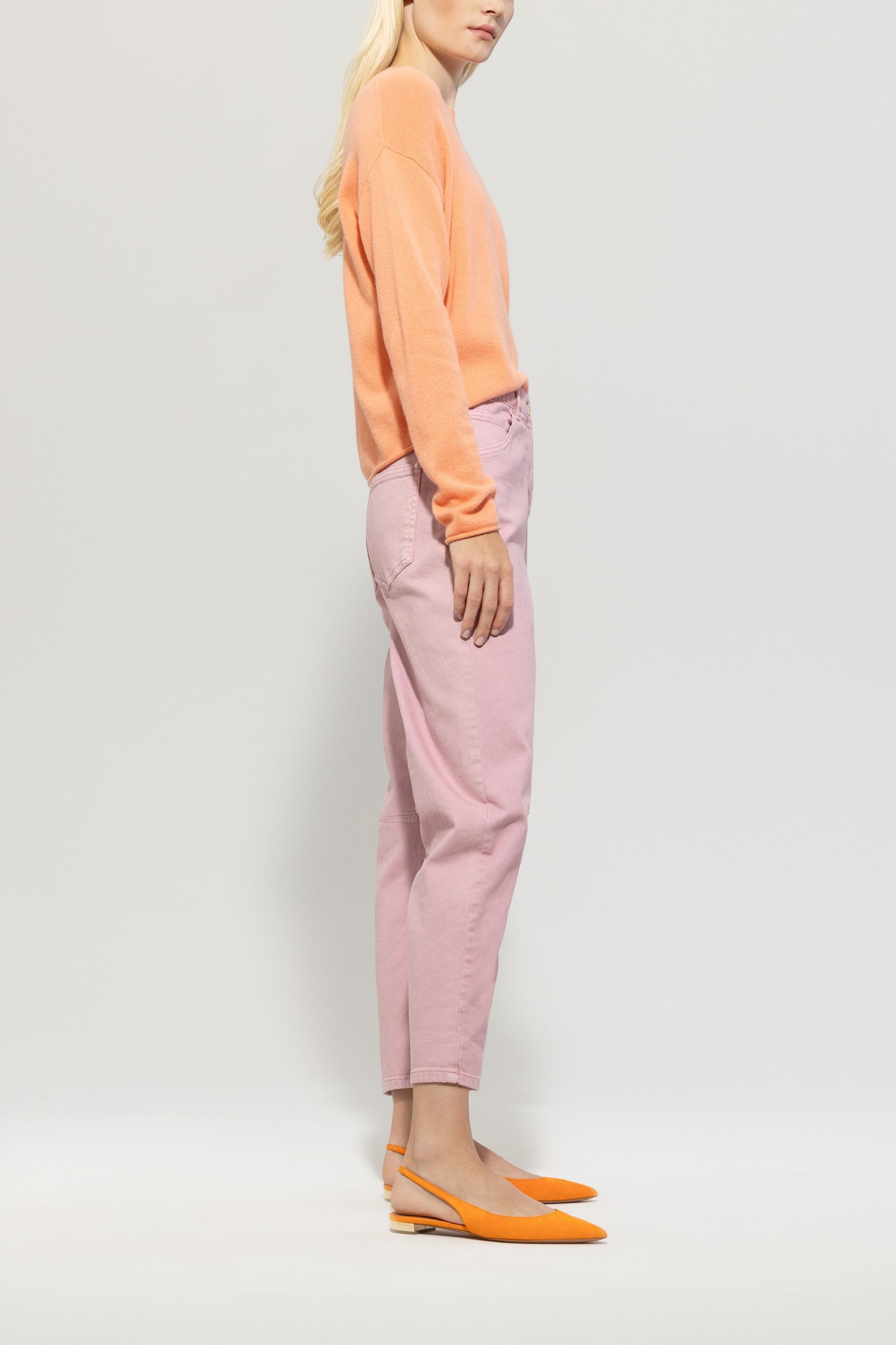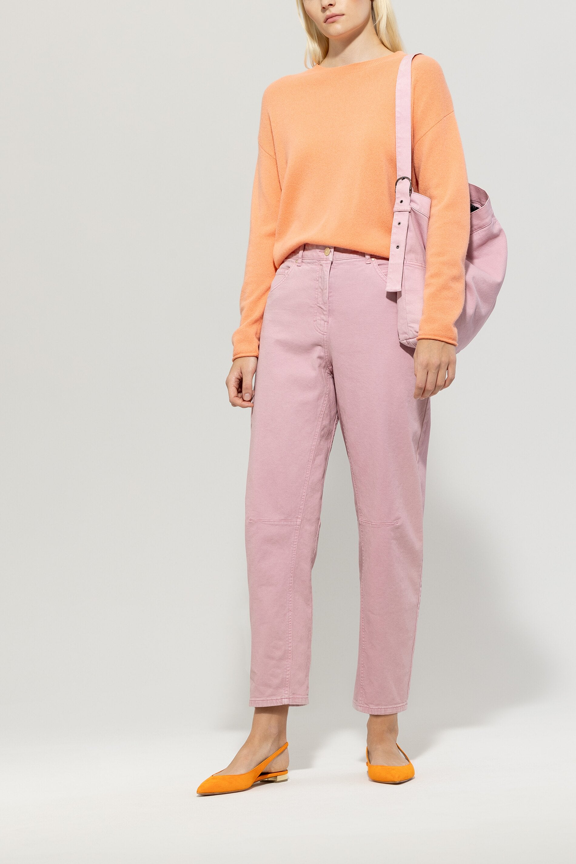 Looseleg-Pants aus Authentic-Twill-Denim im klassischen Five-Pocket-Design mit Gürtelschlaufen. Die leicht gebogene Silhouette wird durch den verkürzten Schnitt und die formgebenden Nähte am Knie hervorgehoben.