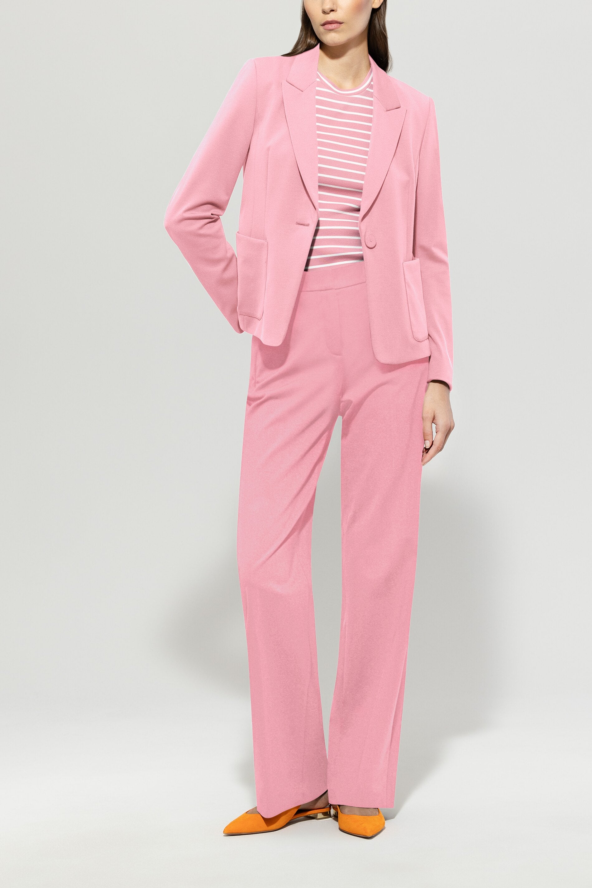 Lange Straightleg-Pants aus schwer fallendem Punto-Milano mit leichtem Stretch. Der gerade Schnitt mit Bügelfalten, zwei seitlichen Eingrifftaschen und zwei angedeuteten Gesäßtaschen verleiht der Hose einen klassischen Look.