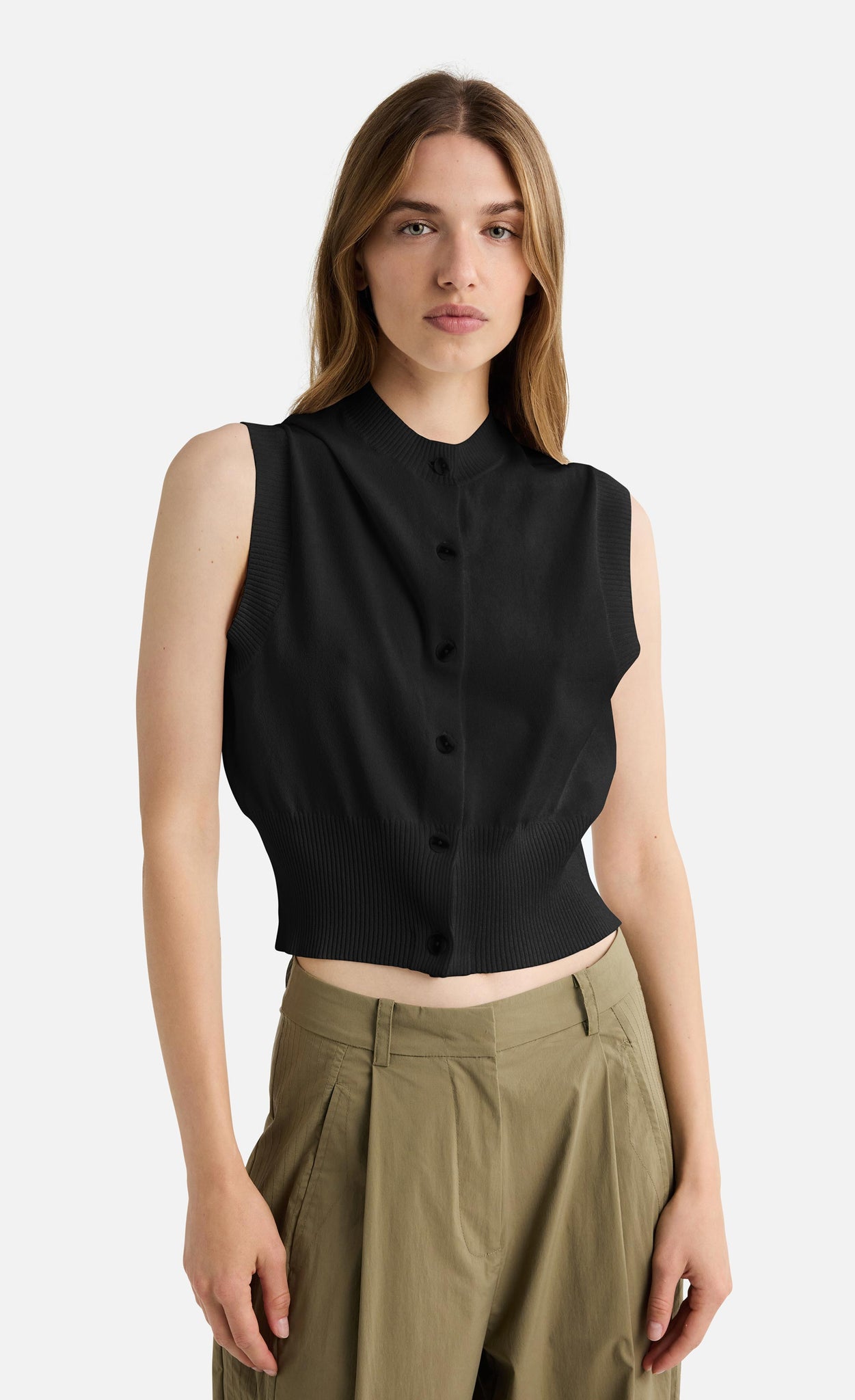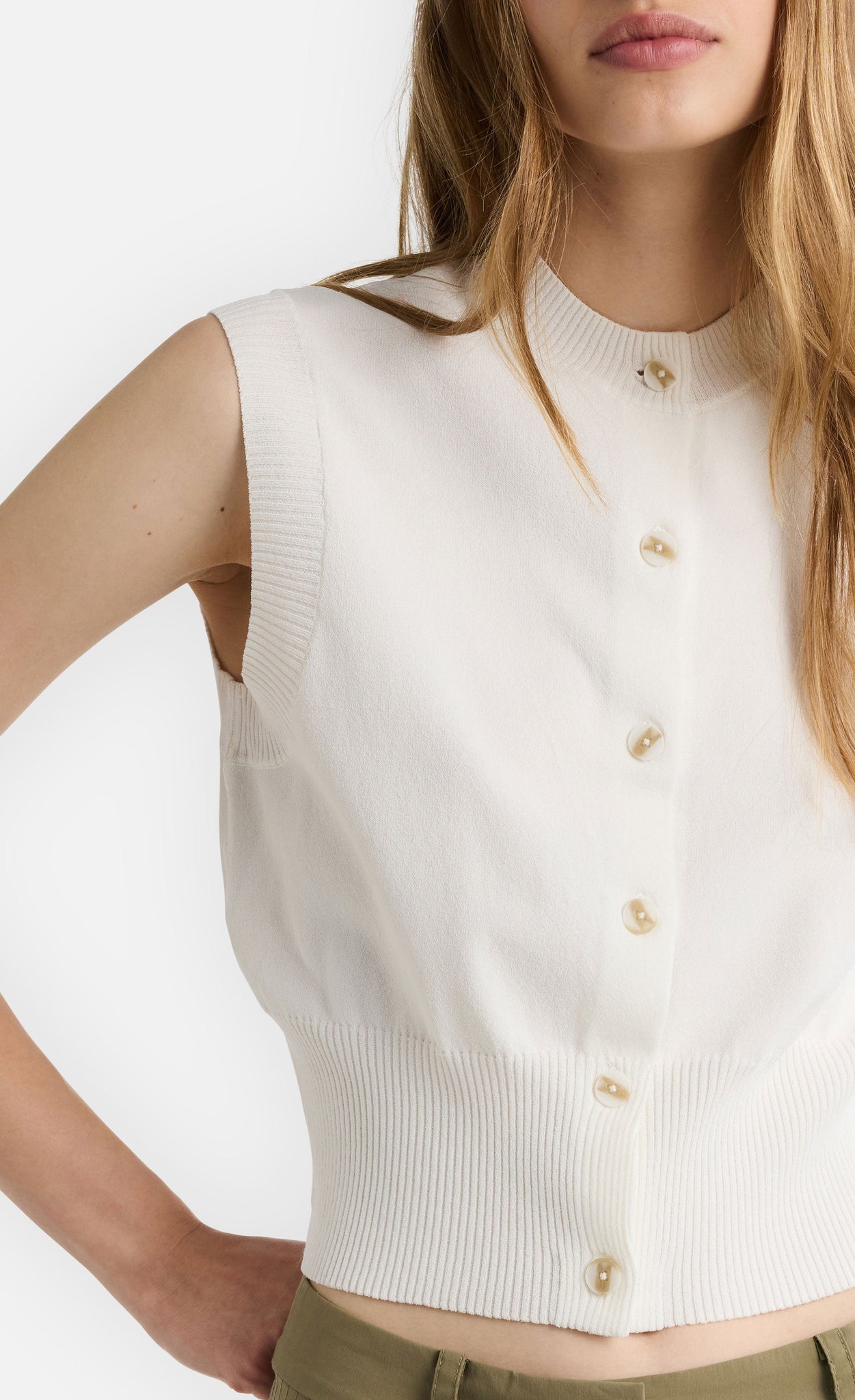 -Ribbed edge at hem and armhole