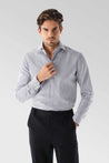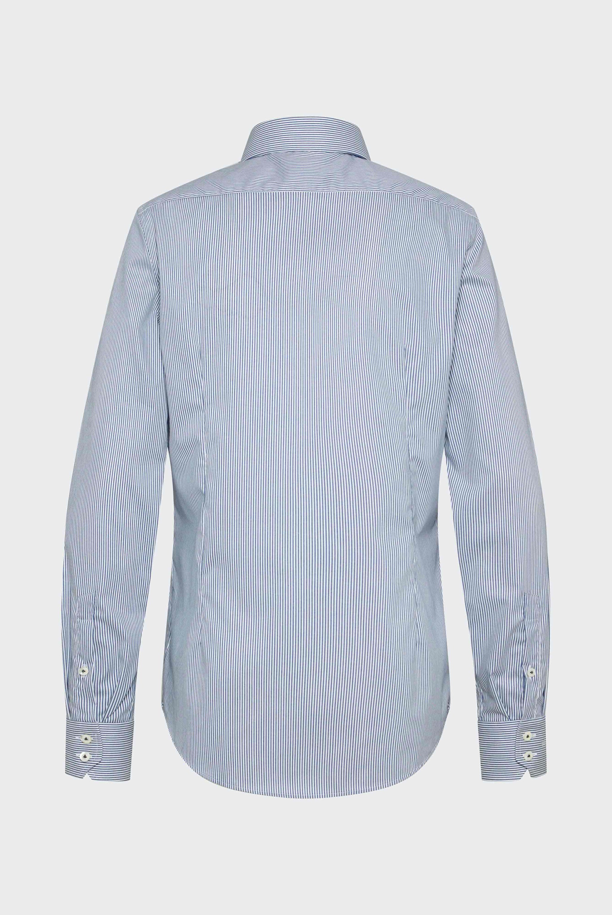 Formal design plays a central role in this slim-fit men's shirt. The wrinkle-free shirt, featuring a shark collar, sport cuffs, and a smooth placket, is cut in a close-fitting slim fit. A perfect fit is a given, as are the elegant details that underscore the shirt's character. High-quality cotton ensures exceptional comfort with minimal care. Whether for weddings or celebrations, it's an elegant companion that's easy to style. The twill weave reflects current trends and integrates seamlessly into any business outfit. The striped pattern makes it an absolute must-have.