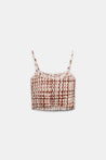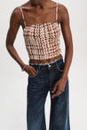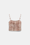The top is made from a silk blend and features an all-over check print. The smocked design meets a figure-hugging silhouette. Combined with the matching skirt, it creates a dress-like effect.