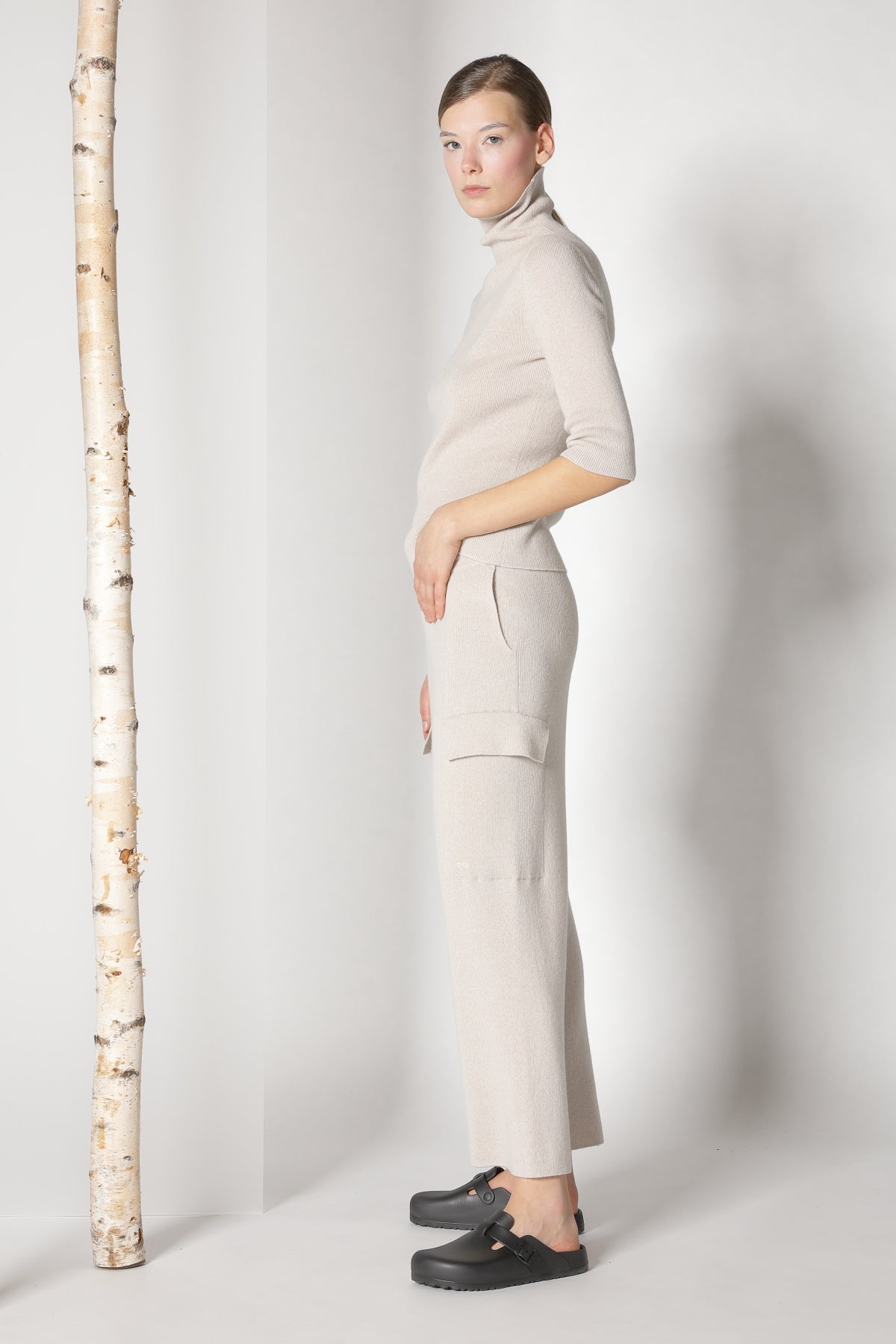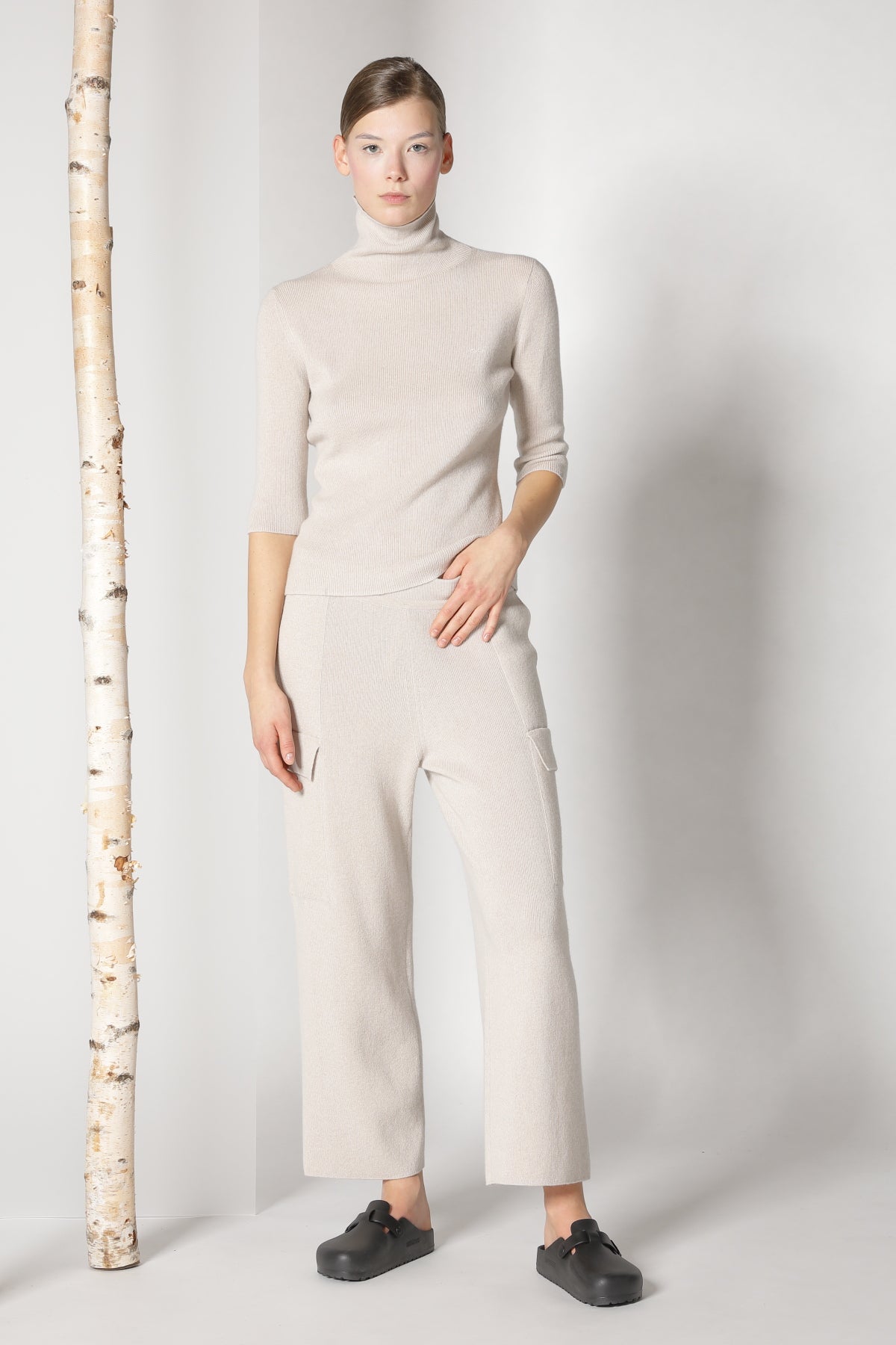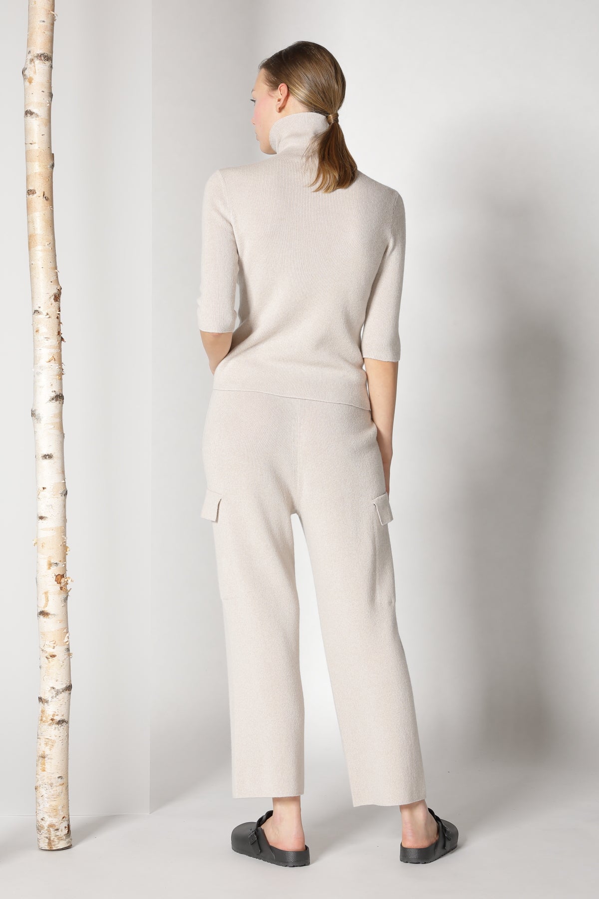 Straight cropped pants in all needle stitch with cargo pockets, side pockets and waistband with invisible drawstring.