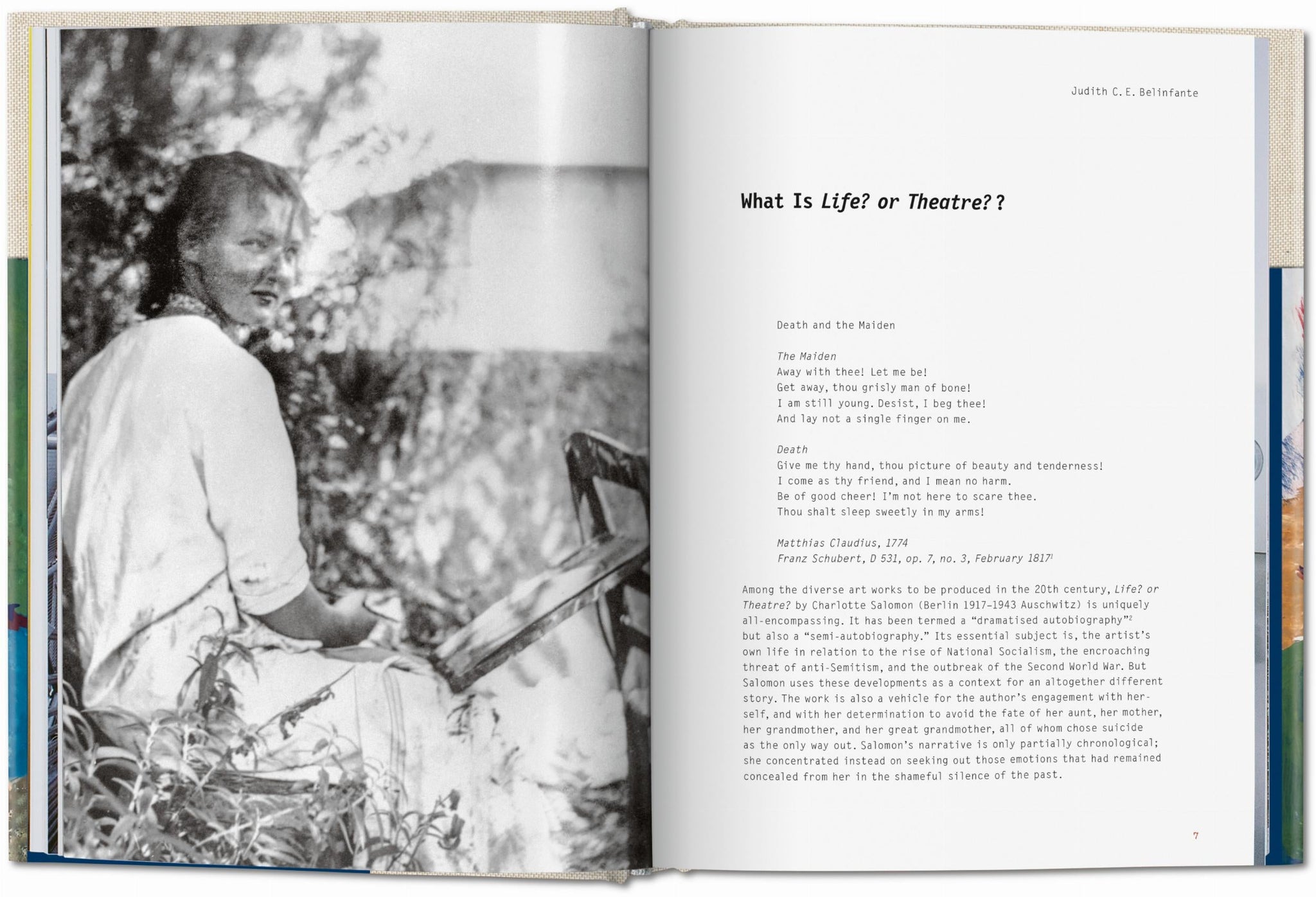 This is the cathartic masterpiece of Charlotte Salomon . Entrusted to a friend before her deportation to Auschwitz, her gouache series Life? or theater? live on as an artistic feat beyond category or comparison . Published with the most important pieces, this fictional autobiography is a shattering document of self-expression born from family tragedy.