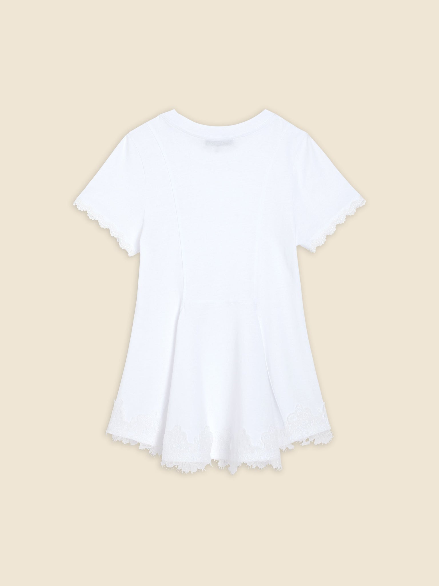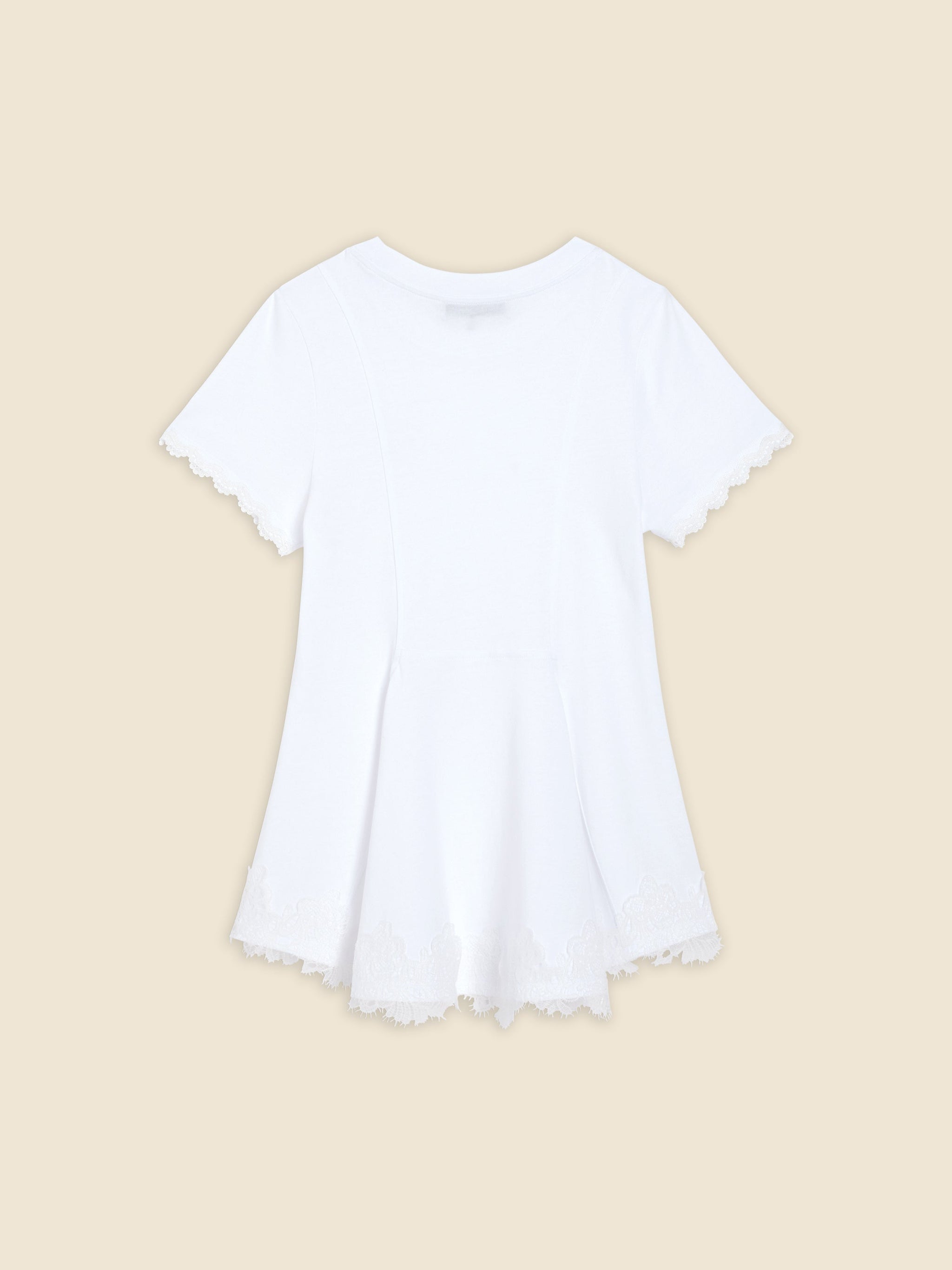 The flounce and tulle t-shirt embodies haute couture flair with the mesmerizing play and movement of distorted volume.