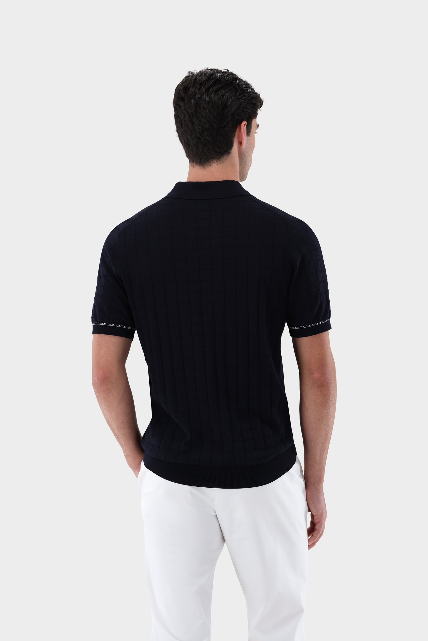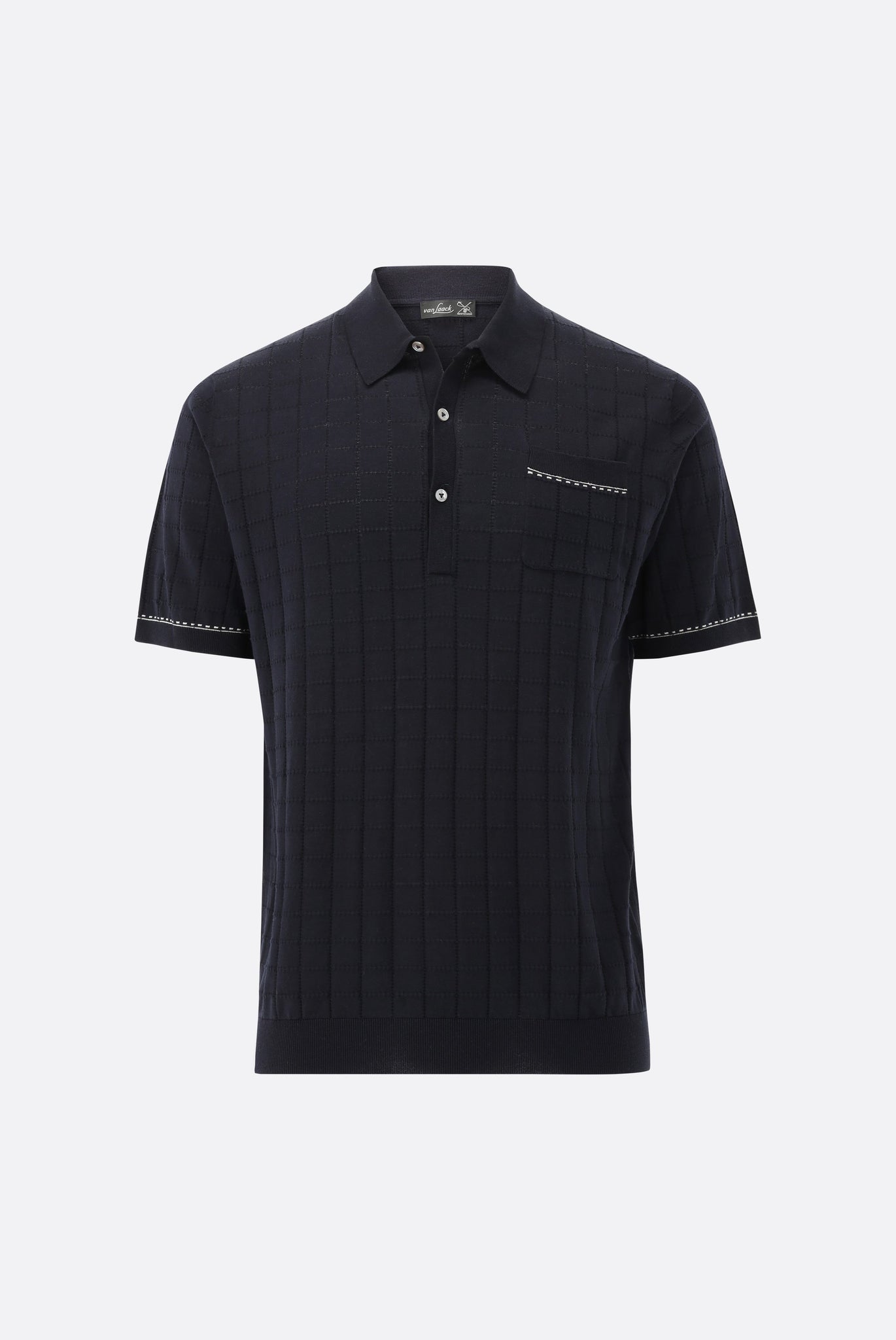 Das Strick Polohemd mit Jacquard Karomuster aus Air Cotton überzeugt durch Tragekomfort und hochwertige Verarbeitung. Der Einsatz von gezwirnten, fein gestrickten Baumwollgarnen sorgt für eine leichte Struktur, die eine Karo-Optik hat. Die Jacquard Oberfläche sorgt dabei für einen modernen Look. Die Brusttasche mit kleinen Farbdetails und die Tippings am Kragen runden das Poloshirt ab.