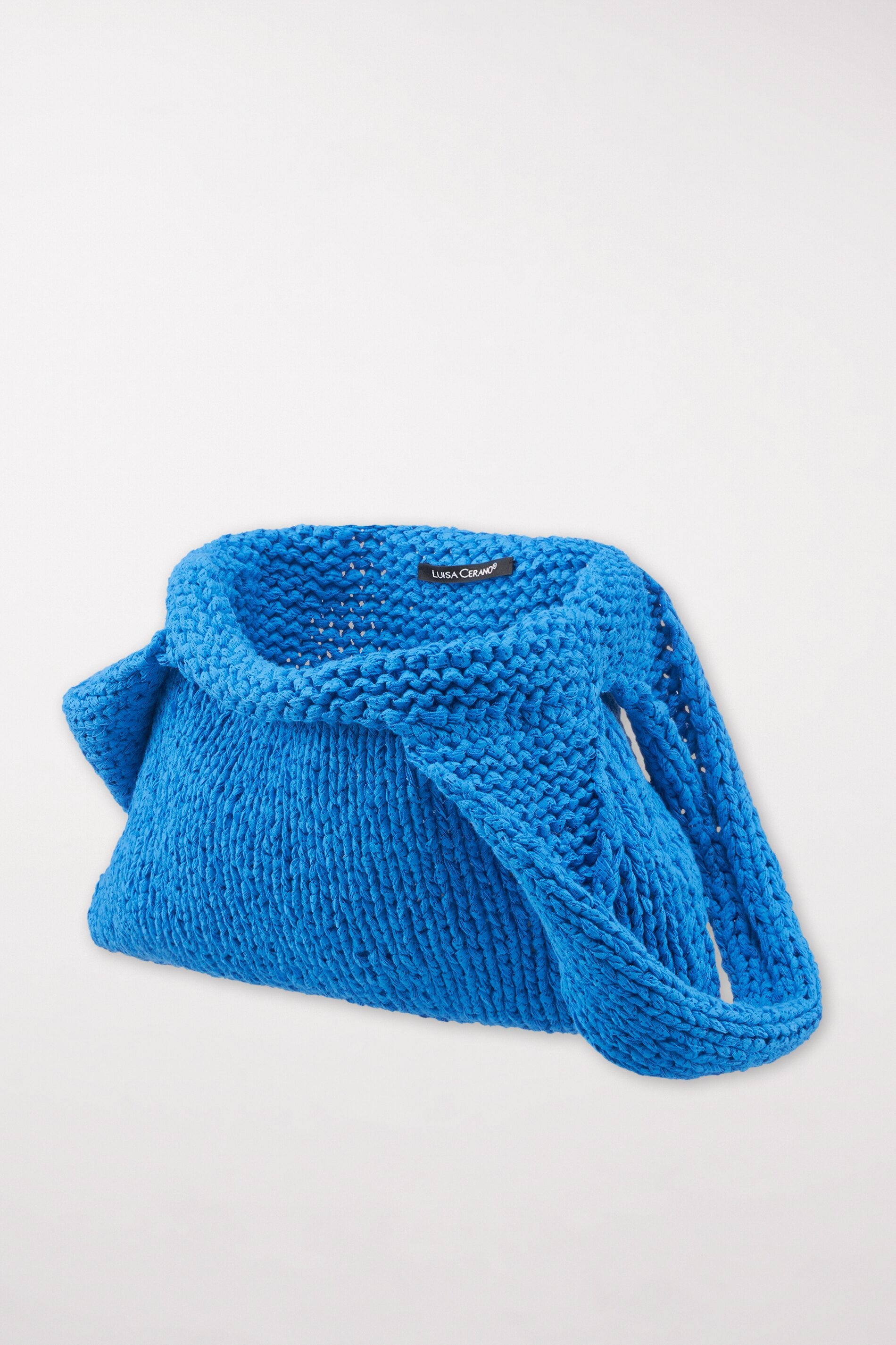Open, chunky knit bag made from summery tape yarn with an exclusive lace texture. The minimalist design of this stylish bag is completed by two wide carrying handles.
