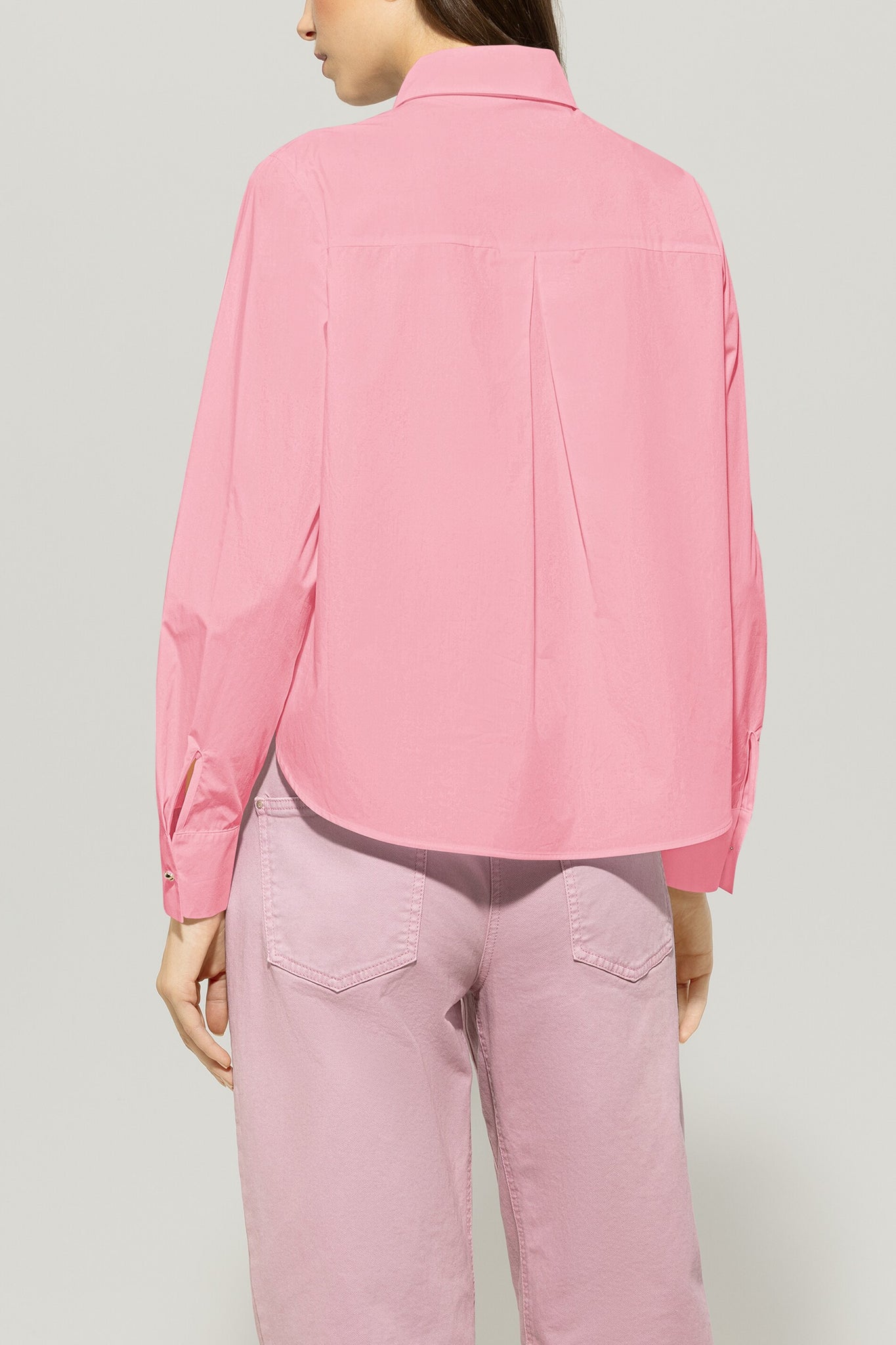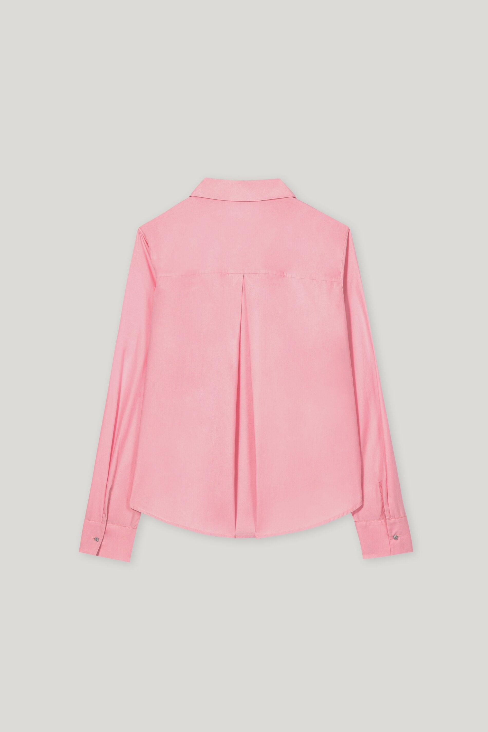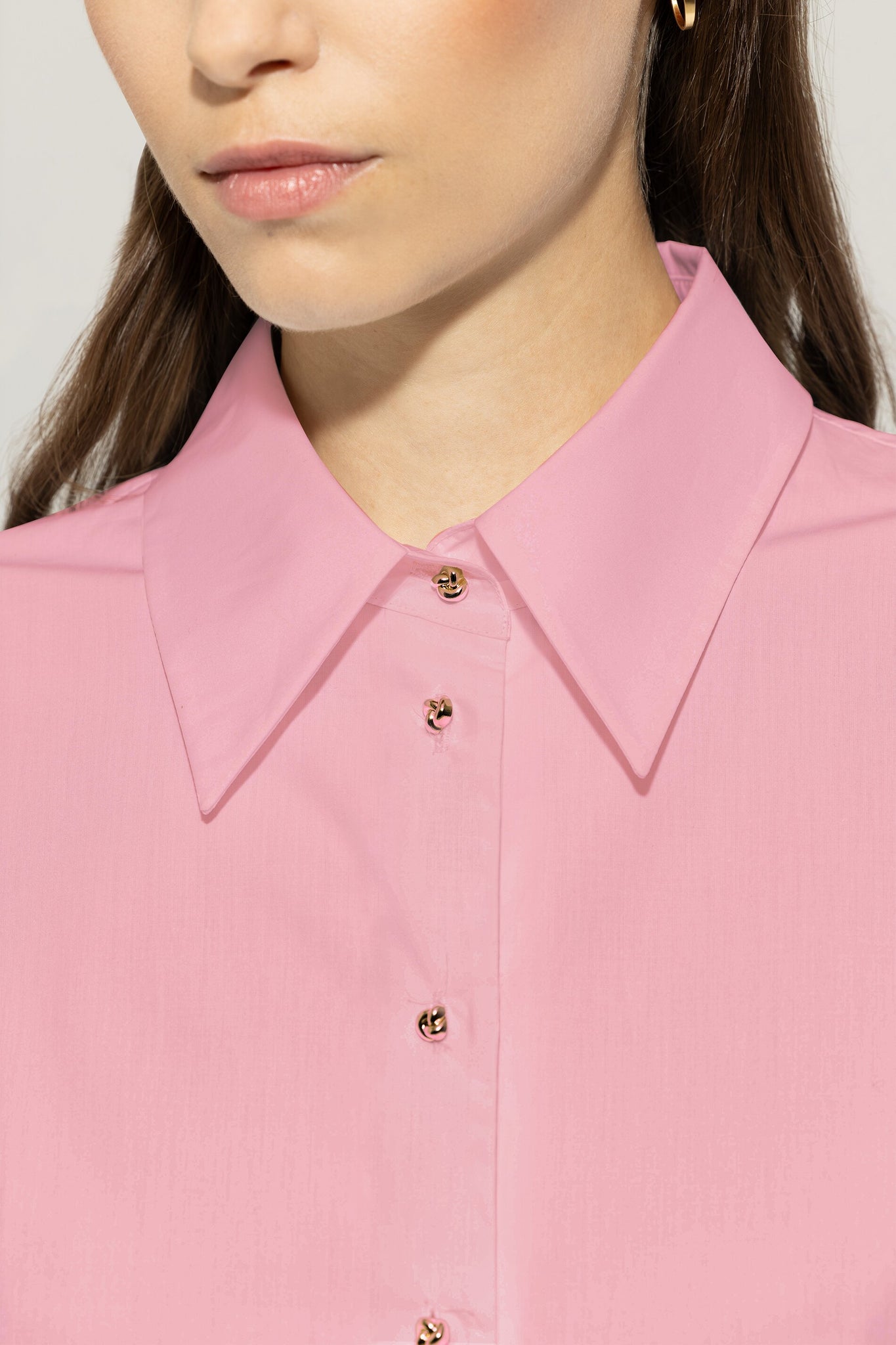 Sportliche-elegante Tunikabluse aus reiner Baumwolle mit abgerundetem, seitlich geschlitztem Saum. Highlight sind die goldfarbenen Knöpfe in Knotenform, die die halbe Knopfleiste und die Ärmelmanschetten zieren.