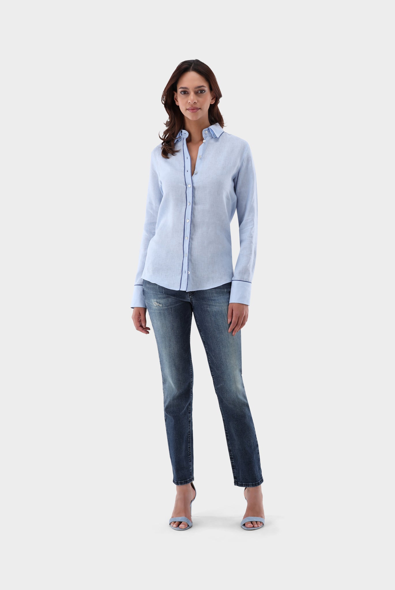 Hemdbluse | aus Leinen mit Kontrastpaspel