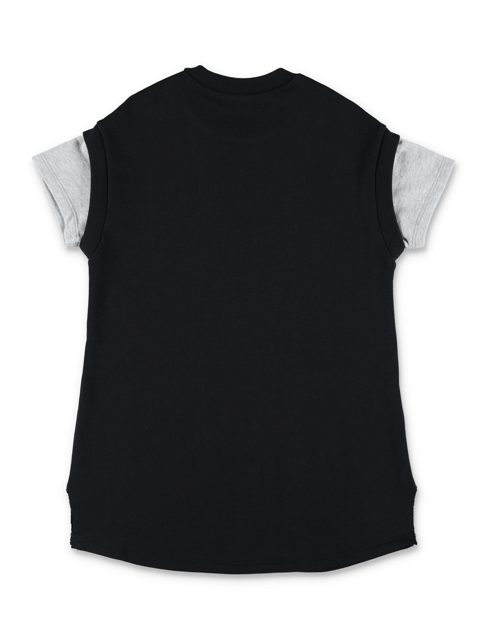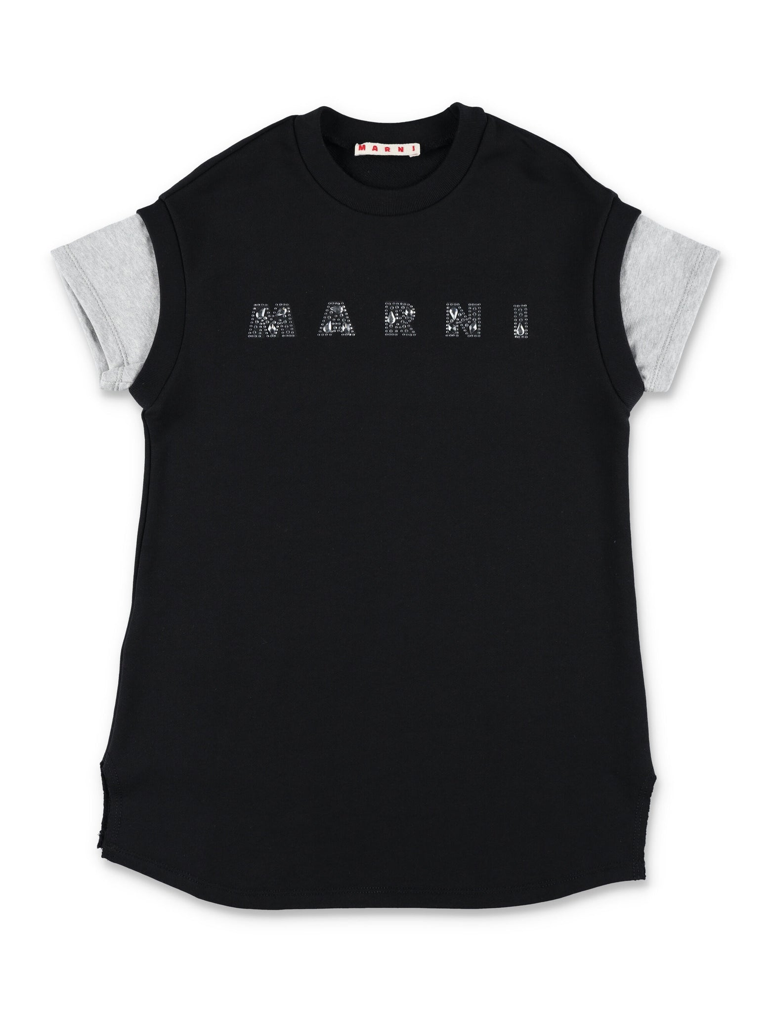 Elevate your little one's wardrobe with this stylish black mini sweatdress by Marni. Crafted from 100% cotton, it features a trendy ribbed neck, layered sleeves, and a sparkling crystal logo. Perfect for playdates or special occasions!