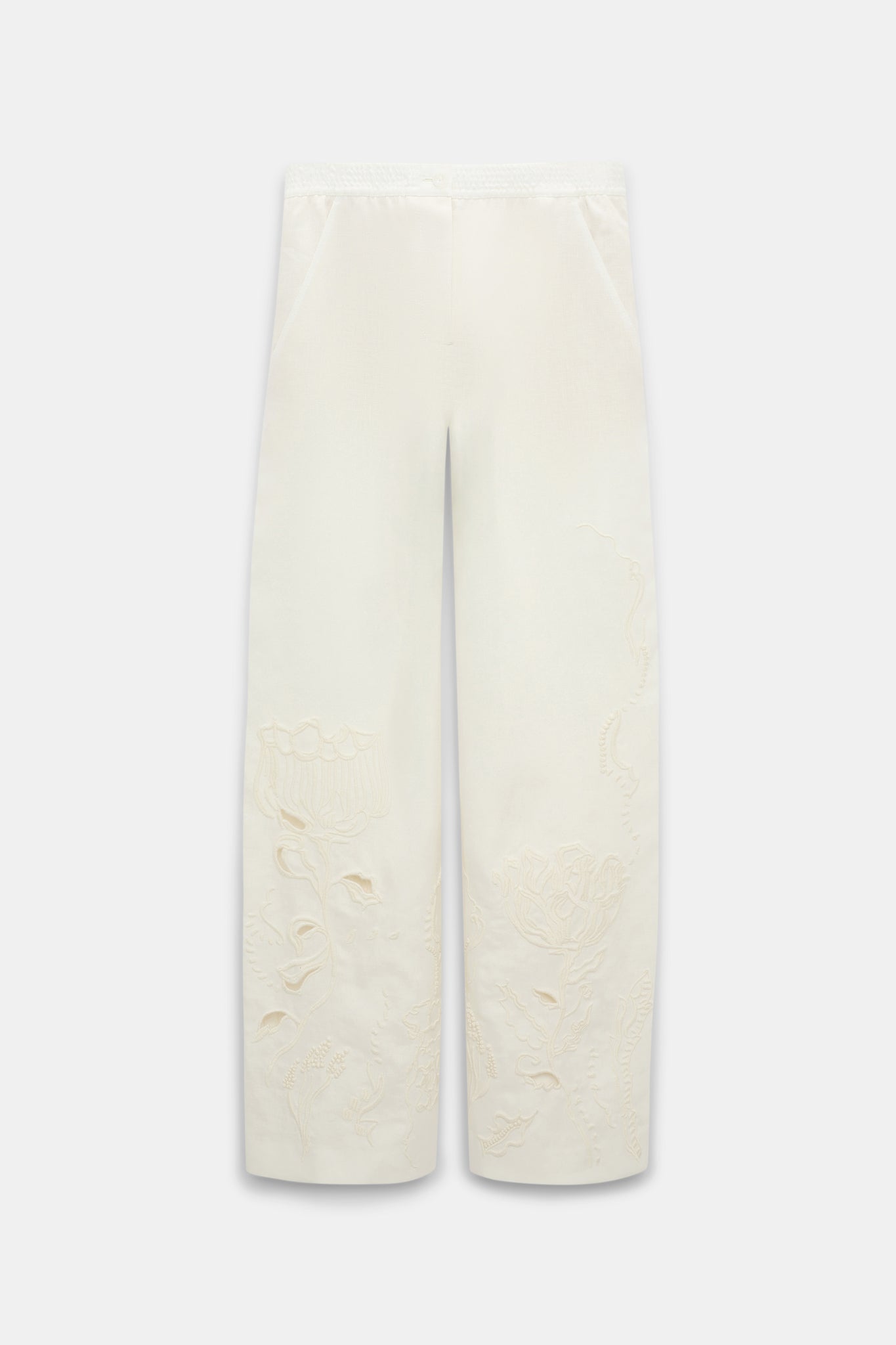 Die Hose aus Leinen überzeugt durch ihre aufwendige Garnstickerei mit dem Signature-Motiv der Kollektion. Die Hose hat einen elastischen Bund und einen entspannten Fit.