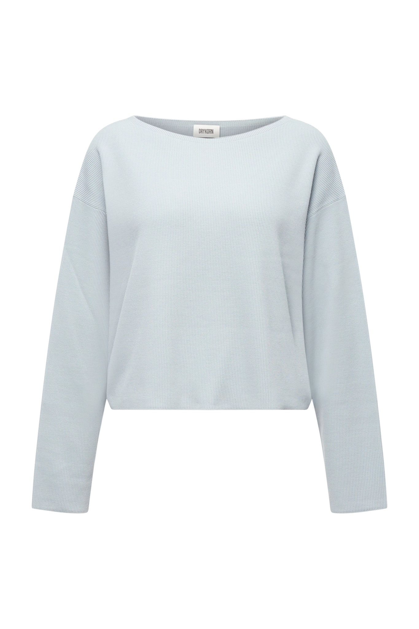 IMENIA is a cropped jumper with a bateau neckline. Cotton is naturally soft and comfortable to wear. The material feels soft and delicate on the skin, and it retains its shape and softness even after frequent washing. This ensures that it remains comfortable to wear over the long term.