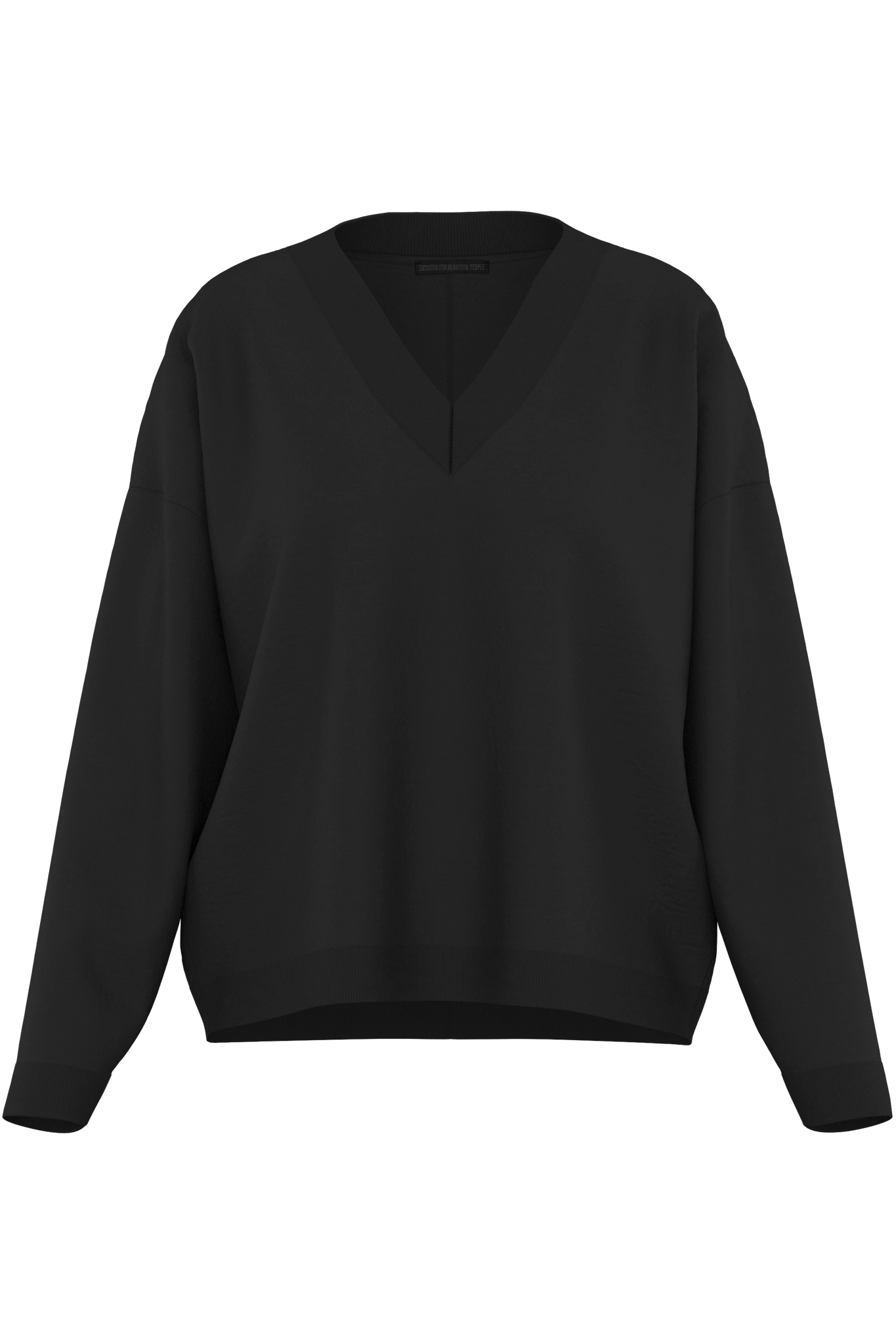 SAVARRA is a classic V-neck long-sleeved top in a relaxed fit. The jersey fabric is made of a high-quality lyocell-cotton blend with a knitted look and offers a comfortable fit.