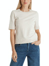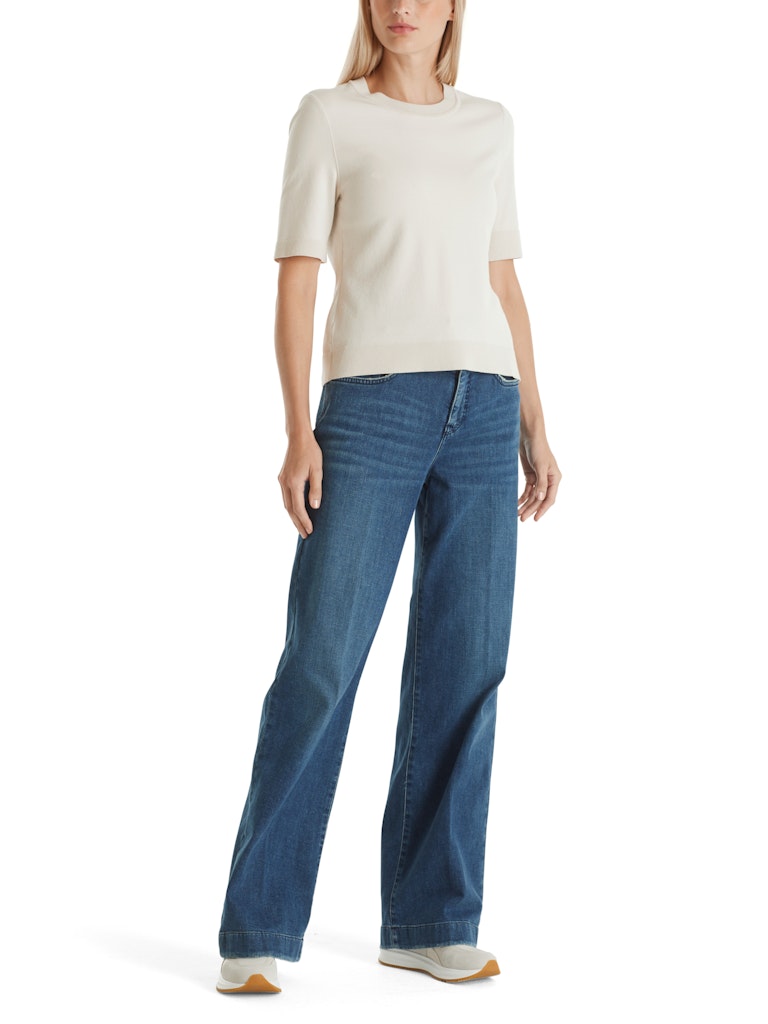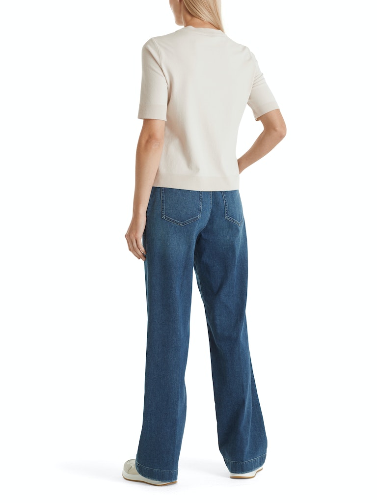 This sweater from the sustainability label "Rethink Together" features short sleeves and a crew neck. It has a fitted silhouette. Made from a blend of materials, it is knitted and finished in Germany. Further processing of the individual components takes place in European partner factories, making this garment truly "Knitted in Germany."