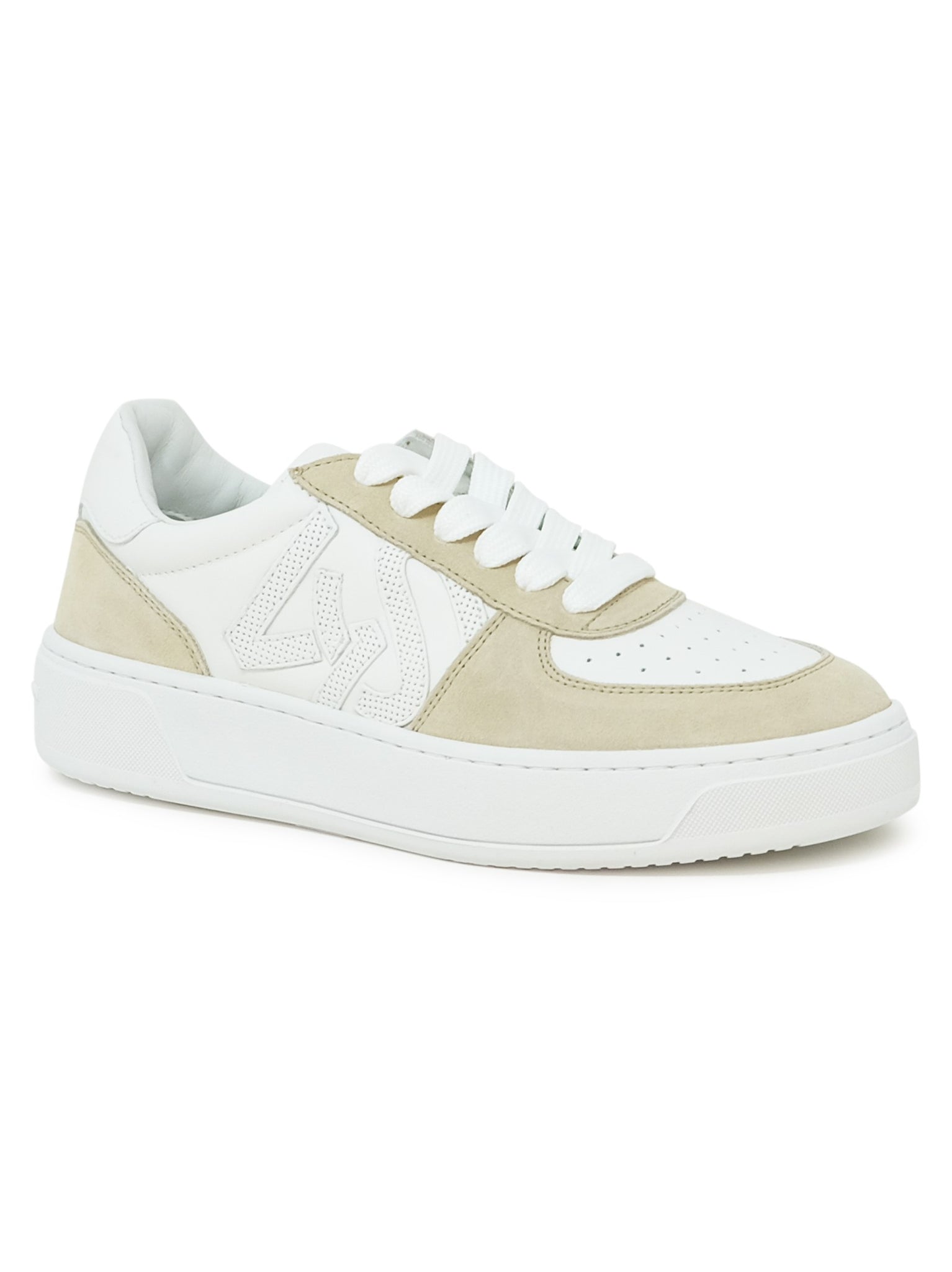 Step out in style with the STUART WEITZMAN SH308 white and beige calf leather Courtside Monogram Sneaker. Crafted from luxurious leather, these sneakers are perfect for any season. Elevate your look with these chic and comfortable shoes that will make you stand out from the crowd. Add a touch of elegance to your outfit with these versatile sneakers.