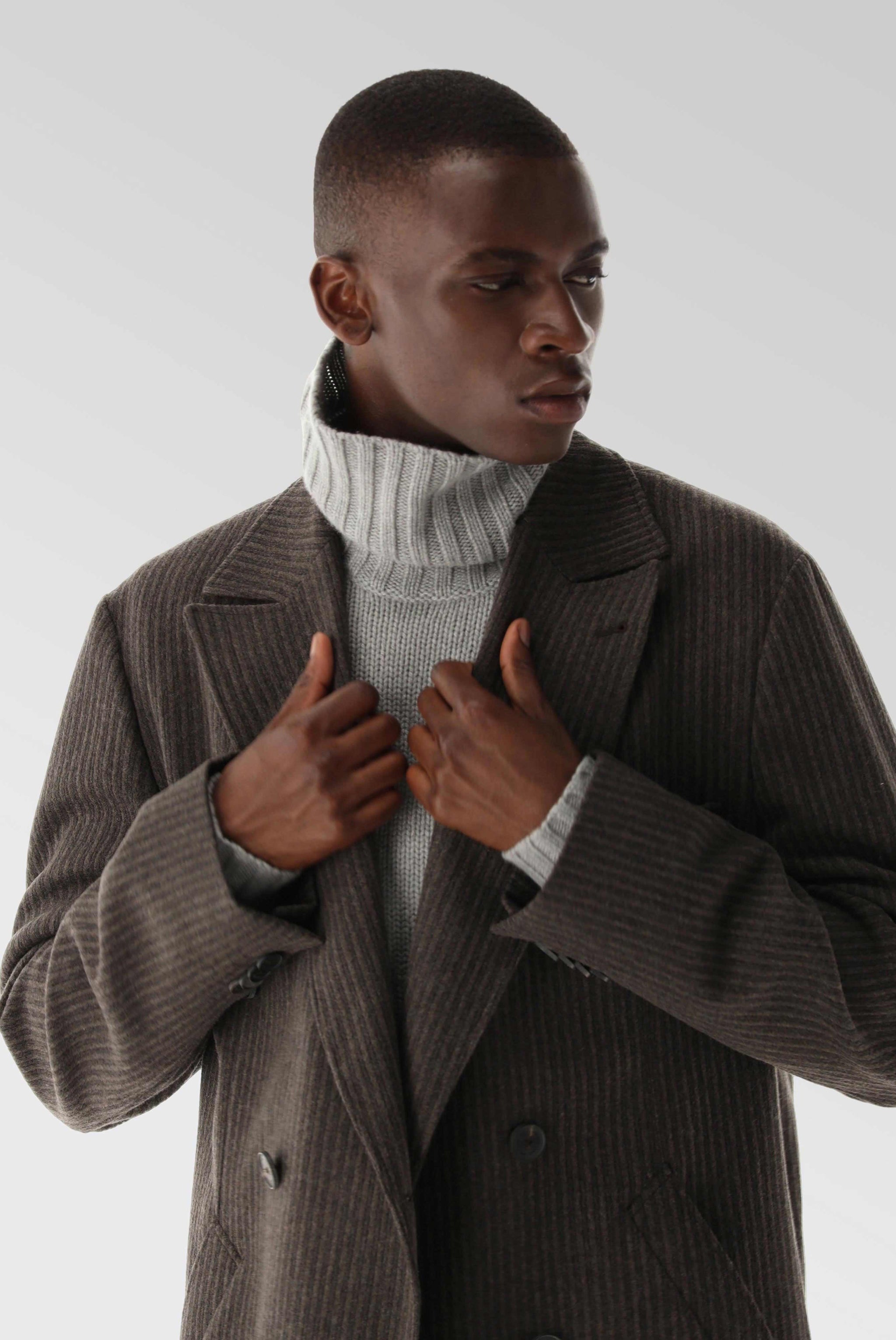 This double-breasted modern wool corduroy peacoat is a contemporary take on a classic style. Crafted from durable wool corduroy, this peacoat offers warmth and a distinctive texture. Its modern silhouette adds a contemporary touch to the traditional look. With its double-breasted closure and signature epaulettes, the peacoat embodies a stylish blend of functionality and aesthetics. Perfect for transitional weather, this versatile coat can be styled in countless ways. A modern peacoat that combines elegance and style.