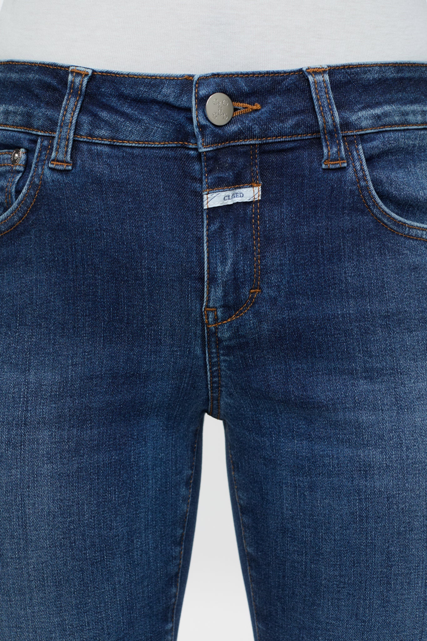 Slim fit / mid waist / drainpipe leg / cropped length