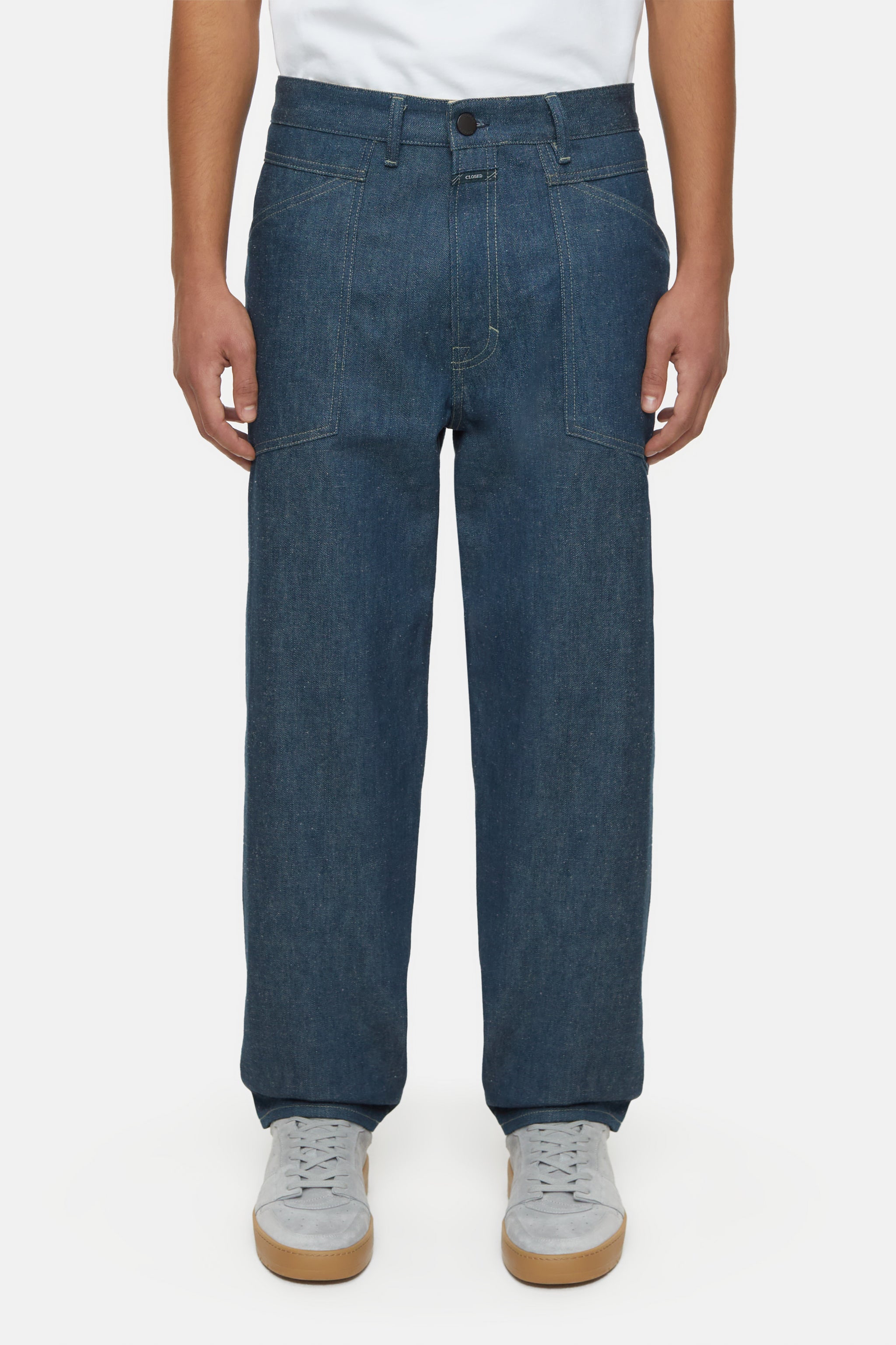 Feels like: Green-cast denim (11 oz.) with a dry feel and strong grip