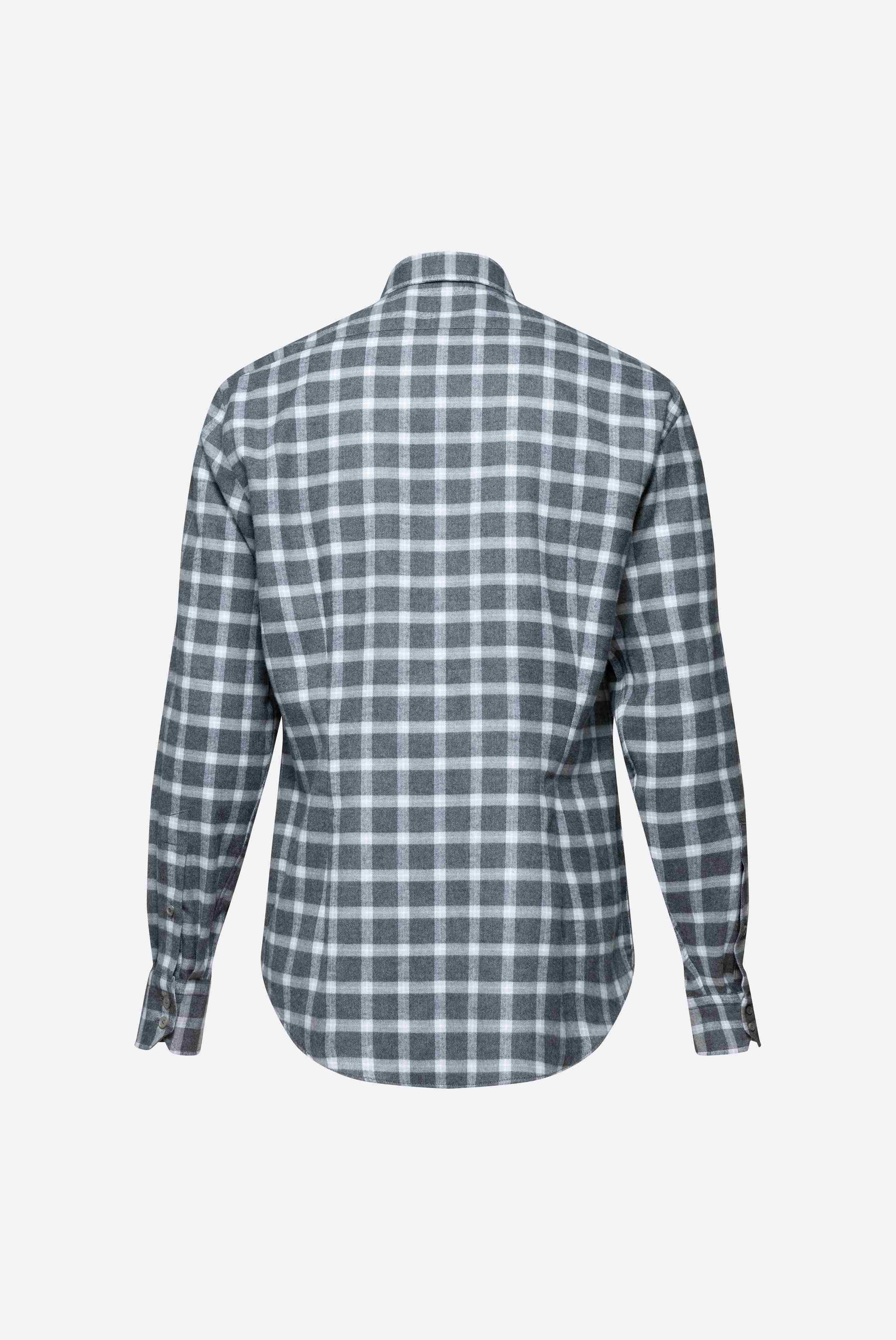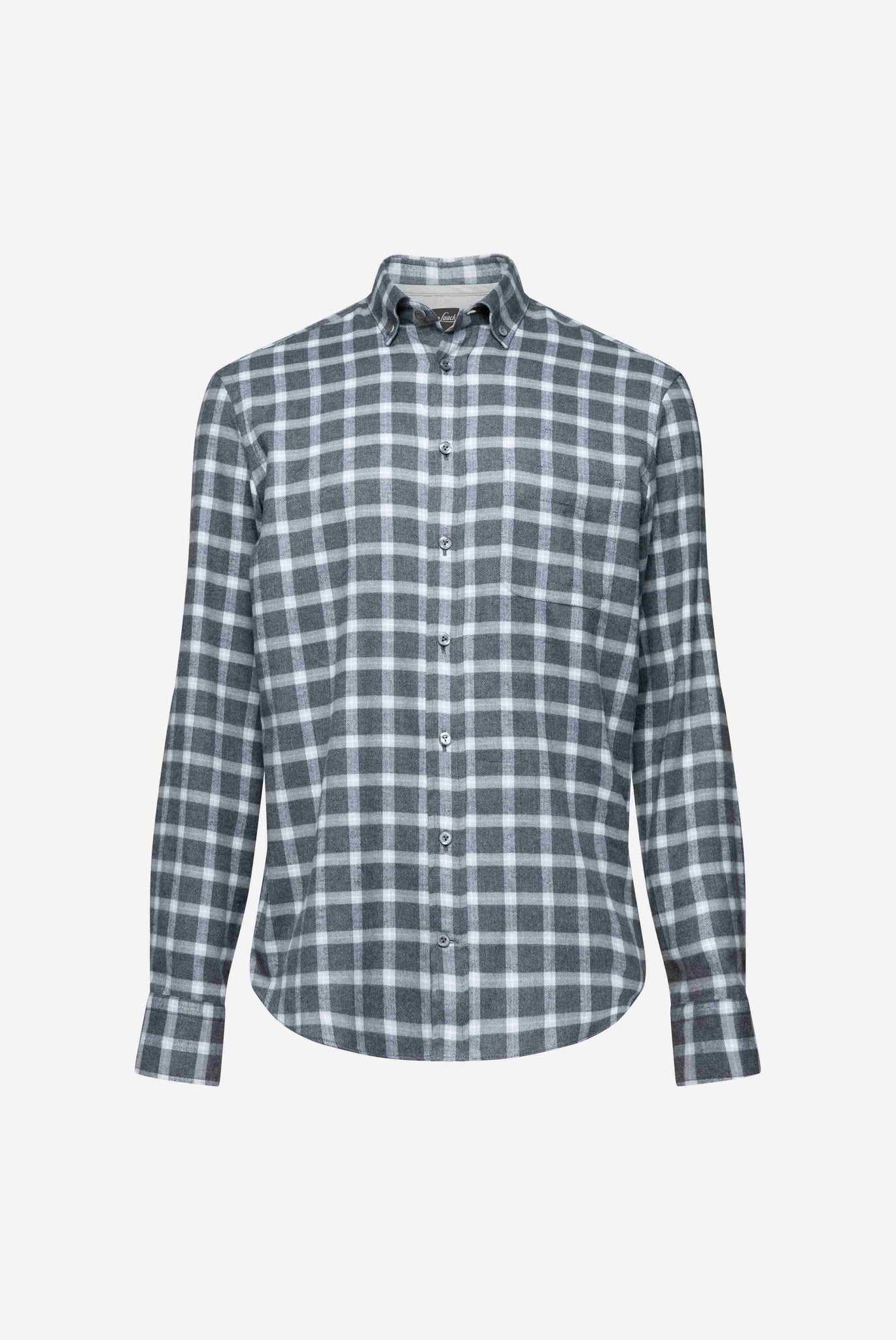 Our casual shirt, crafted from soft cotton and Tencel flannel with a cashmere-like feel and a check pattern, features a contrasting grey inner collar and band, as well as thick thread stitching. It has an open button placket and a button-down collar. Offering a tailored fit, it boasts classic cuffs with van Laack details and sewn-on van Laack leg corners. Additional features include a chest pocket and mother-of-pearl buttons. Ideal for relaxed outings and smart-casual occasions.