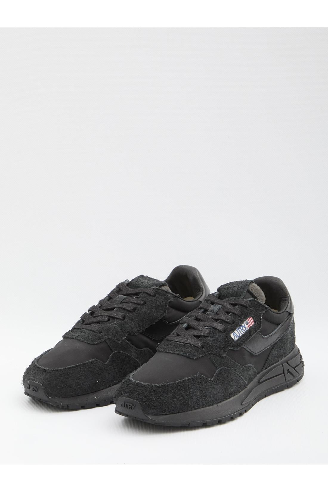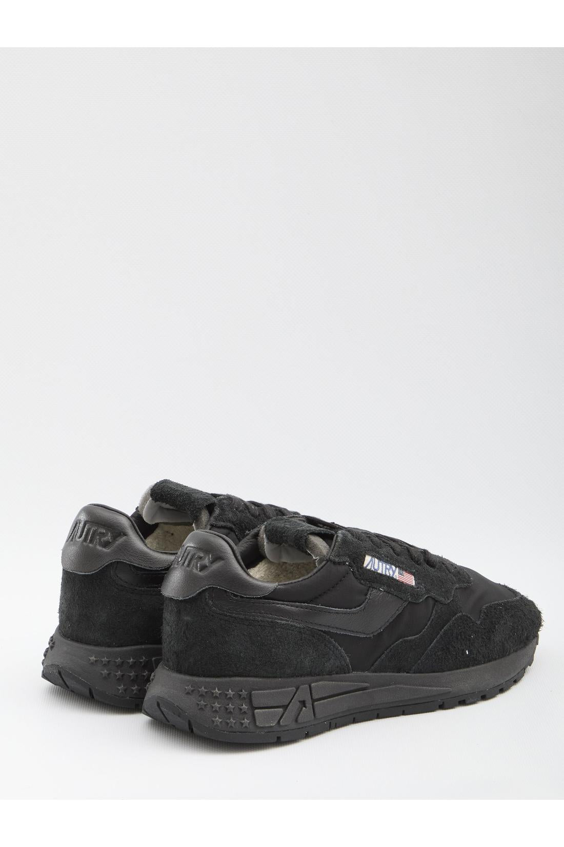 Sneakers in black nylon and suede. They feature slightly aged-effect flat cotton laces, nylon tongue with embroidered leather label, padded collar, running sole with A-arrow detail, and logo on the sides. Supplied with a dust bag.
