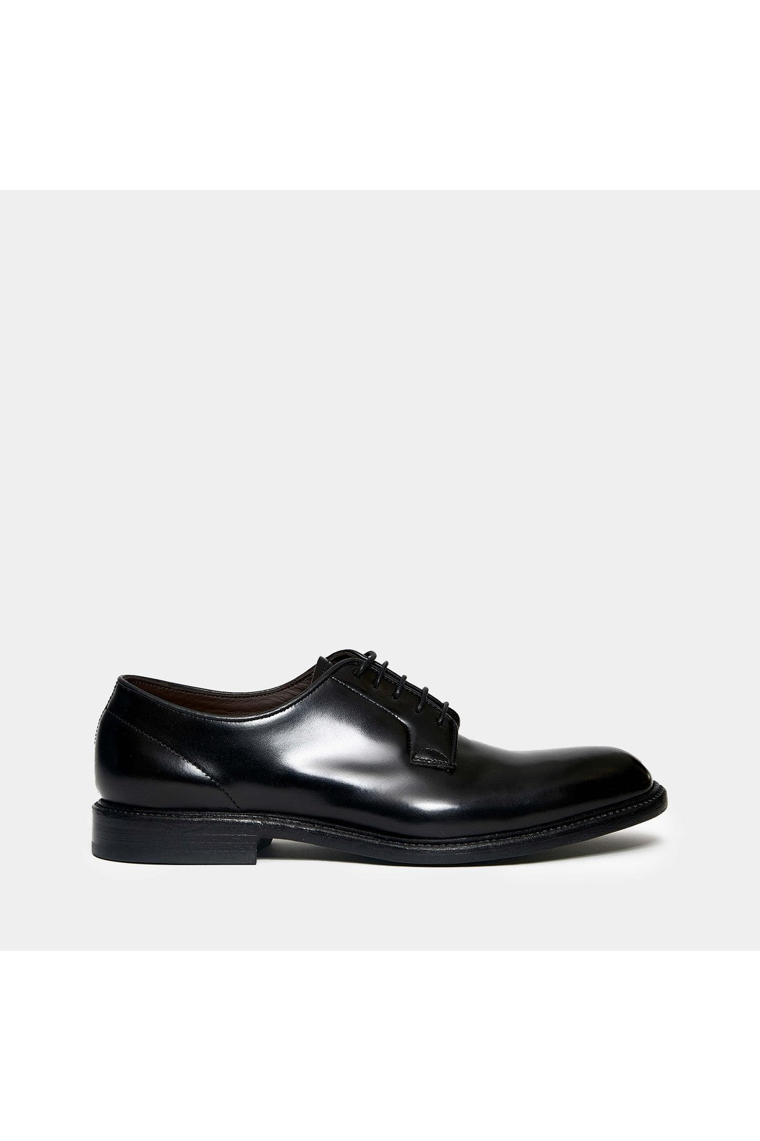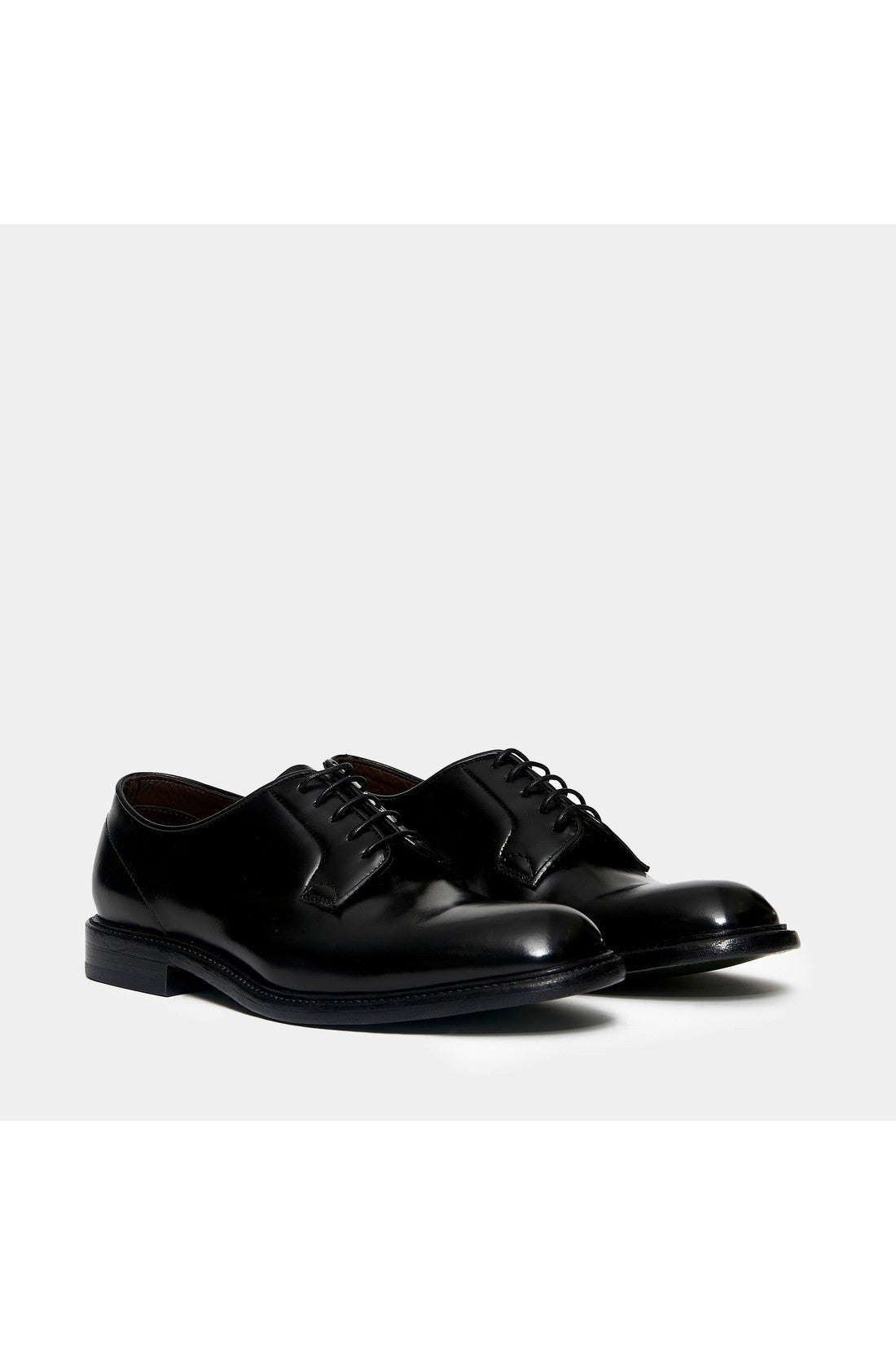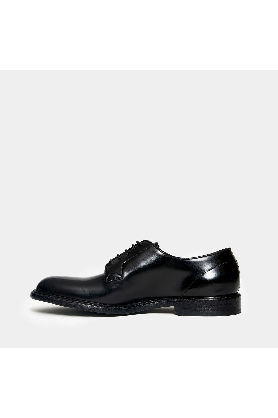 Step up your shoe game with these sophisticated black leather lace-up shoes from GREEN GEORGE. Crafted from full-grain calf leather, these shoes feature a sleek and abrasive finish. With a Blake construction and leather sole, these shoes are sure to provide unmatched comfort and durability. Perfect for any formal occasion, these shoes are a must-have for any gentleman's wardrobe. Don't settle for less, get your pair today!