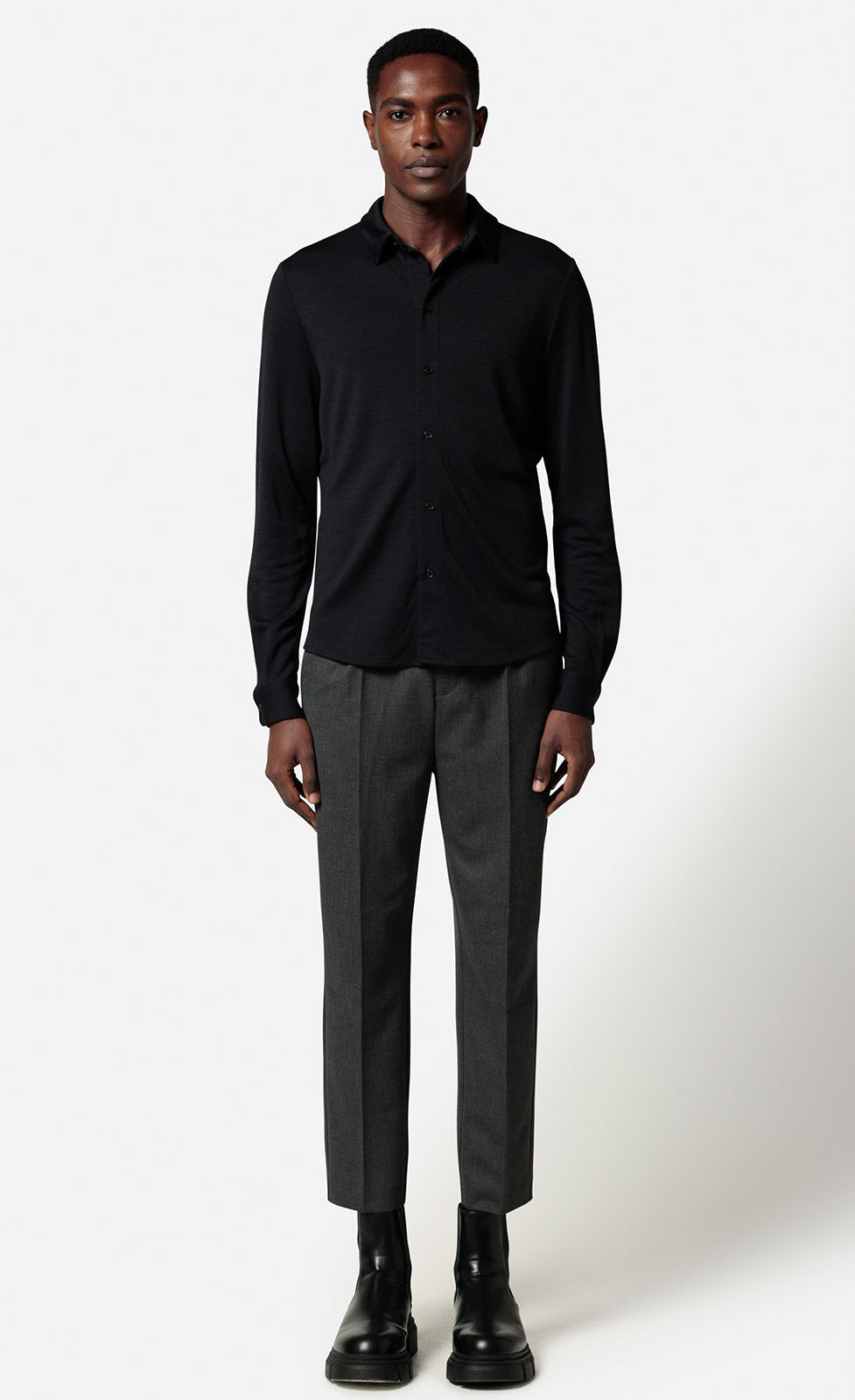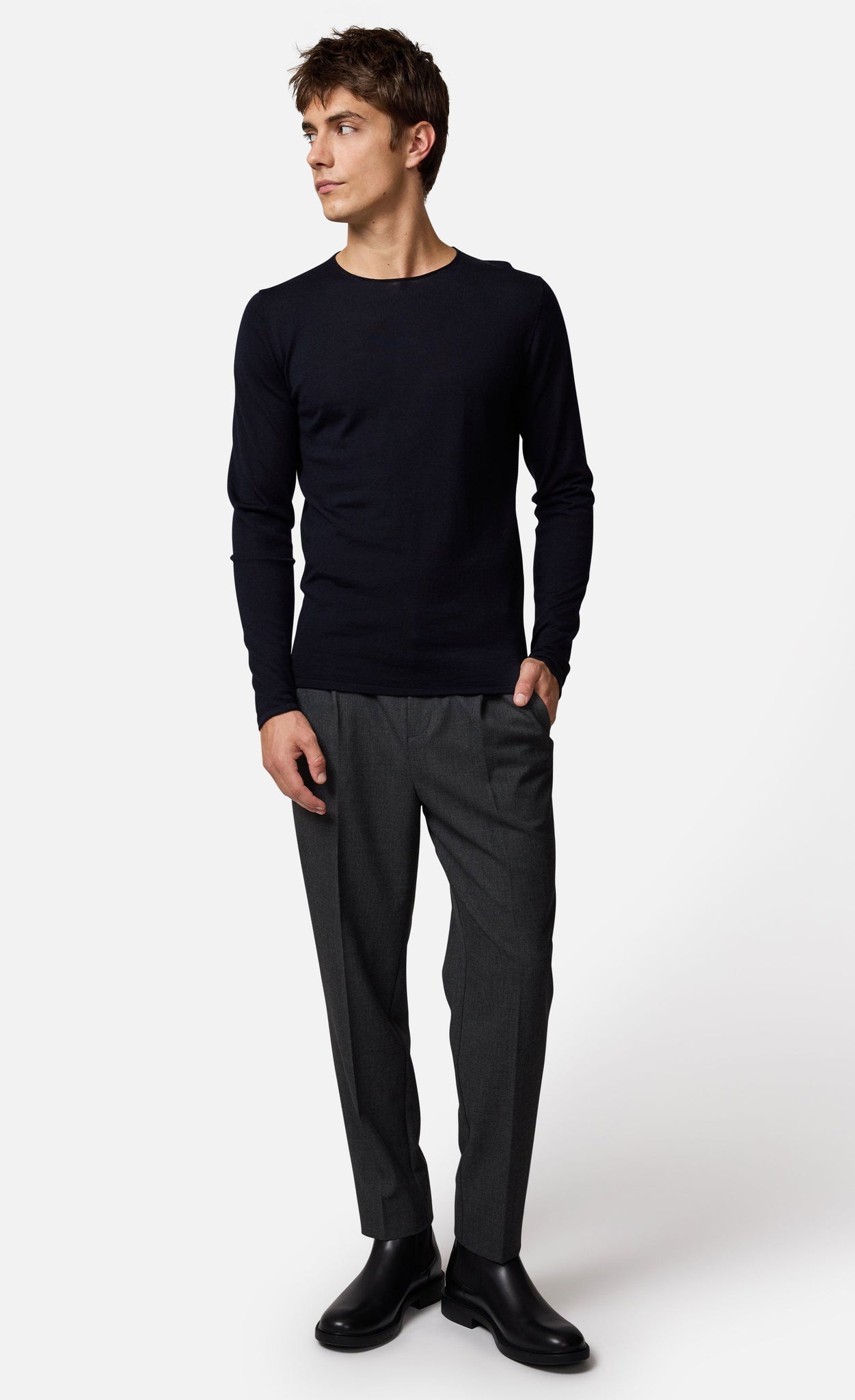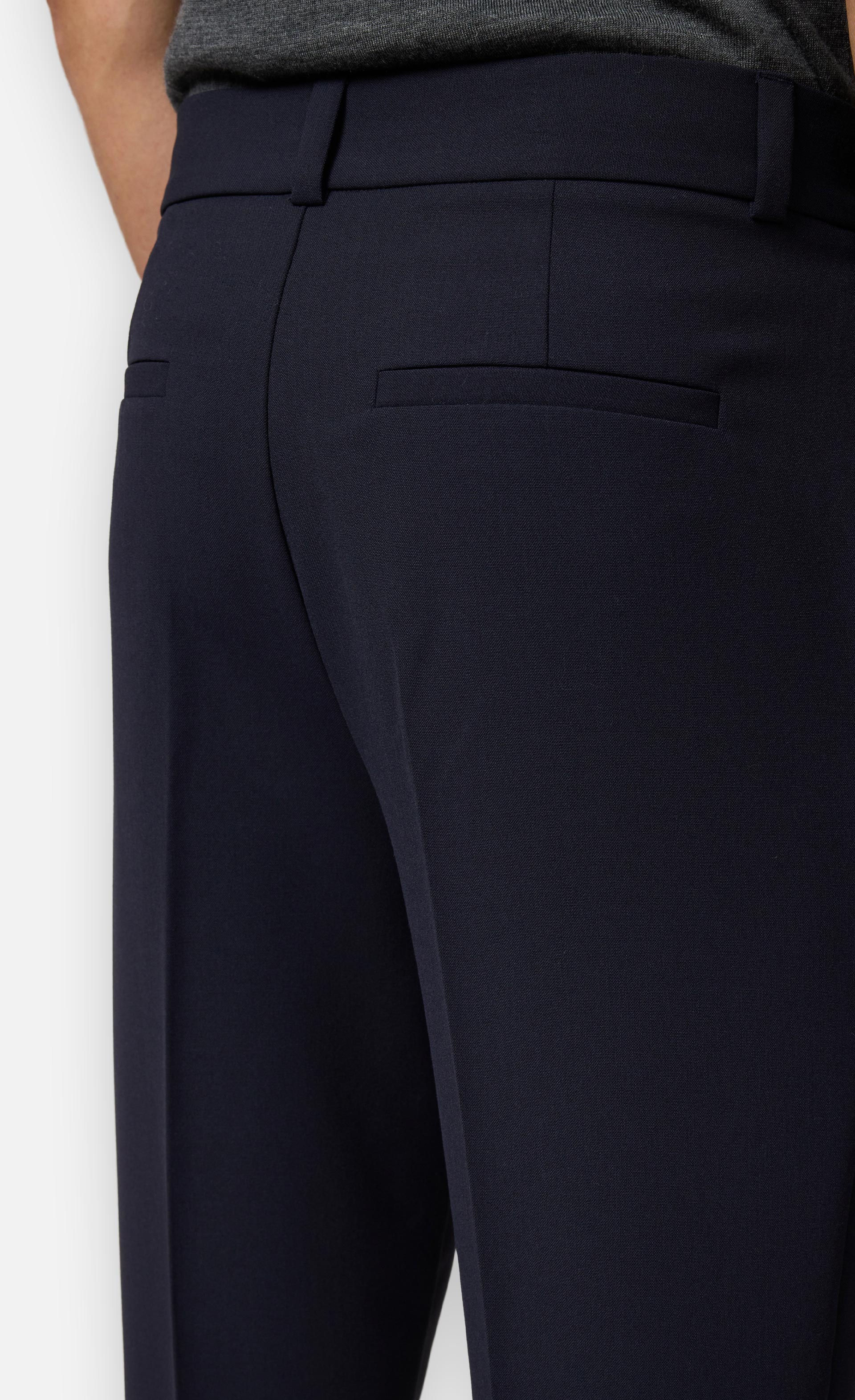 These trousers, styled like suit trousers, get their distinctive look from the fine, loosely draped fabric with a cool-wool look. The elastane content ensures exceptional comfort, making these trousers the perfect everyday companion for business outfits or casual looks.