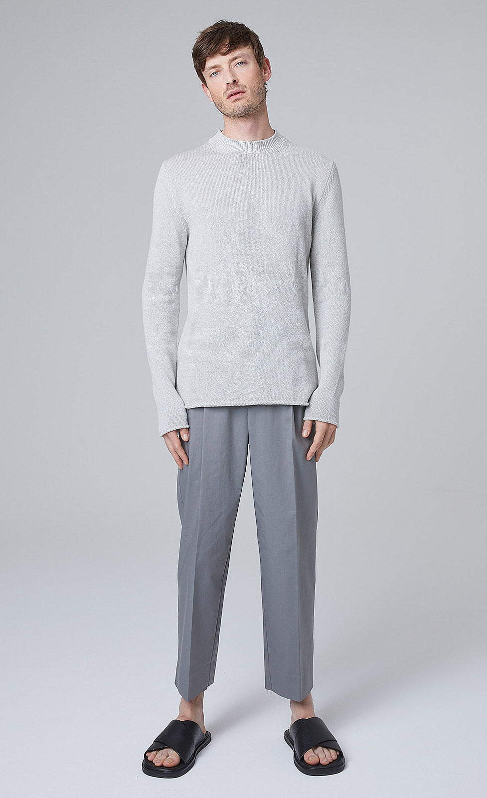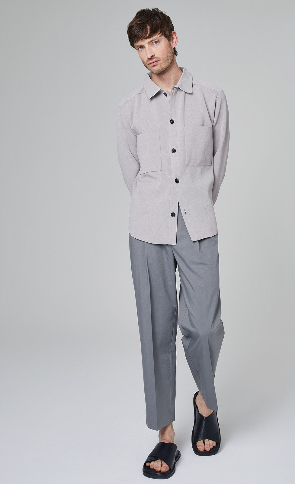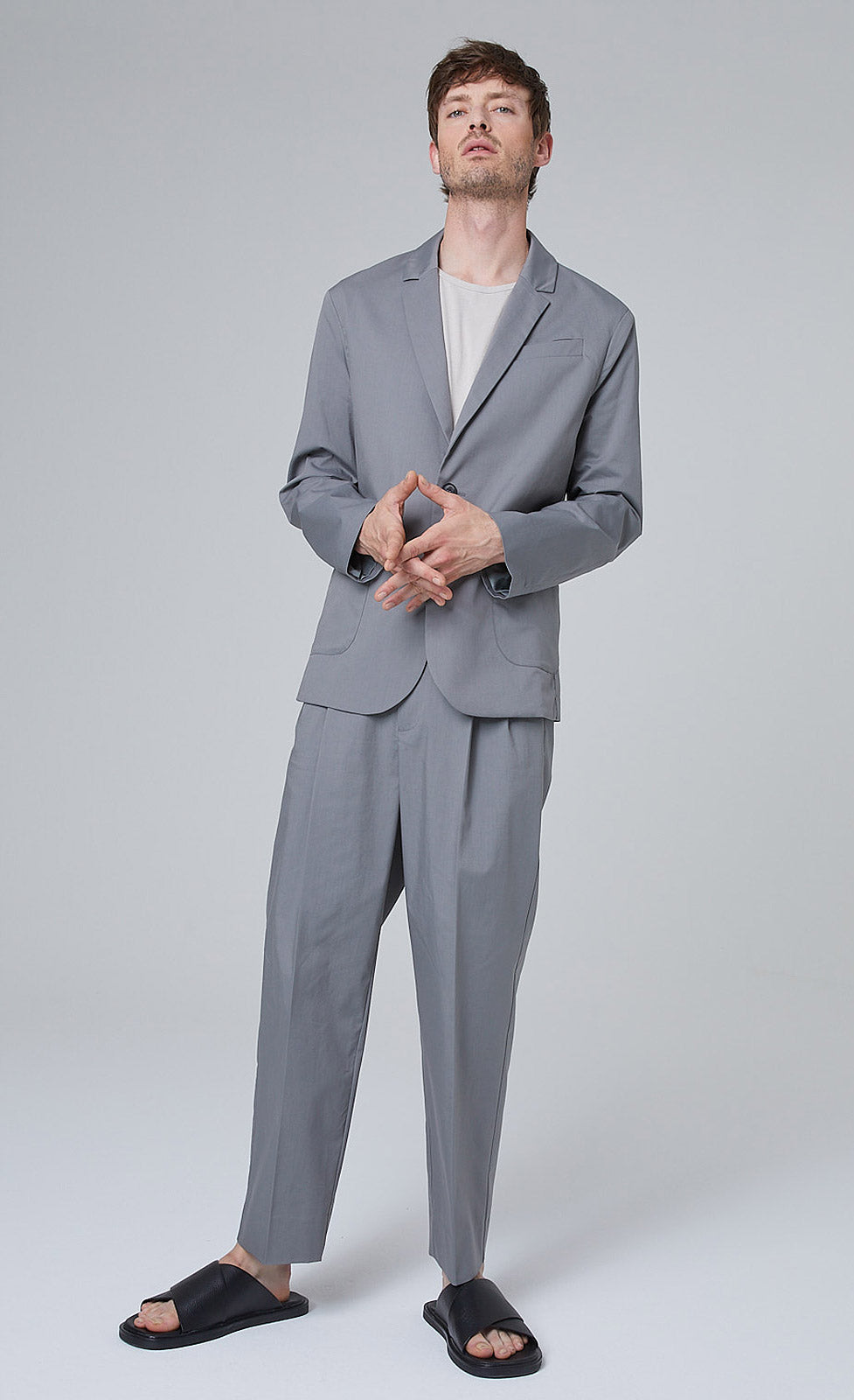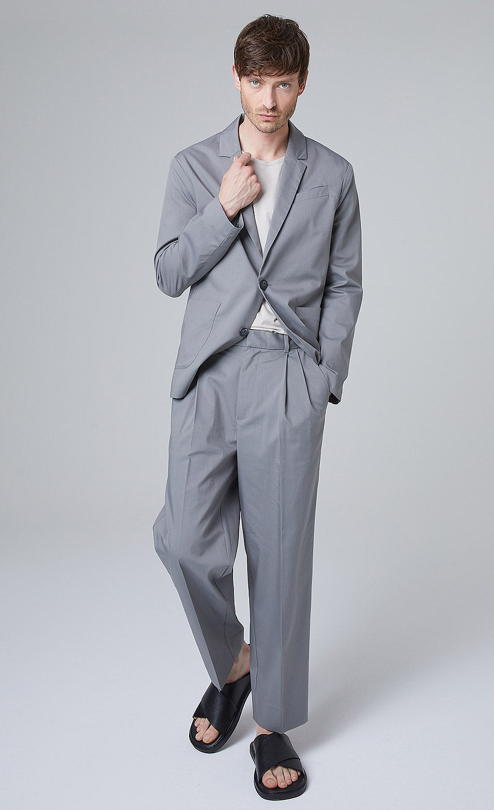 These trousers are reminiscent of classic suit trousers, but the wider fit and slightly cropped leg give them a modern touch. For a summer business look, we offer a matching jacket made from the same fabric.