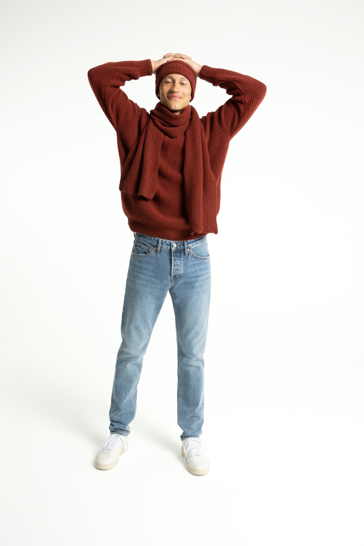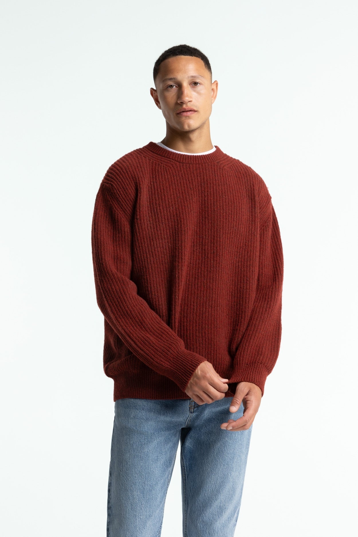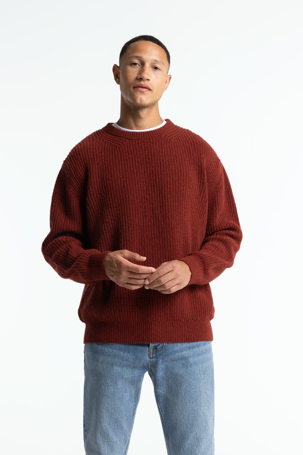 Regular Fit 38% recycled wool, 22% recycled cotton, 28% recycled polyamide, 7% recycled polyacrylic, 5% recycled artificial fibers