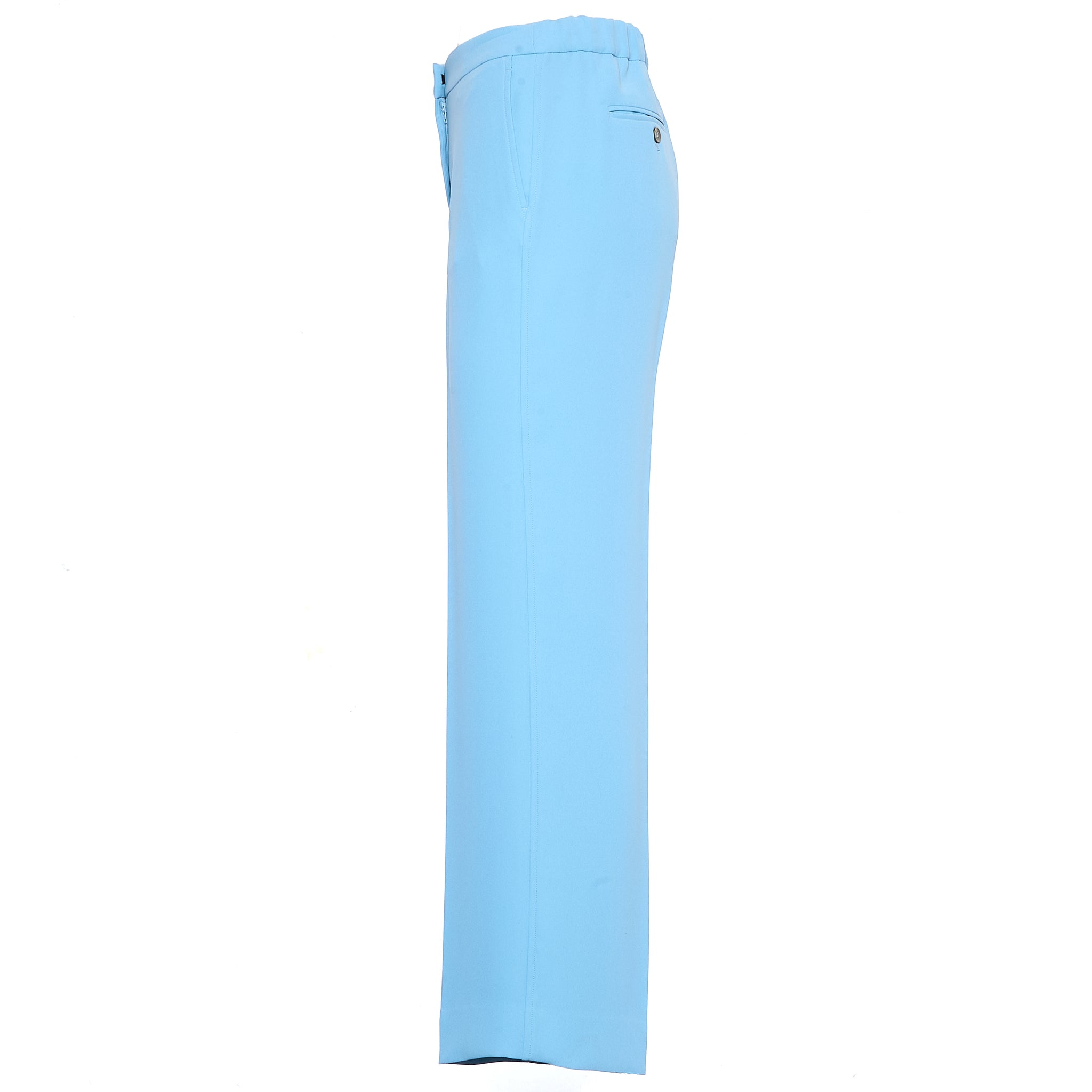 These tailored trousers in Azzurro feature a straight fit, elastic waistband, four pockets, and a zip closure. Ideal for a stylish yet comfortable look, they ensure a regular fit for everyday wear.