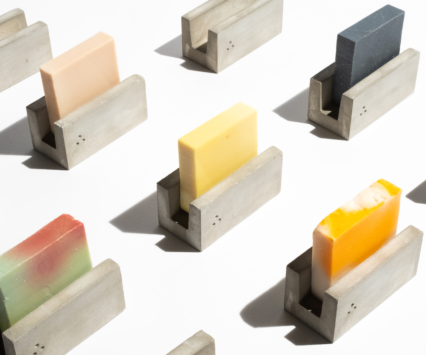 Natural soap needs air. It only lasts a long time if it can dry thoroughly all around. Our block holder 001, made of open-pored concrete, offers exactly that: maximum function, minimal look. Made in a Hamburg pottery, each piece is unique.
