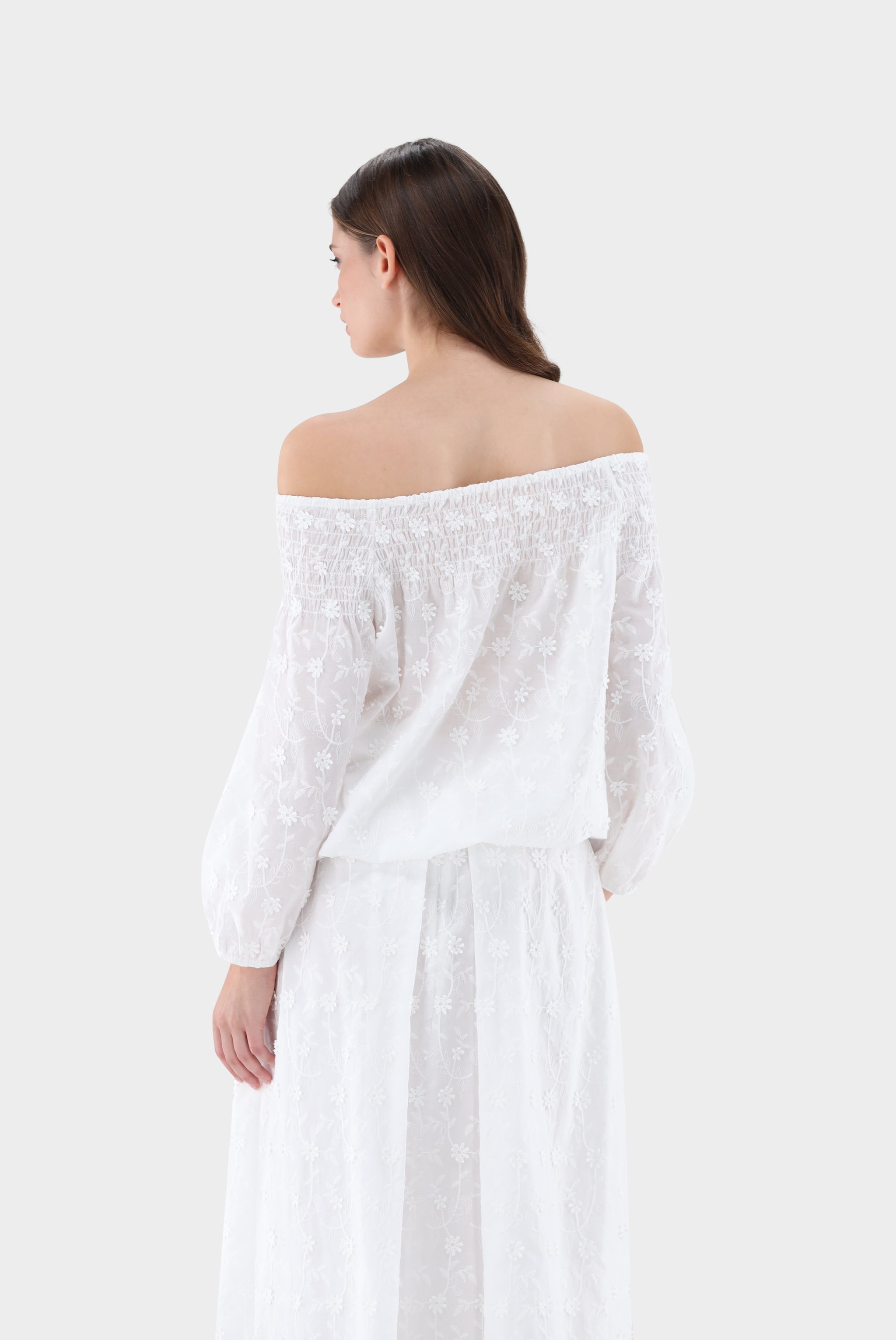 Off-the-shoulder Carmen blouse with floral embroidery