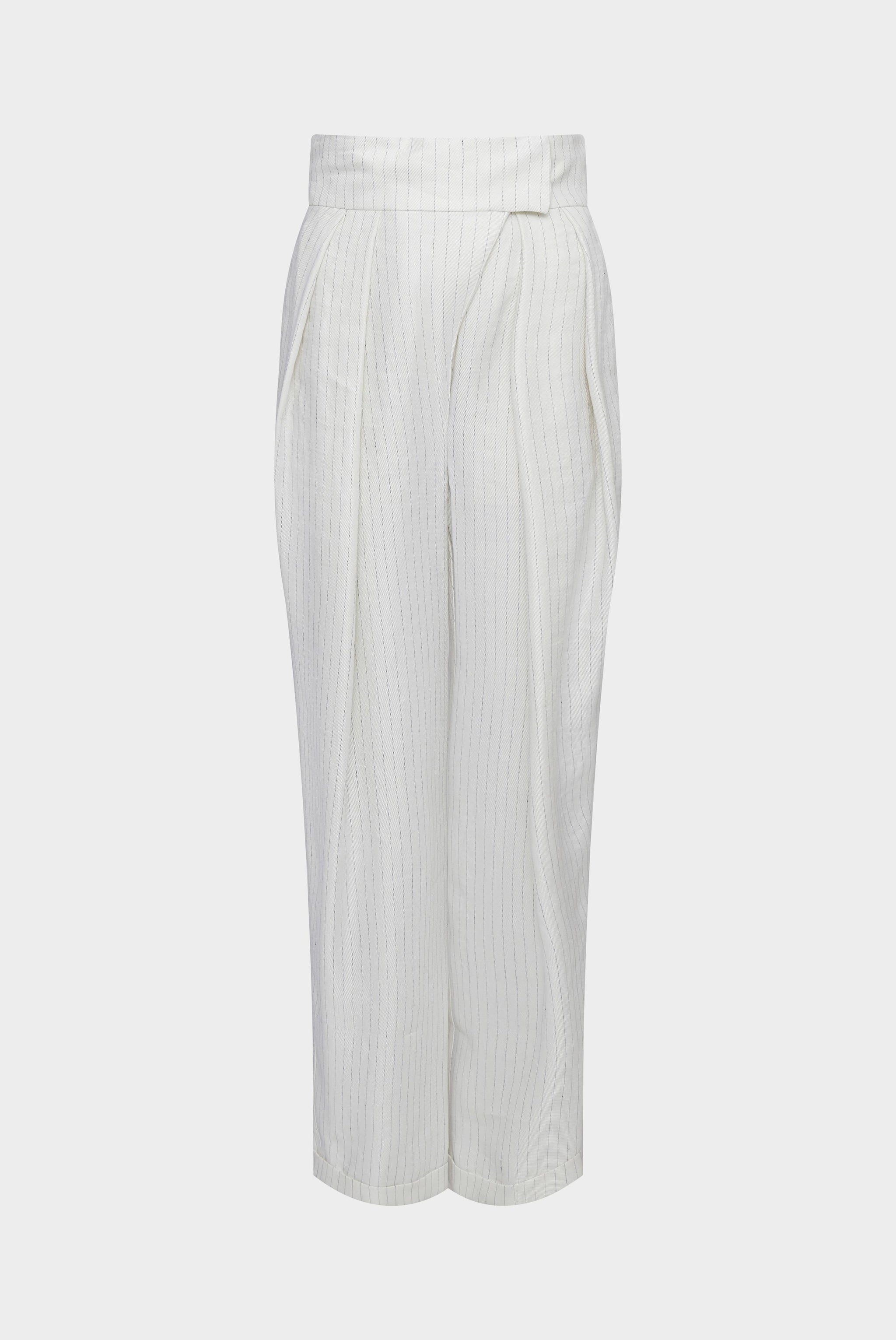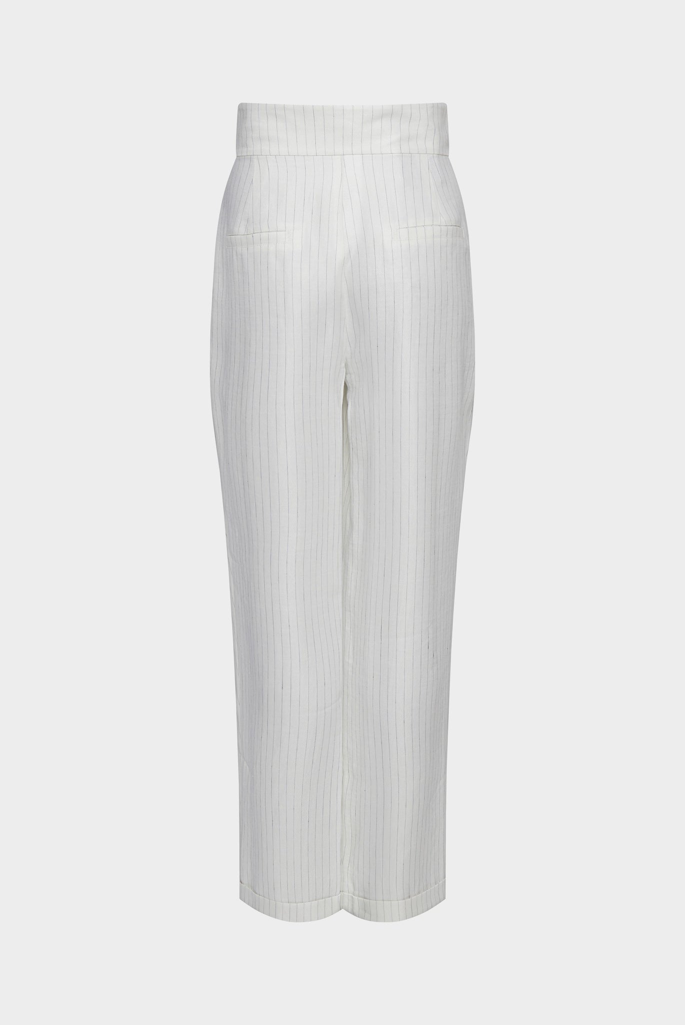 Summer pleated trousers in a linen blend with fine stripes, ivory