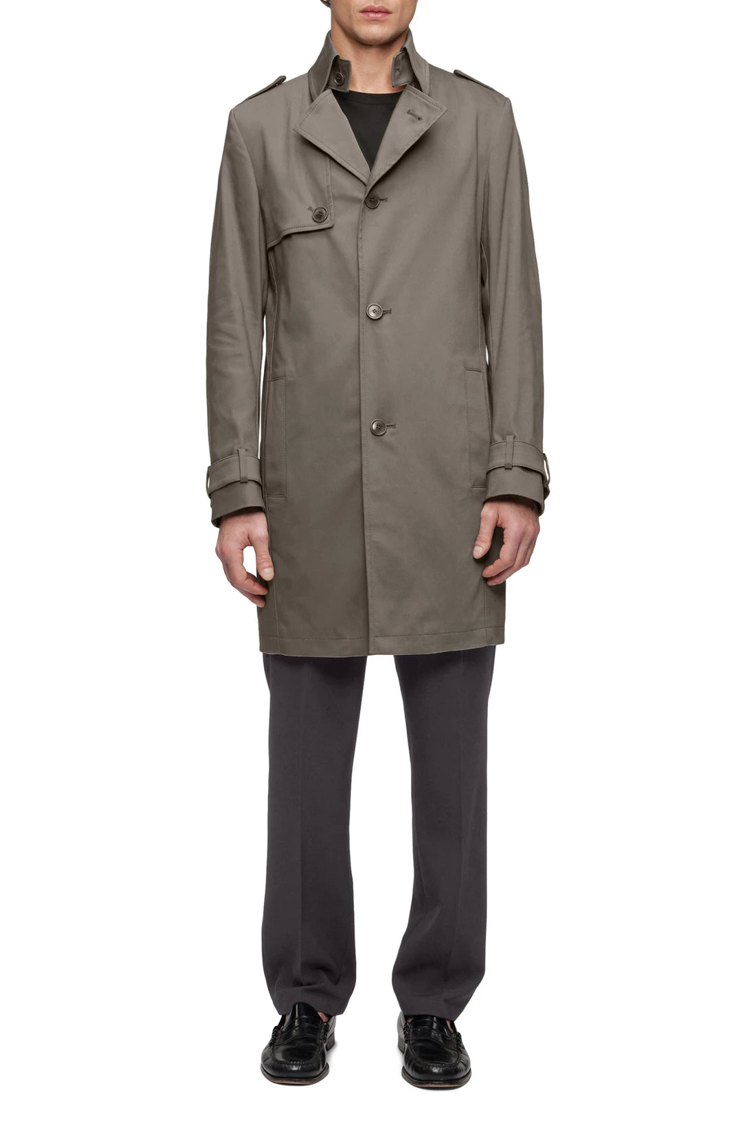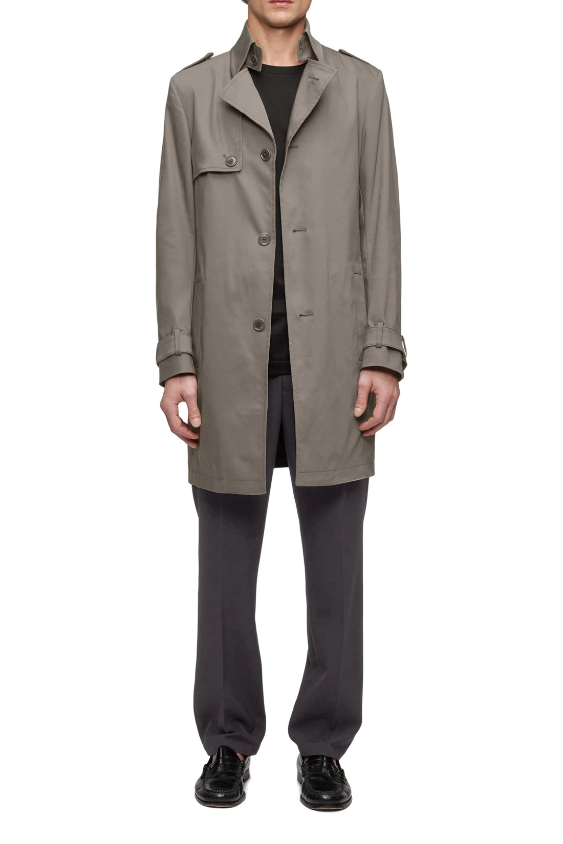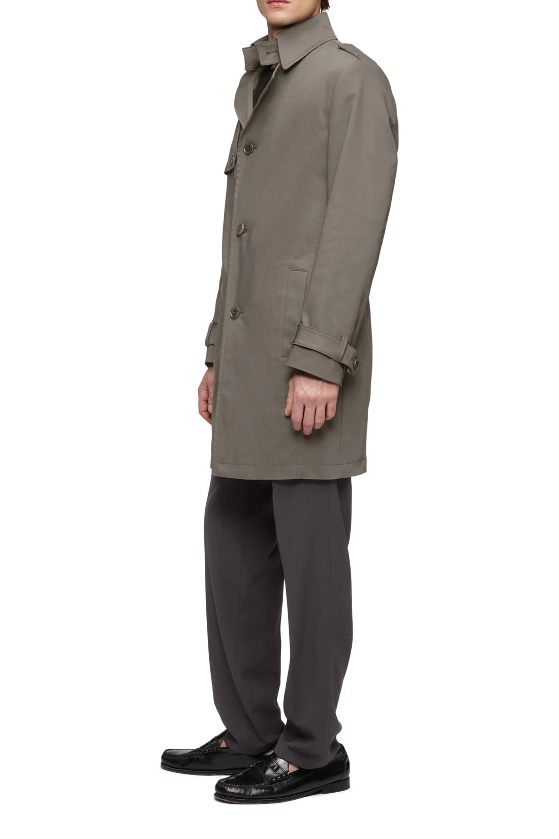 SKOPJE is a classic and timeless short trench coat that features characteristic elements such as epaulettes and adjustable cuff tabs. Spacious welt pockets and a comfortable walking slit at the centre back provide extra comfort. Technostretch satin is comfortable to wear and the elastane content ensures good stretch and an optimal fit, while the cotton content ensures breathability and softness. The elegant fabric adapts perfectly to different styles and occasions.