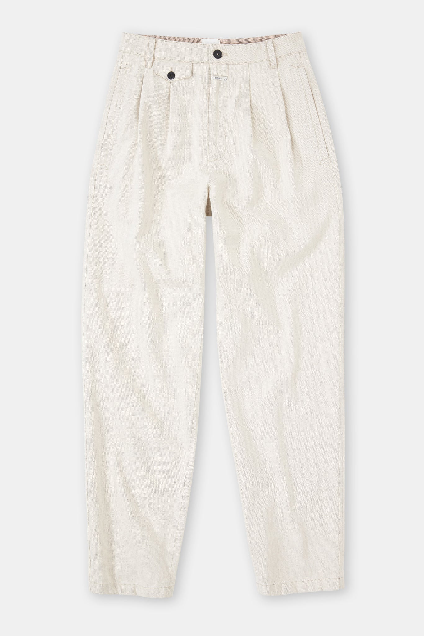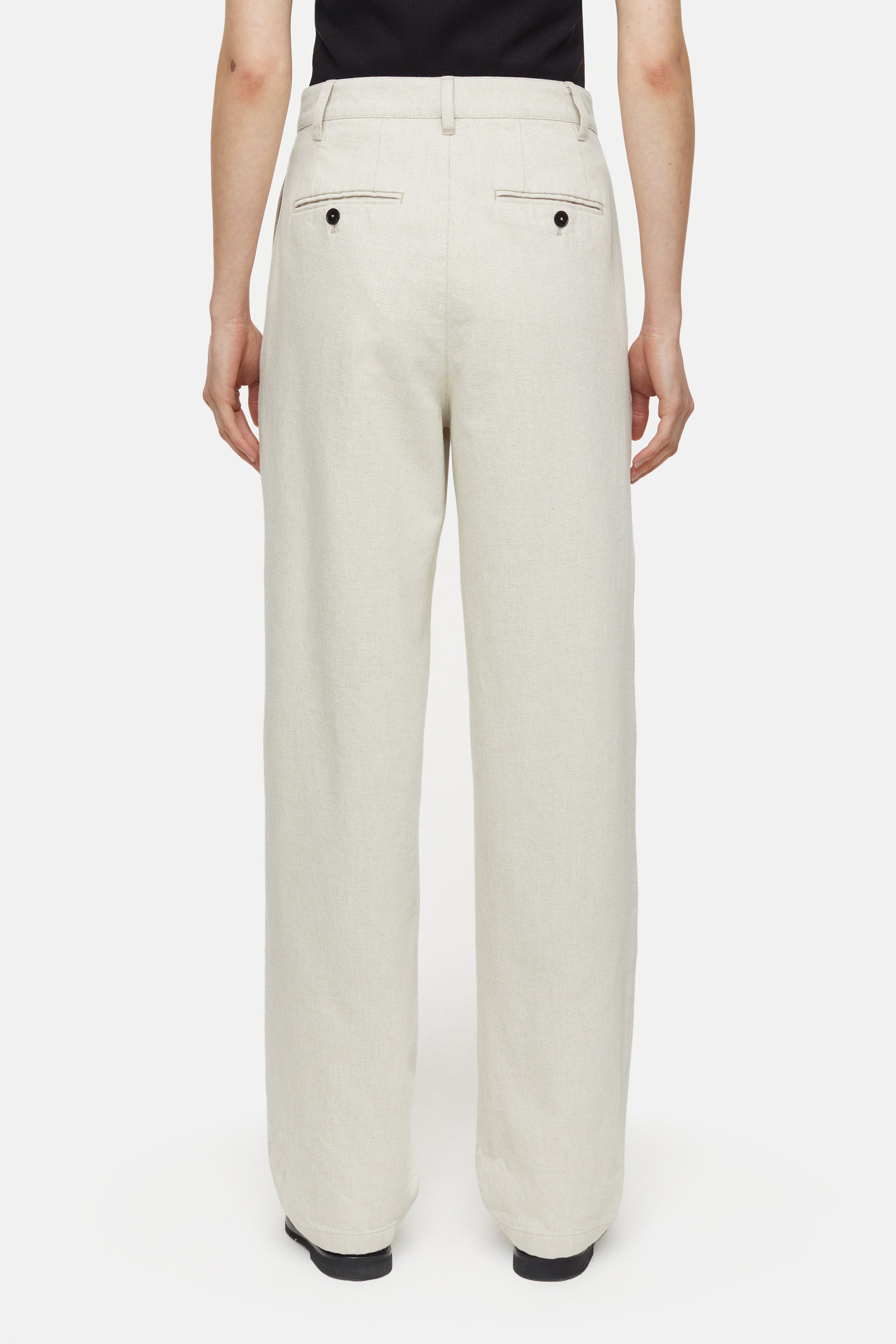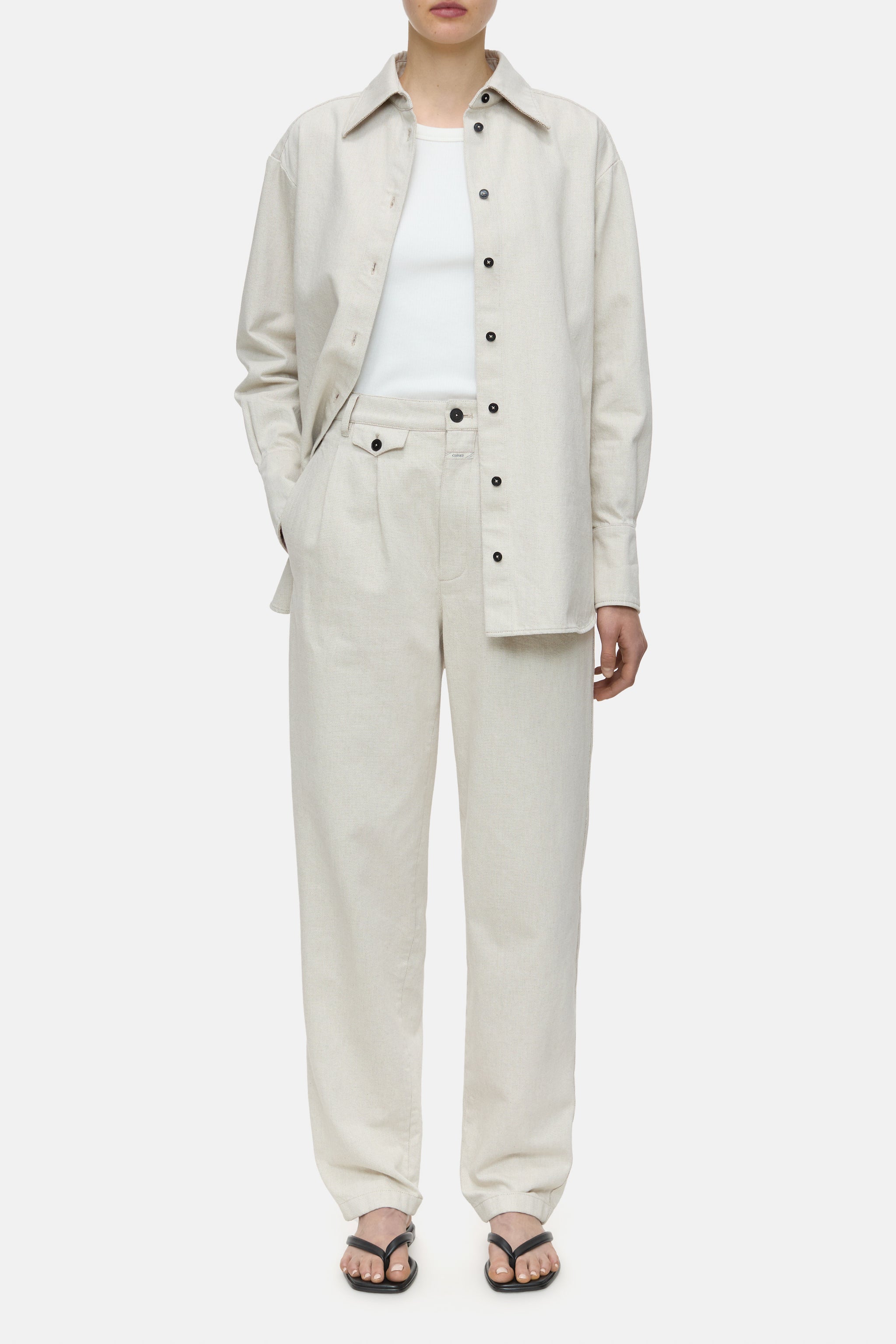 Looks like: ecrufarbener Denim mit mehrfarbigem Unterton, Knöpfe in Horn-Optik