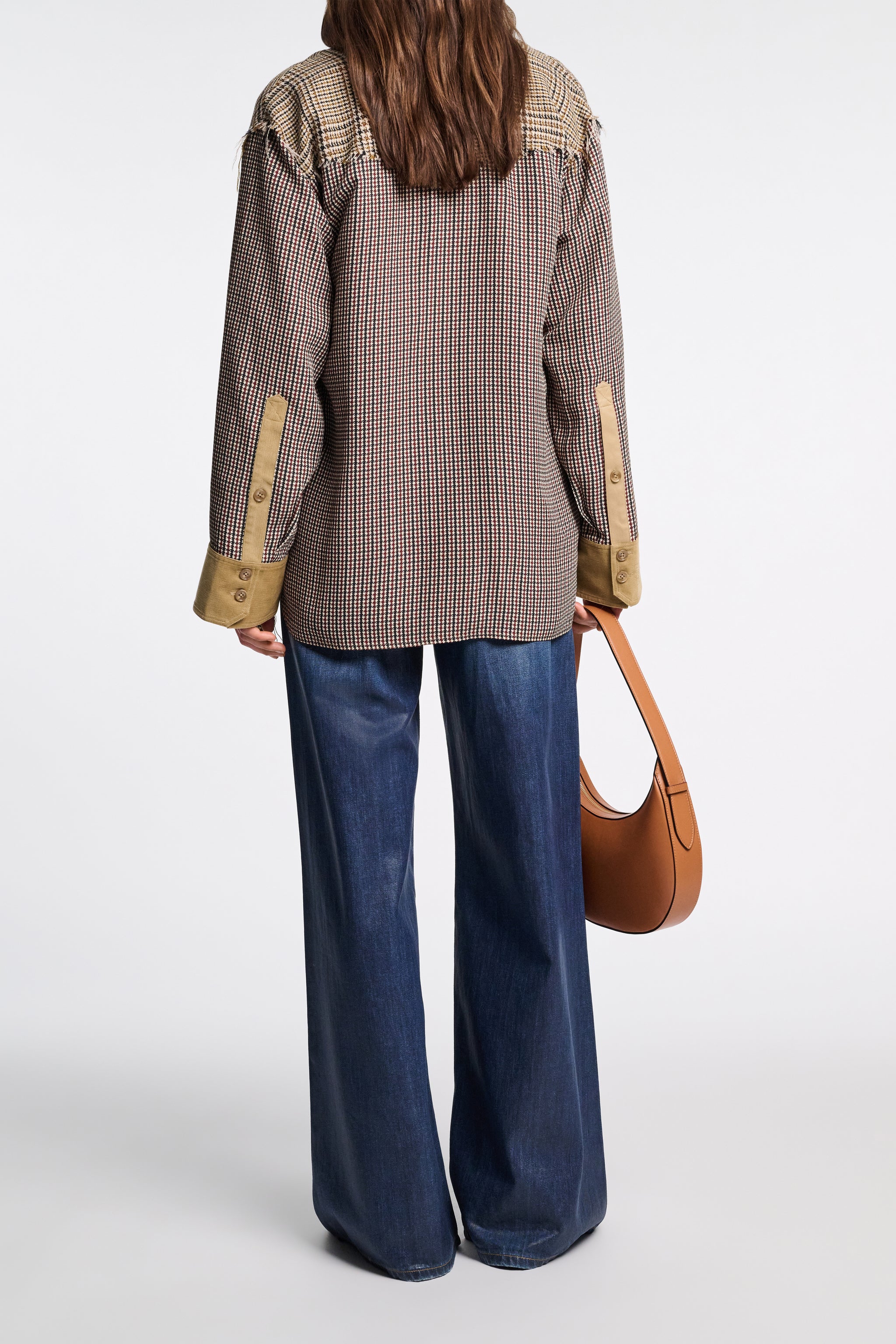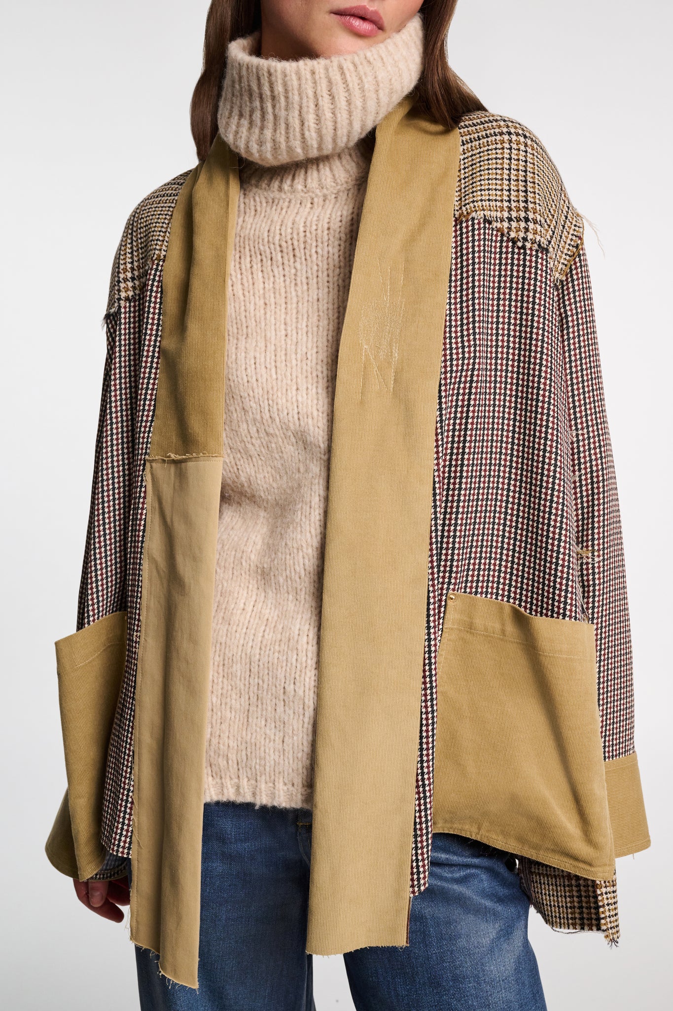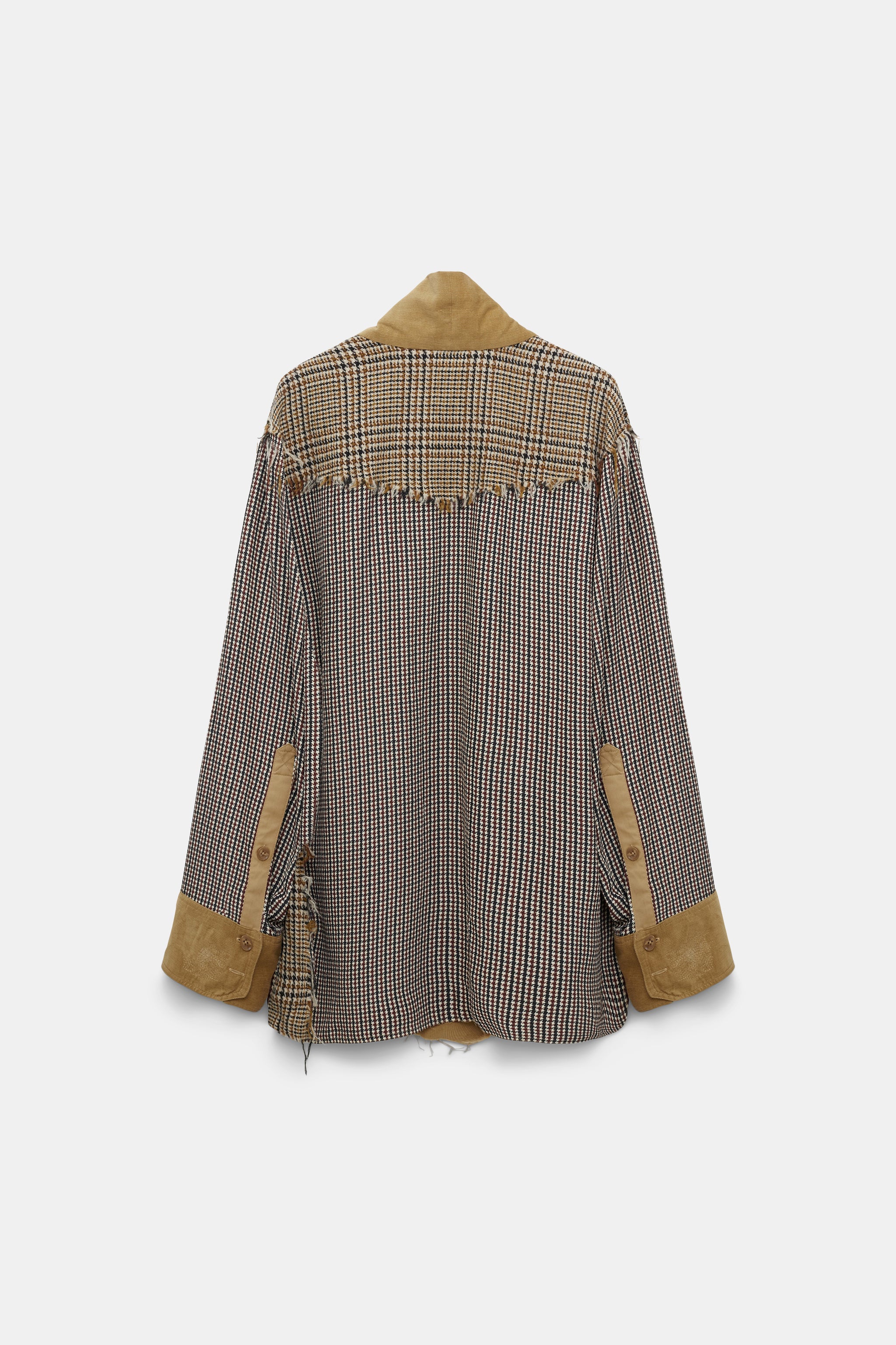 This shirt-jacket features a patchwork design. The different houndstooth fabrics are revisited in the Fall/Winter collection. Perfect for indoor wear, the jacket has a relaxed fit.