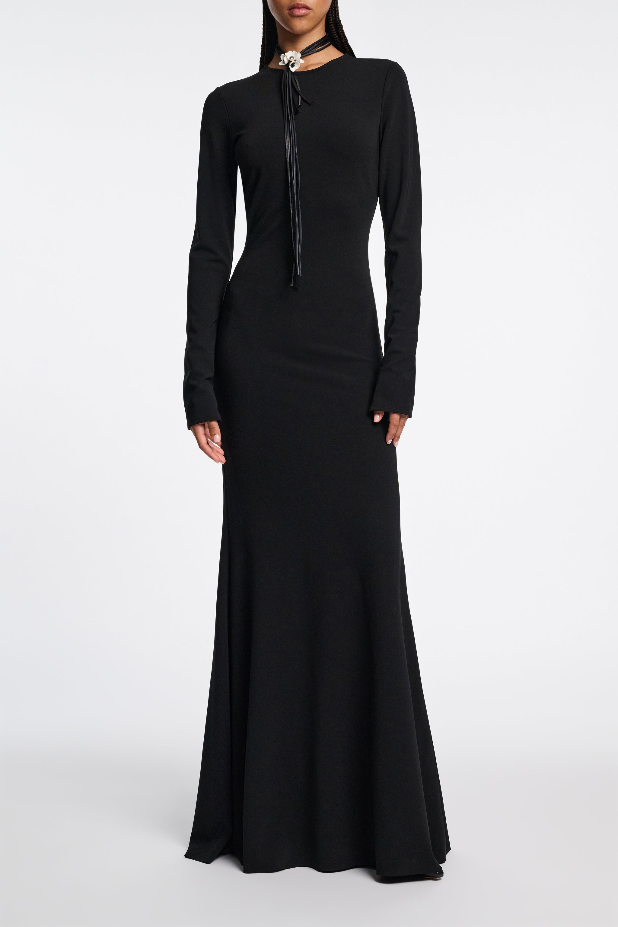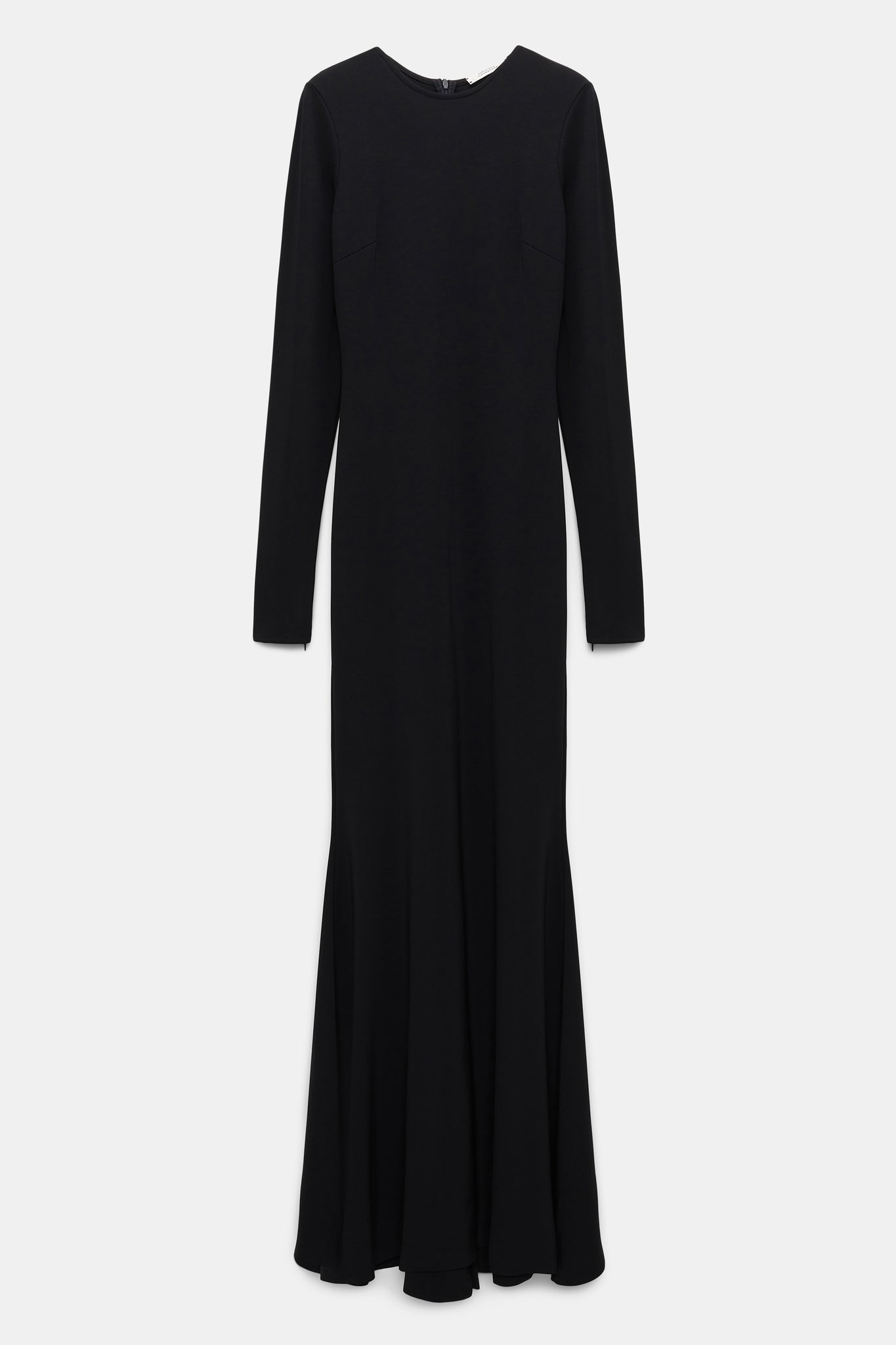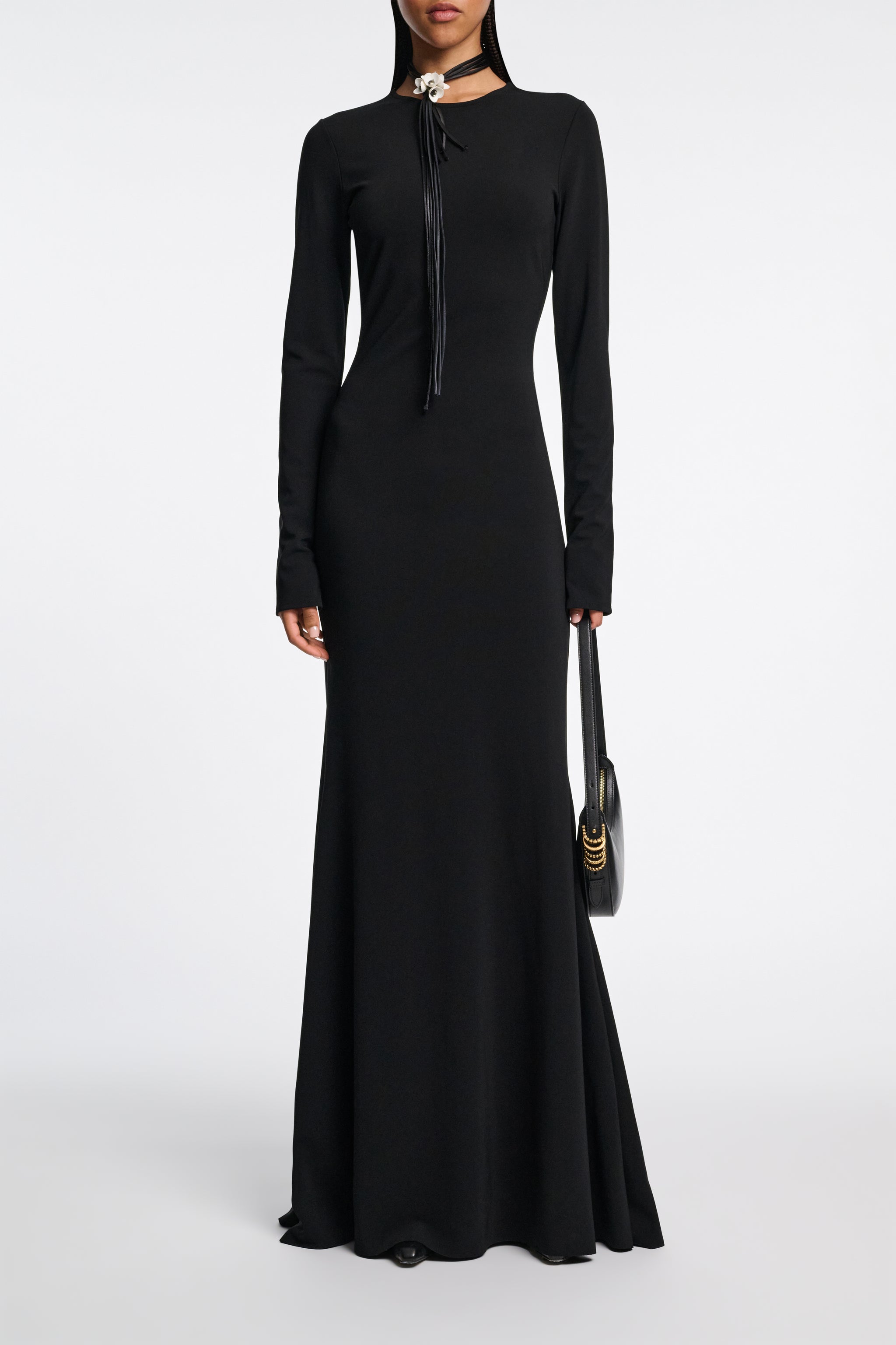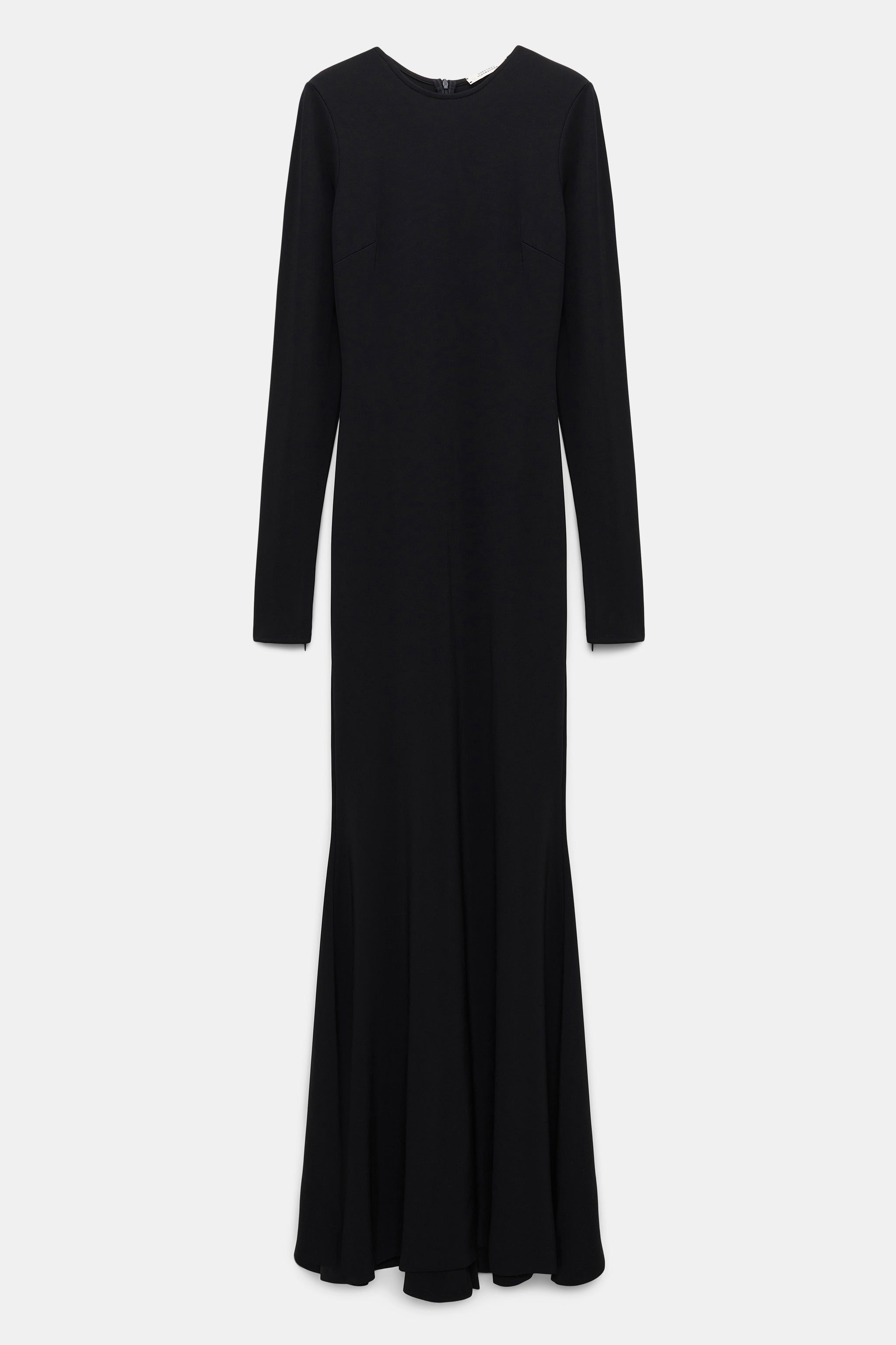 Glamorous getaway? Take this dress. This evening gown has a long silhouette with a slight train. The figure-hugging fit offers a subtle shaping effect. The fabric is exceptionally wrinkle-resistant, making it perfect for travel.