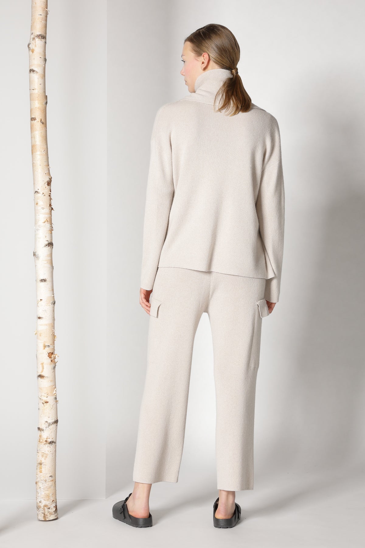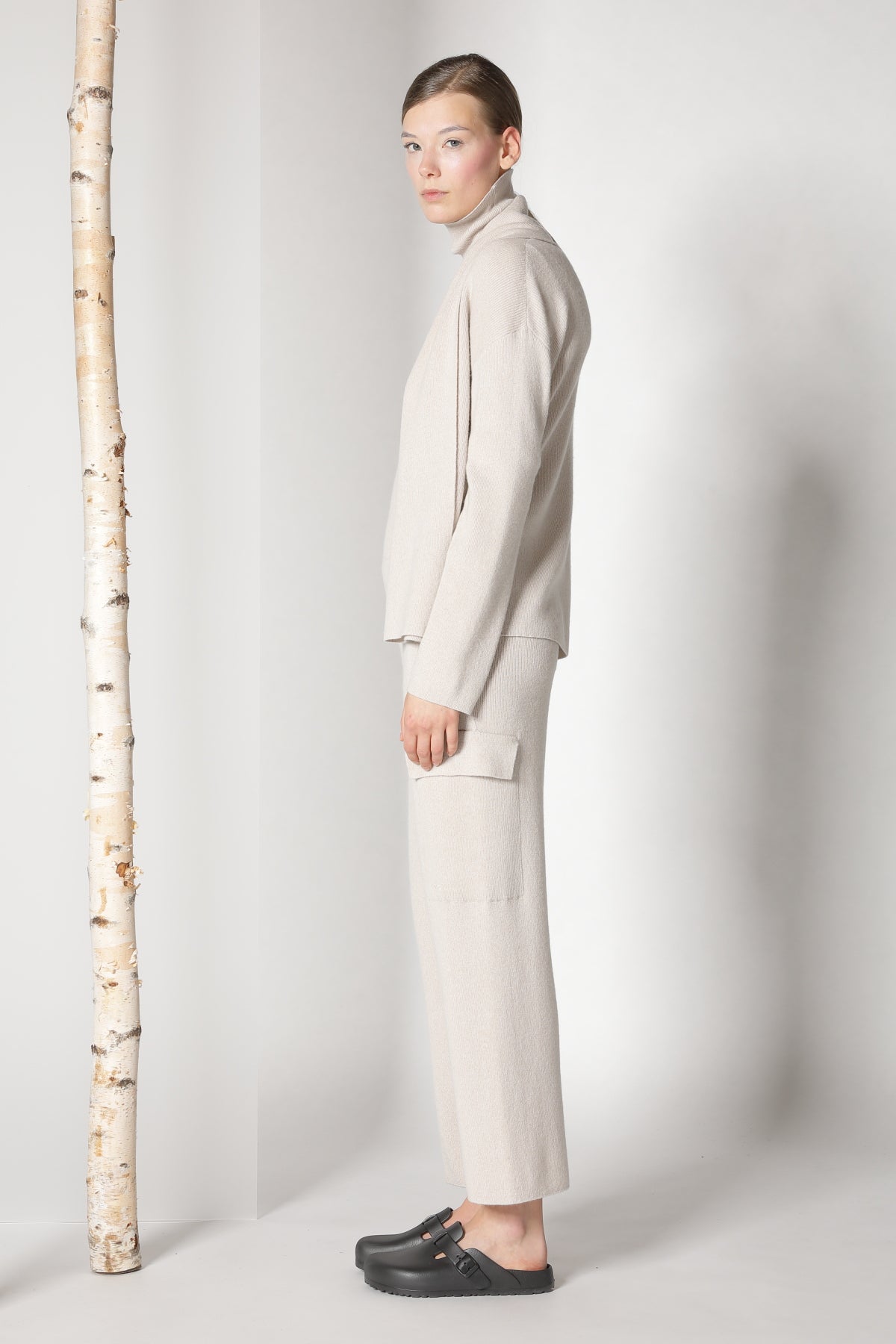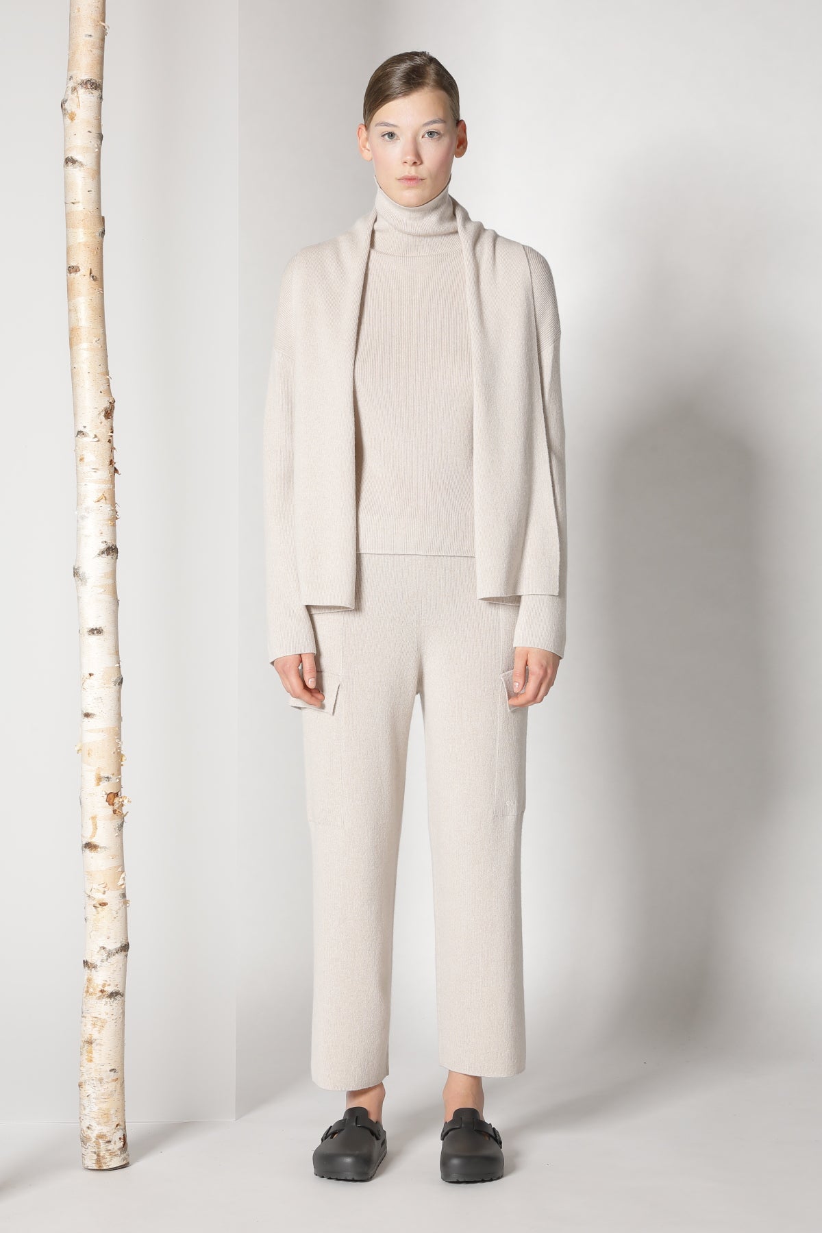 Open jacket in all needle stitch with clean selfedges for wider overlapping and drapy collar with long sleeves.