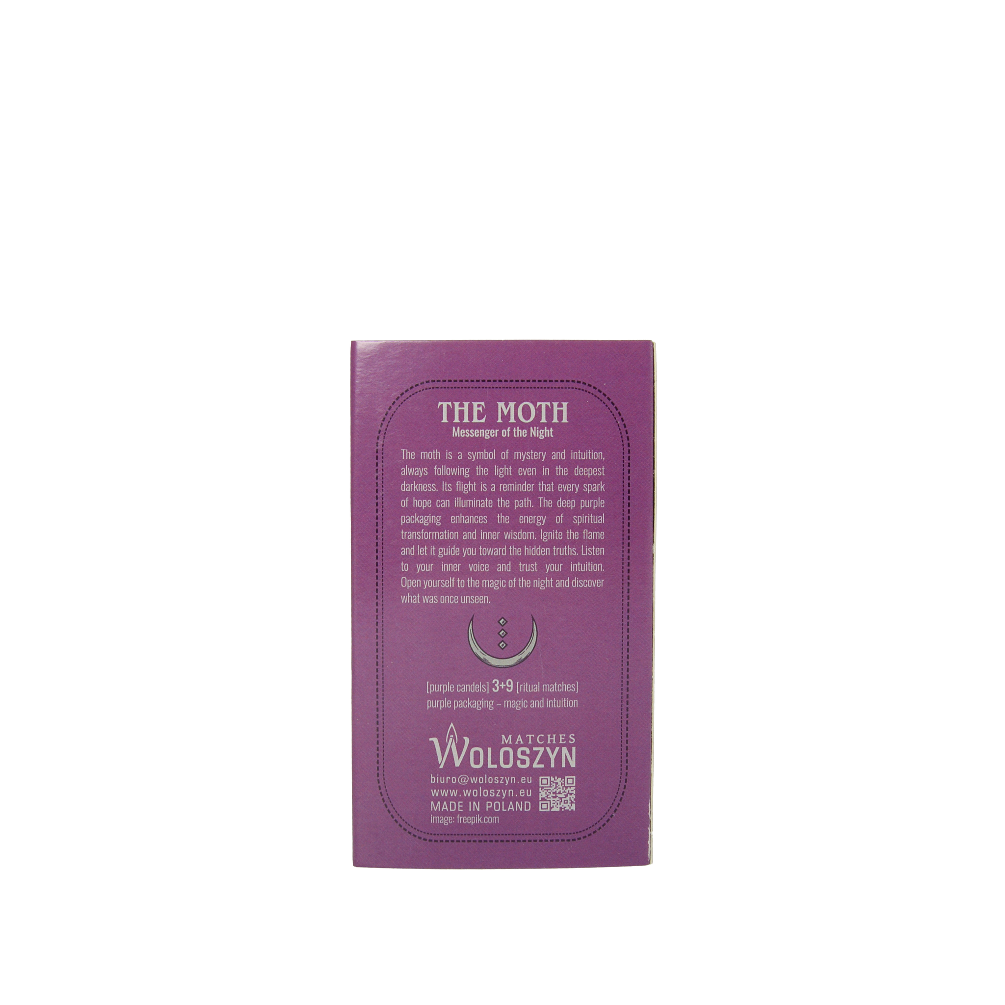 The color purple represents mystery, transformation, and spiritual awakening. It invites us to look inward and connect with our intuition and inner light. The moth —a nocturnal creature attracted to light—symbolizes spiritual guidance, change, and the journey through the unknown. In many esoteric traditions, it is considered a messenger between worlds .