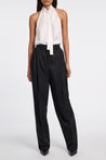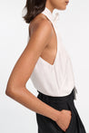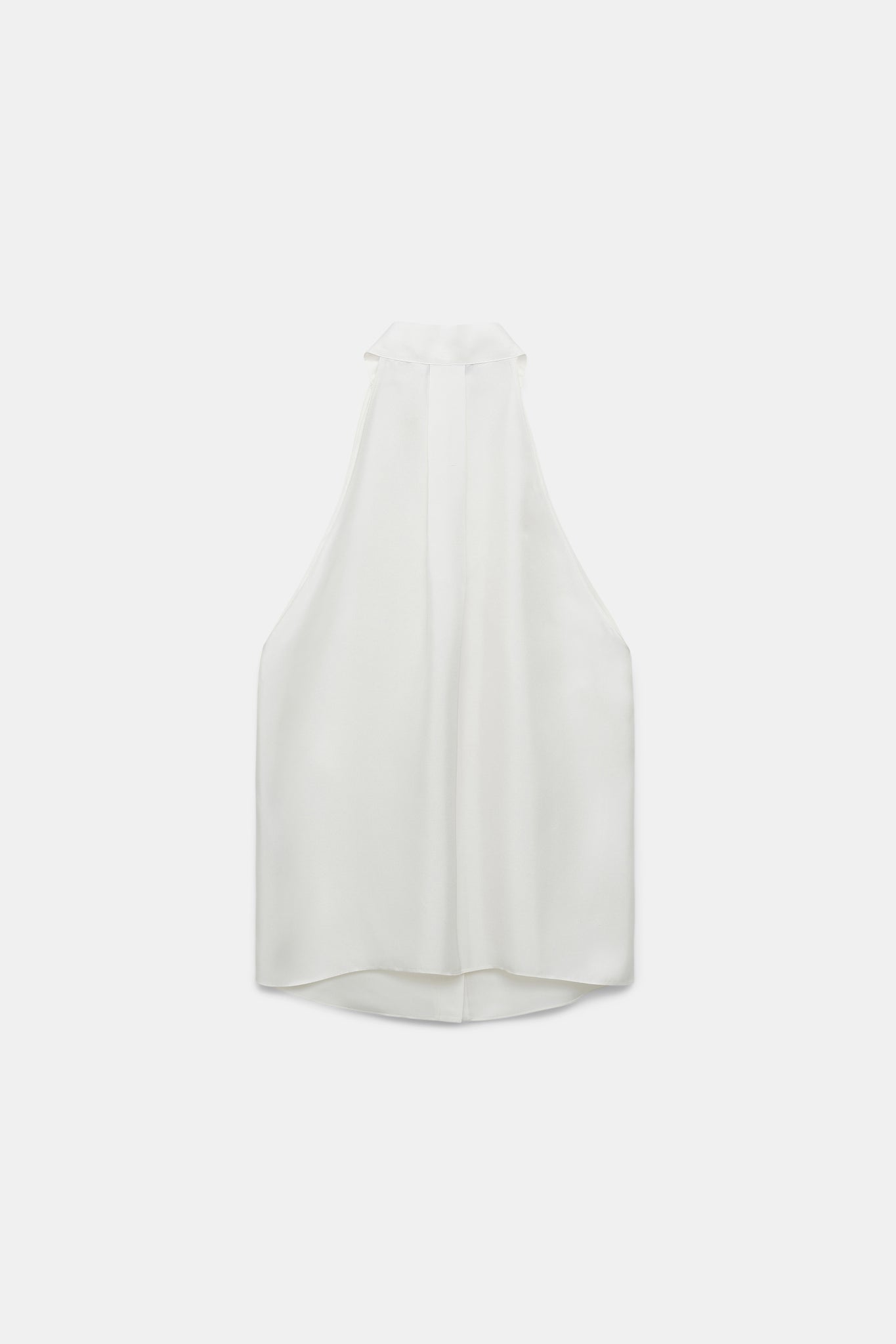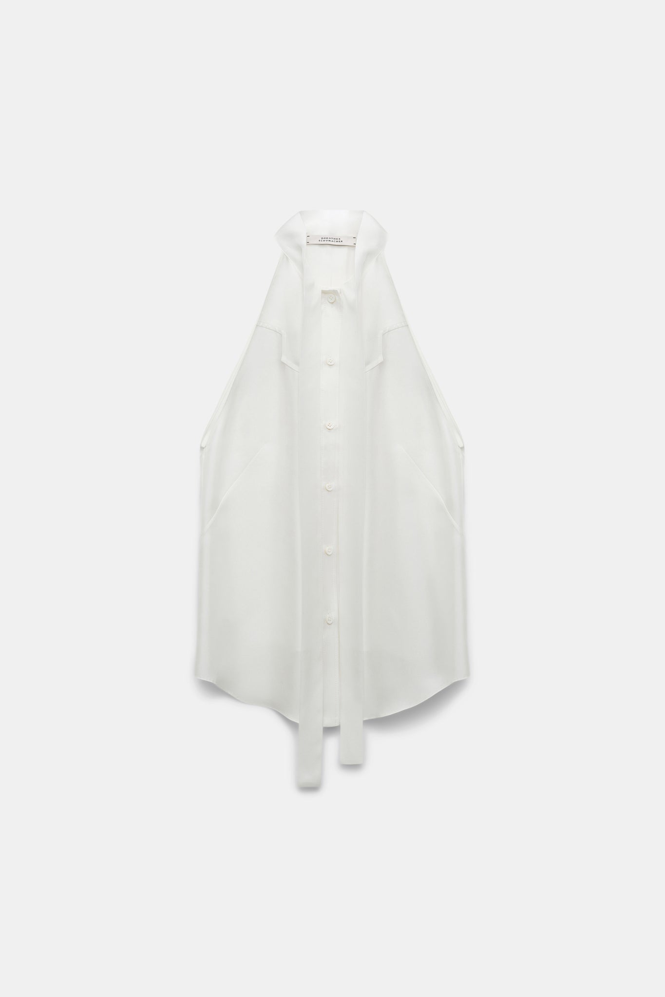 The top is made from flowing silk twill. The off-the-shoulder silhouette gives it a sporty touch. Western-style seam details and a scarf detail complete the design.