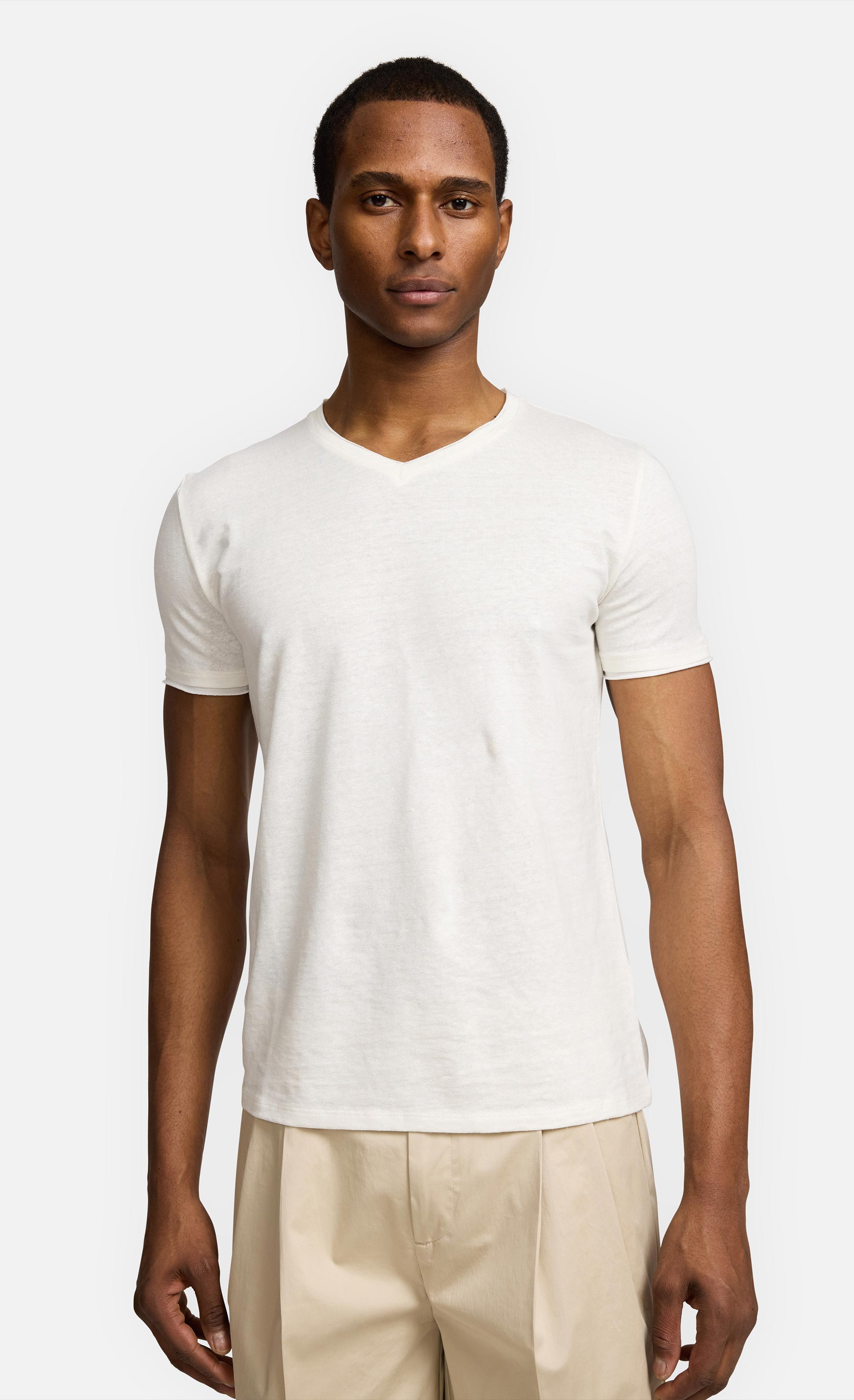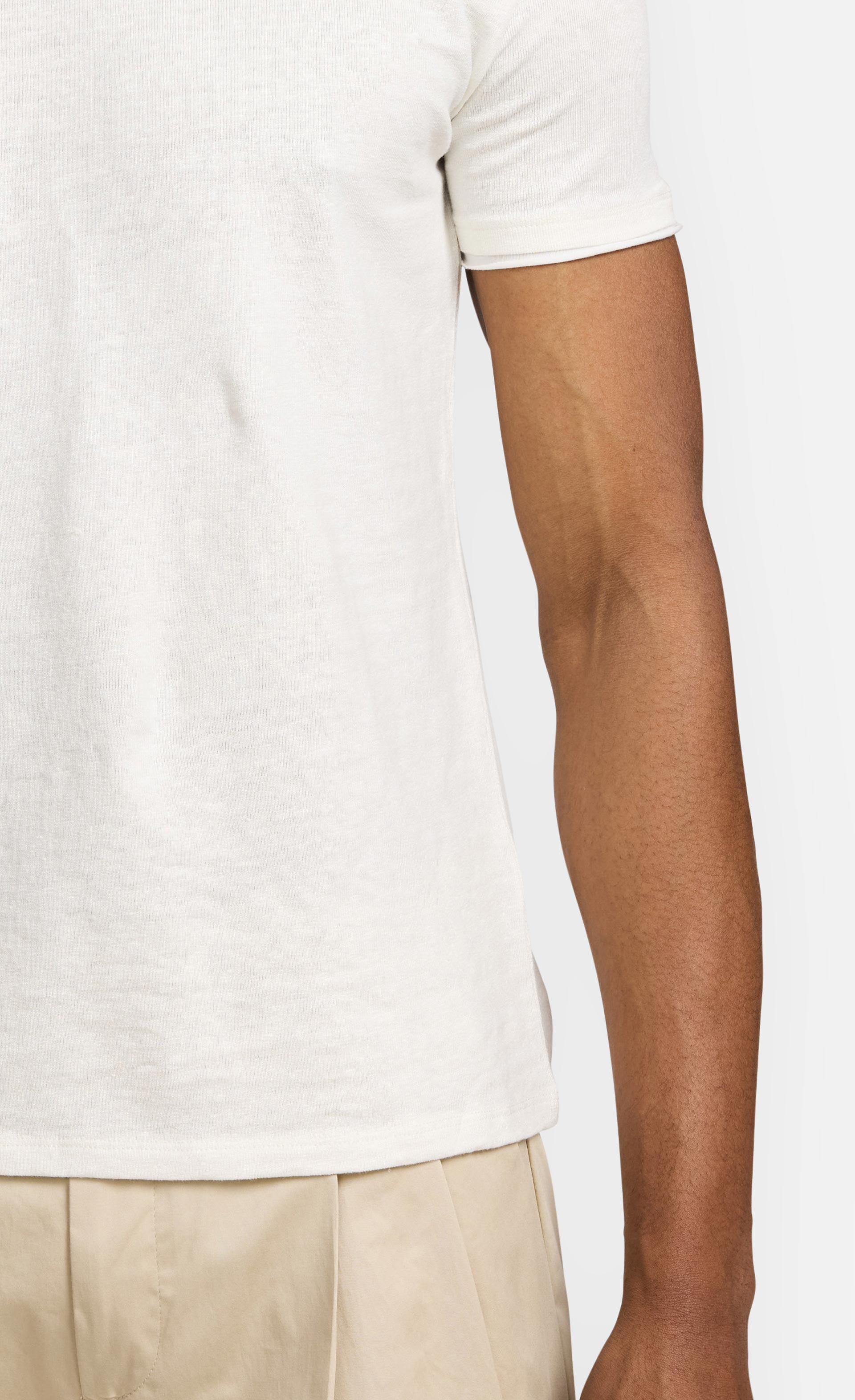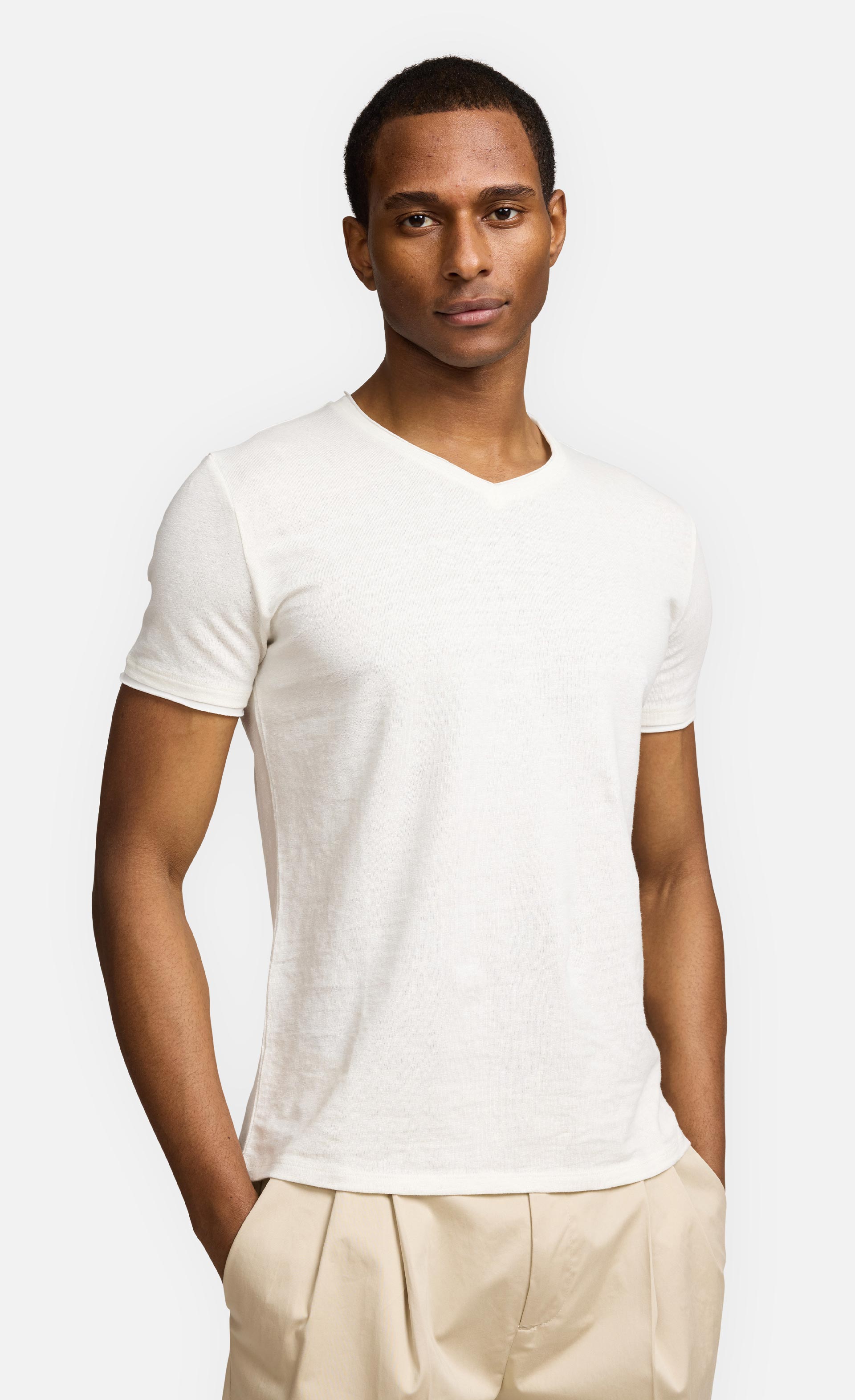 A classic in every summer wardrobe. This T-shirt is made from airy linen, and the small amount of elastane ensures excellent shape retention. It's versatile and can be styled in many ways, with the fine rolled edges at the neckline and sleeve cuffs adding a special touch.