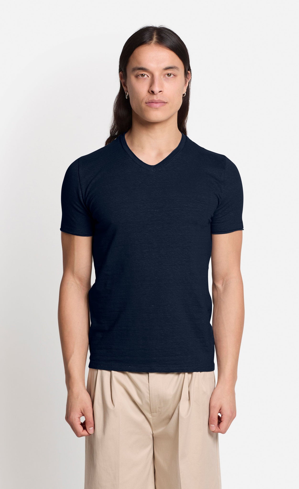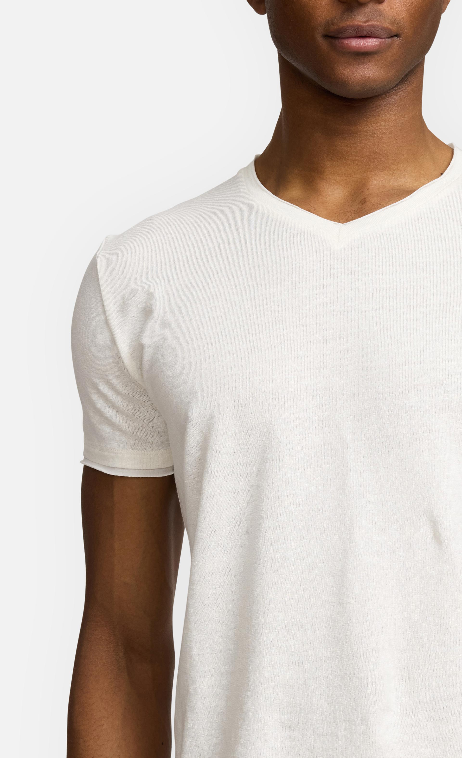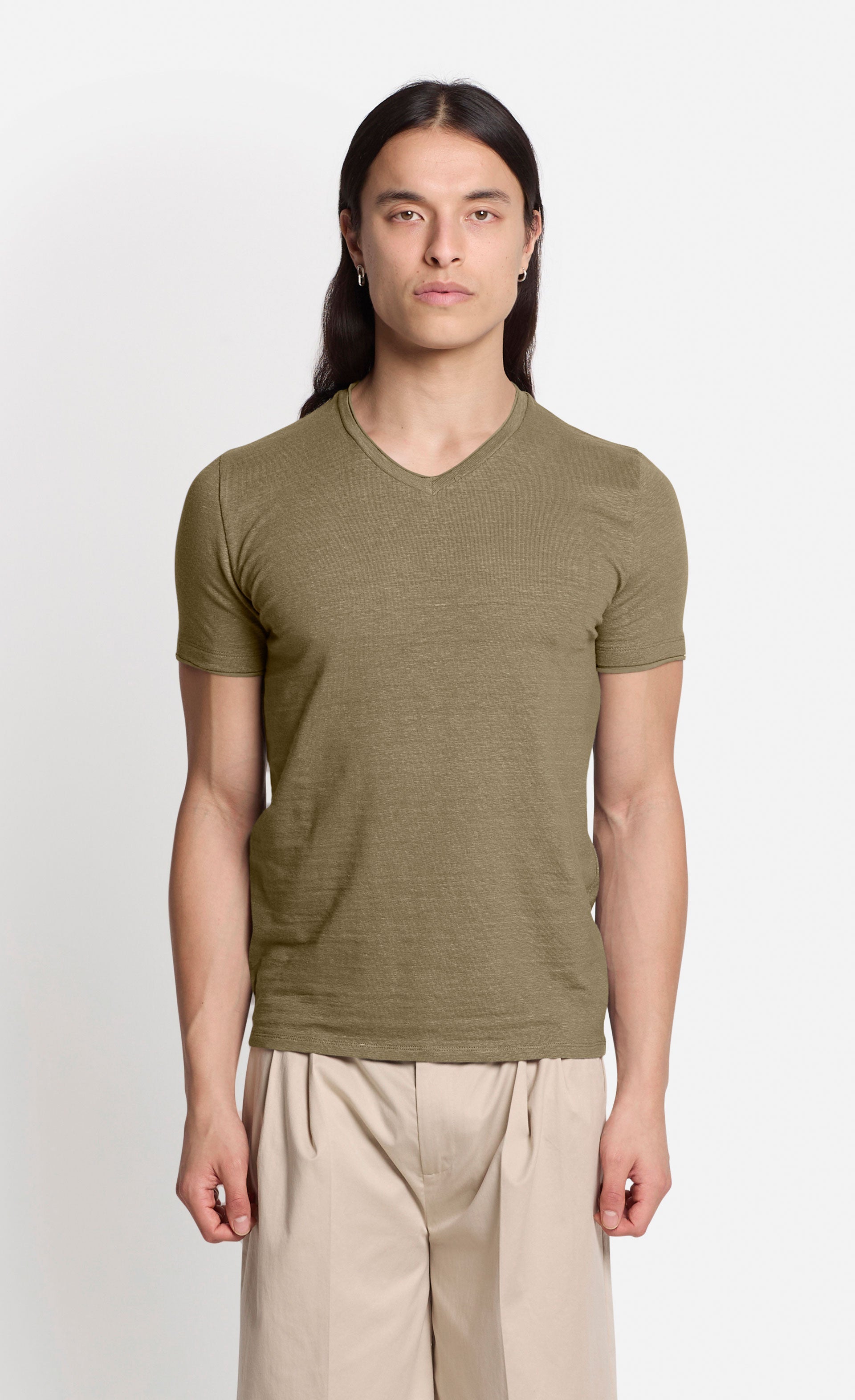 A classic in every summer wardrobe. This T-shirt is made from airy linen, and the small amount of elastane ensures excellent shape retention. It's versatile and can be styled in many ways, with the fine rolled edges at the neckline and sleeve cuffs adding a special touch.