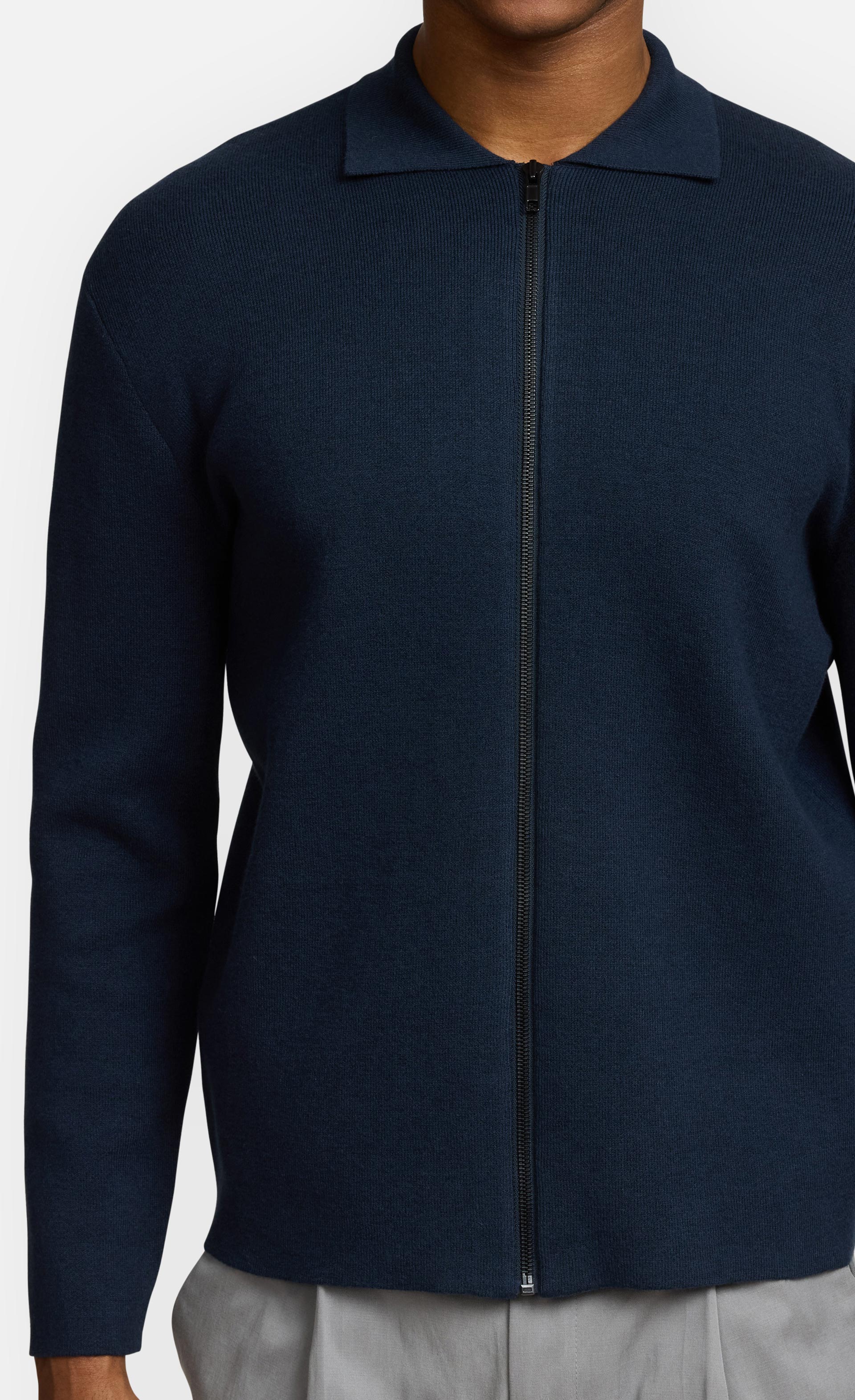 This timelessly clean cardigan is designed in a blouson style and has a relaxed fit. The compact, firm knit gives this piece a timeless, polished look; a wardrobe classic. We love wearing it as a jacket alternative, paired with one of our polos or T-shirts.