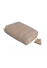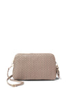 - Compact but generous enough to comfortably hold a water bottle - Adjustable and removable shoulder strap allowing it to be used as a clutch bag for evenings and events - Zip closure for secure access - Internal zipped pocket to organize your essentials - White gold colored hardware - Soft and durable 100% cotton lining - Exclusive signature Parise pendant available (not included, representative image only) - Protective dust bag included for lasting beauty Made in Italy - Premium 100% bovine leather woven with 100% cotton yarn on 18th century treadle looms