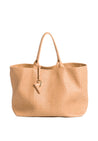 Product: '60' Large Tote Bag Camel- Double handles that fit easily over coats - Adjustable pin closure for secure and easy access - Internal zipped pocket and two leather compartments to organize your essentials - White gold hardware - Soft and durable 100% cotton lining - Exclusive signature Parise pendant included - Protective dust bag included for lasting beauty Made in Italy - Premium 100% bovine leather woven with 100% cotton yarn on 18th century treadle looms