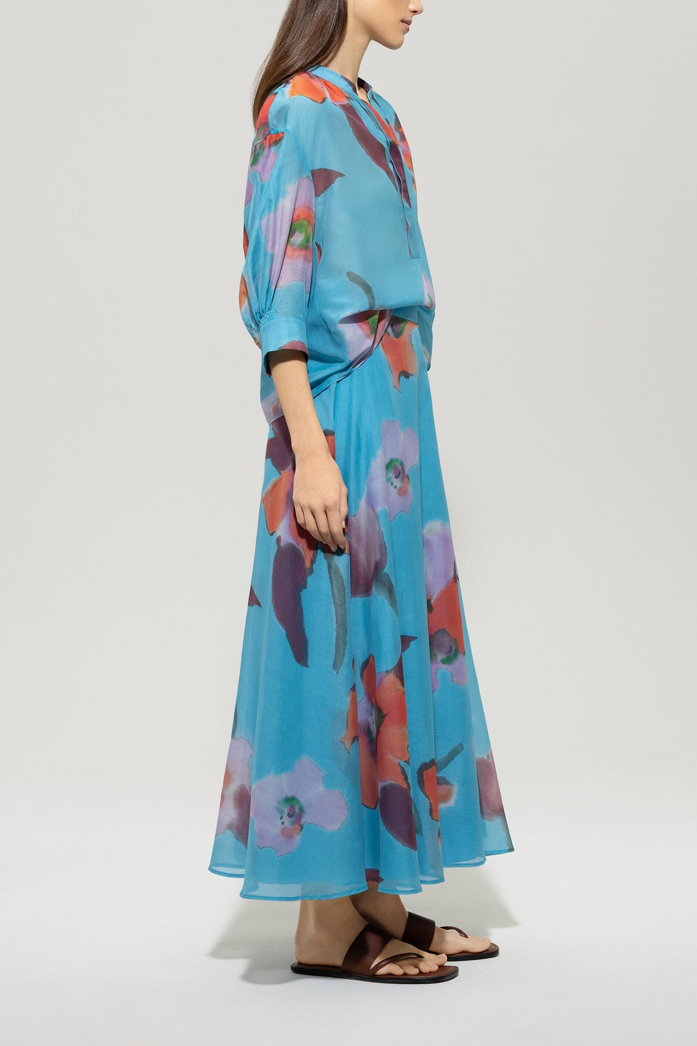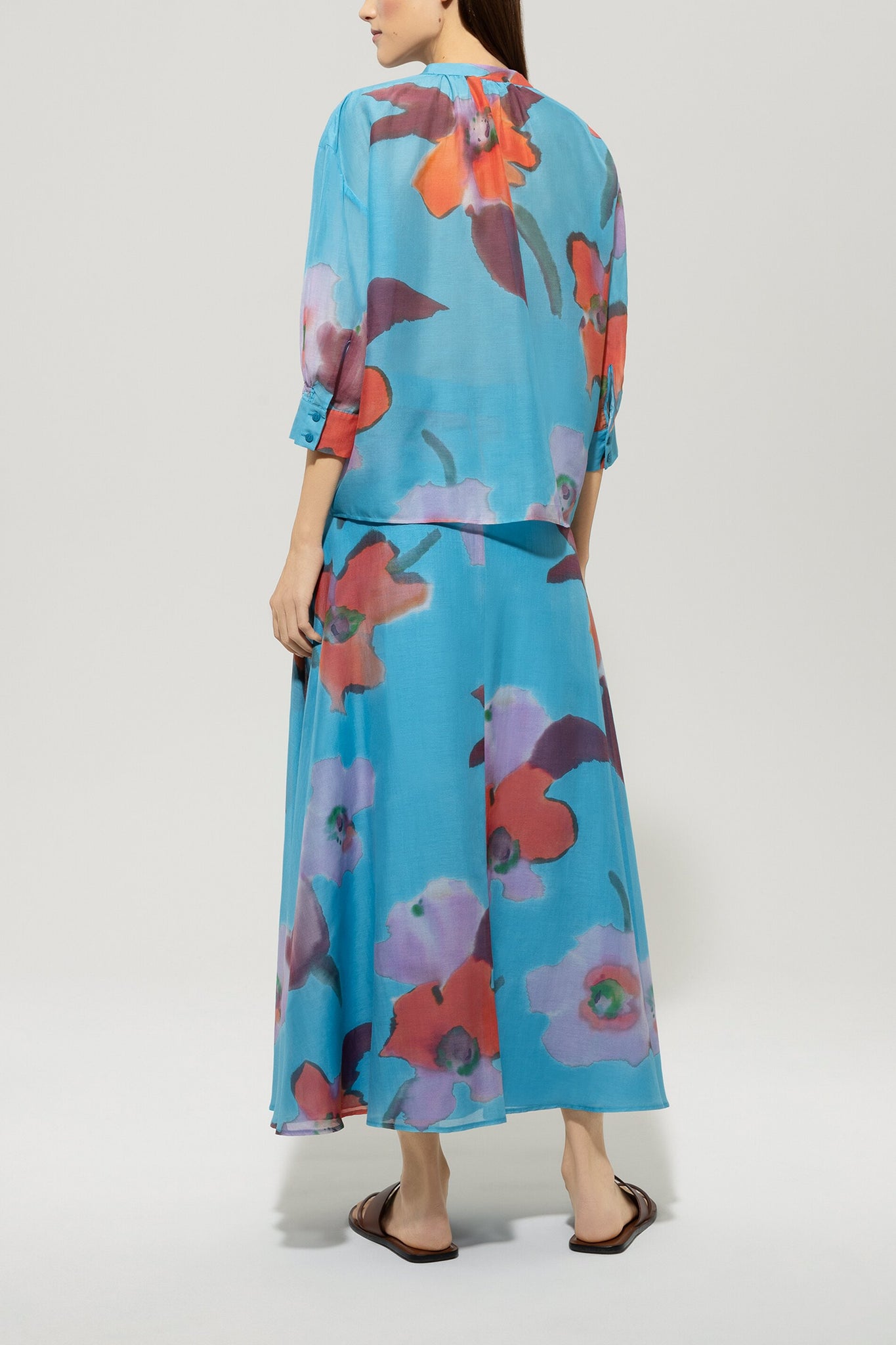 Bahnenrock mit Hibiskus-Print