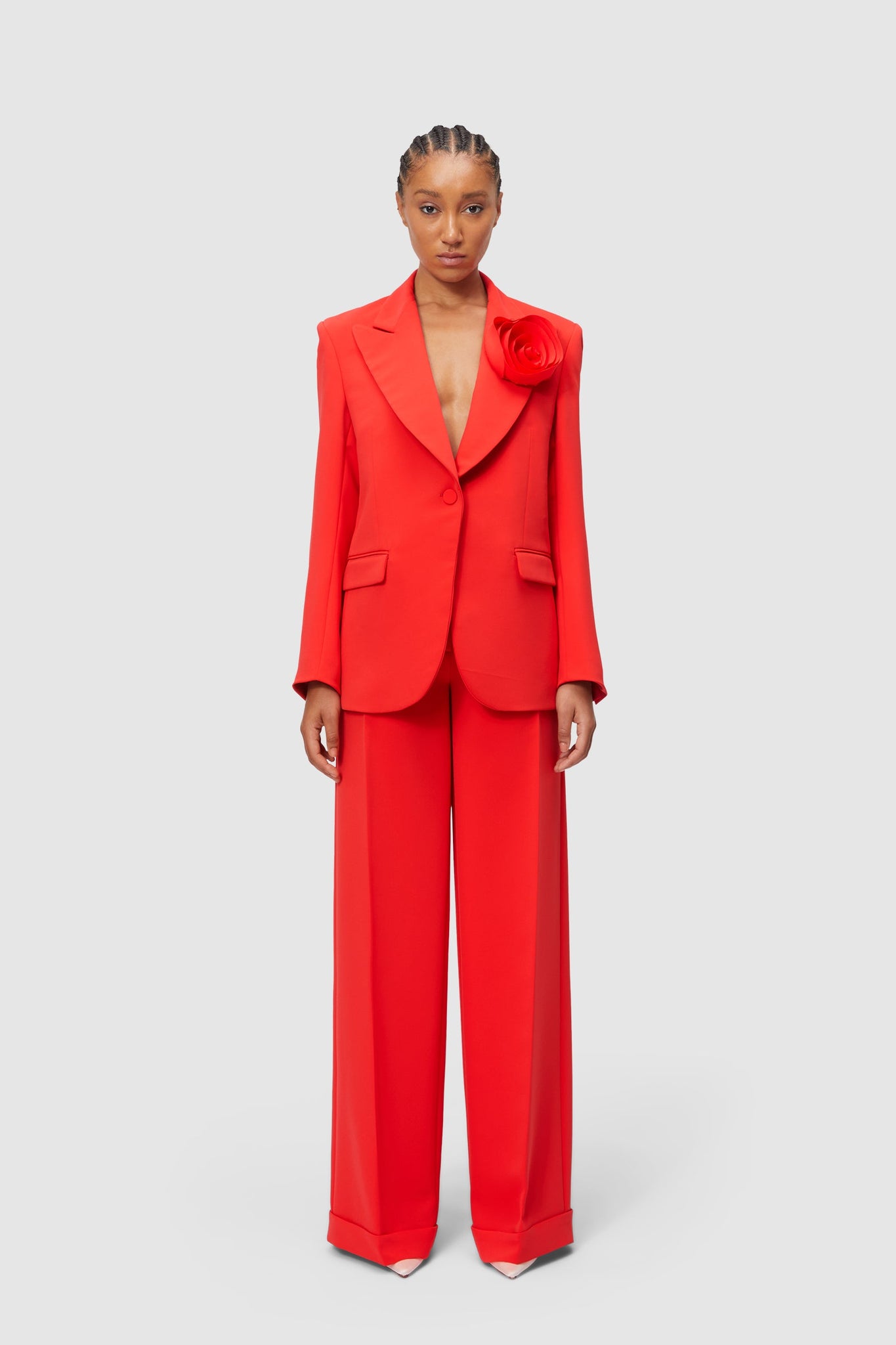 Blazer de smoking à appliqué rose
