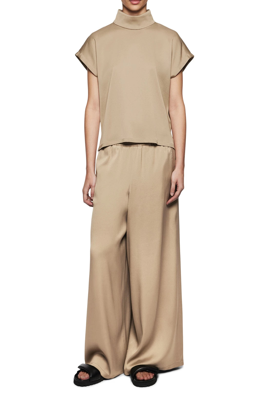 ALARIA_1 is a shirt blouse in a relaxed fit and H-line. The blouse has short drop sleeves, a stand-up collar and button fastening. Made from a high-quality, flowing satin.