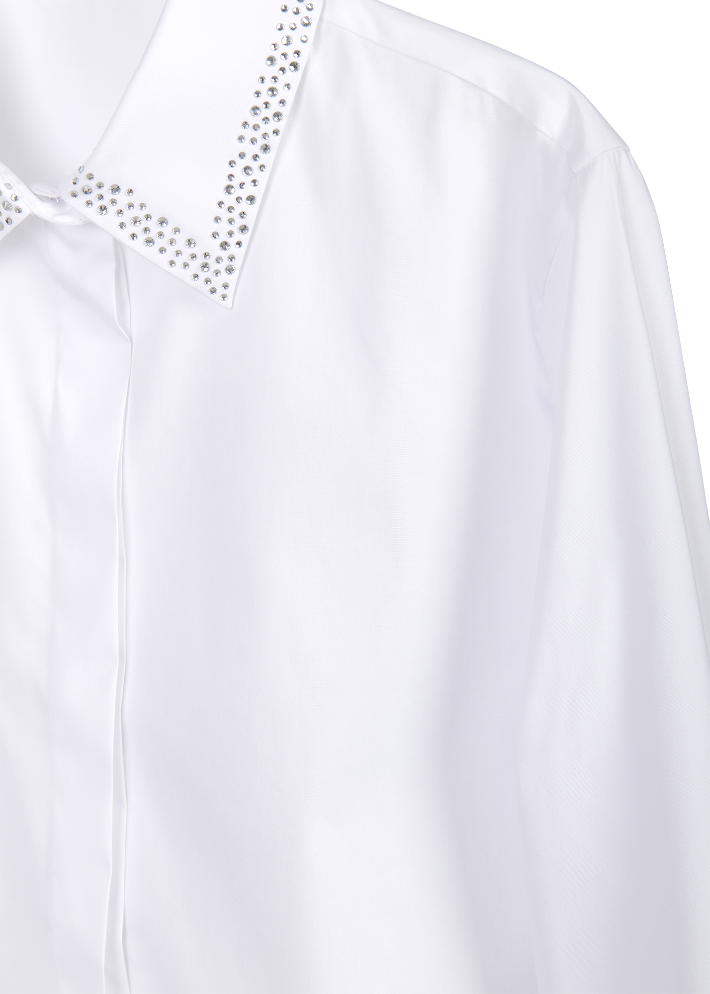 Effekthascherei: Klassisch- elegantes Design trifft auf glitzernden Strass. Die schöne Bluse aus Popeline-Stretch zeigt sich im beliebten Hemdblusen-Style. Funkelnde Akzente setzt der mit Strasssteinen besetzte Kragen. Die verdeckte Knopfleiste sorgt für eine cleane Optik und unterstreicht den zeitlosen Look. Perfekt kombinierbar zu eleganten und casual Outfits, verleiht sie jedem Outfit eine dezente Glamour-Note.