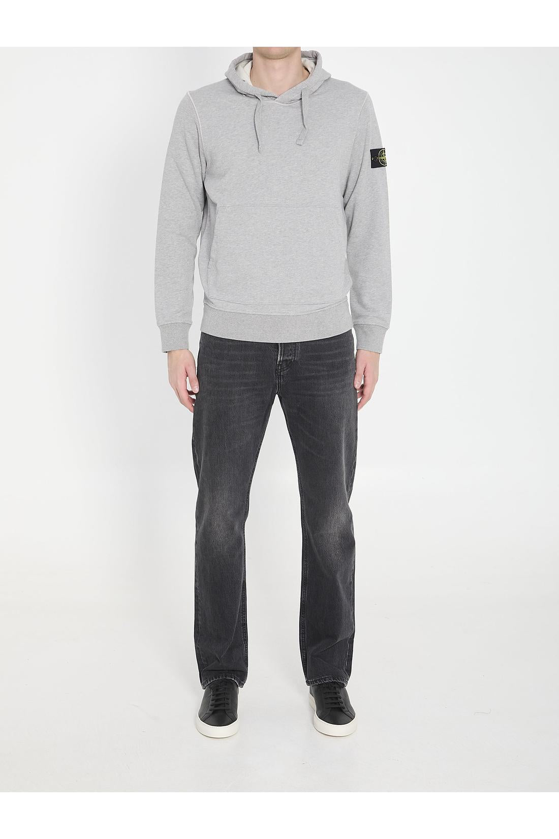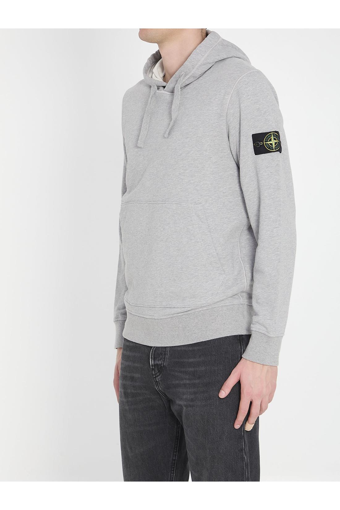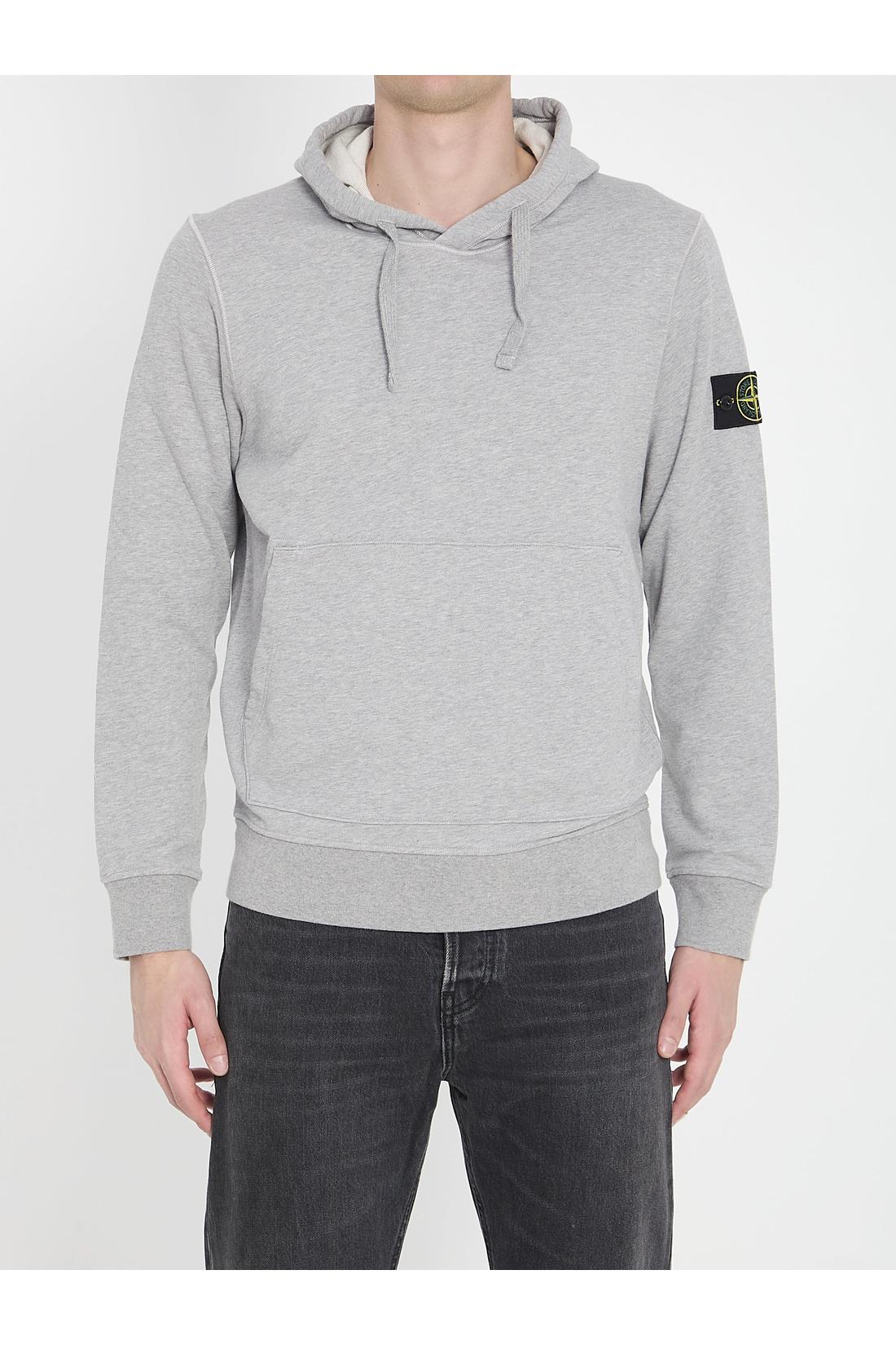 Grey cotton sweatshirt. It features a hood with drawstring, long sleeves, an iconic badge applied on the sleeve, a kangaroo pocket on the front, and ribbed cuffs and hem. Regular fit.
