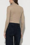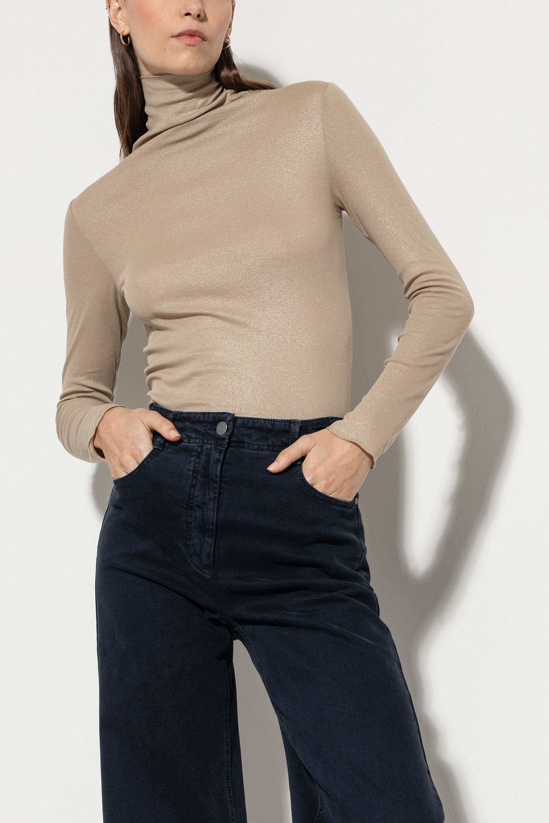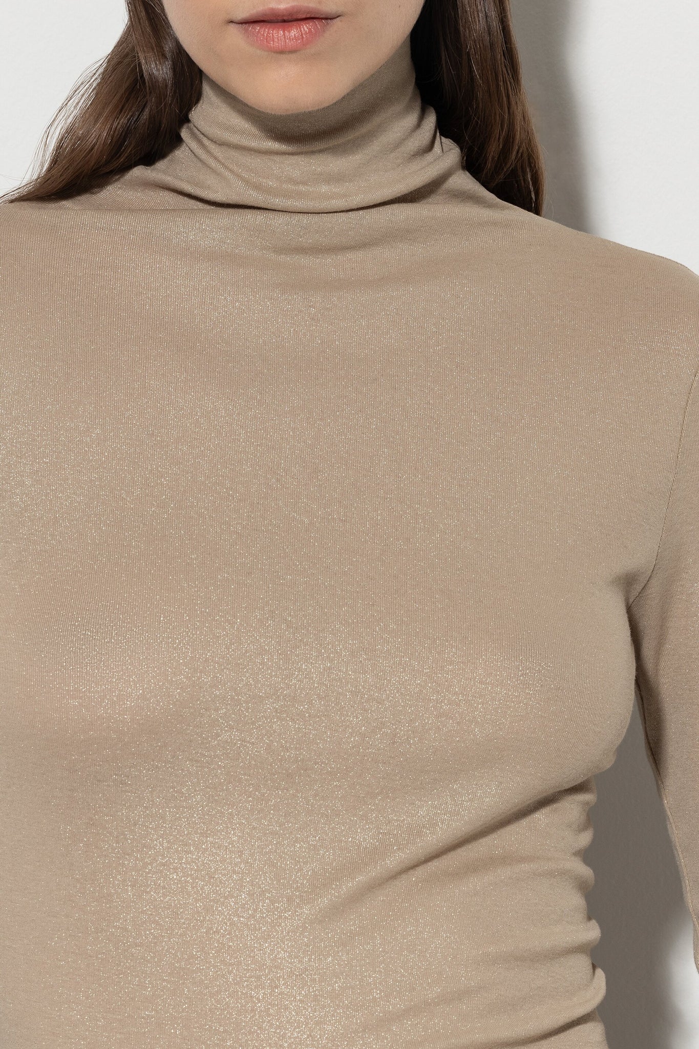 Dünnes, langärmeliges Baumwollshirt mit Rollkragen und Rollsaum an allen Saumkanten. Ein feiner Allover-Glitter-Print sorgt für einen edlen Look.